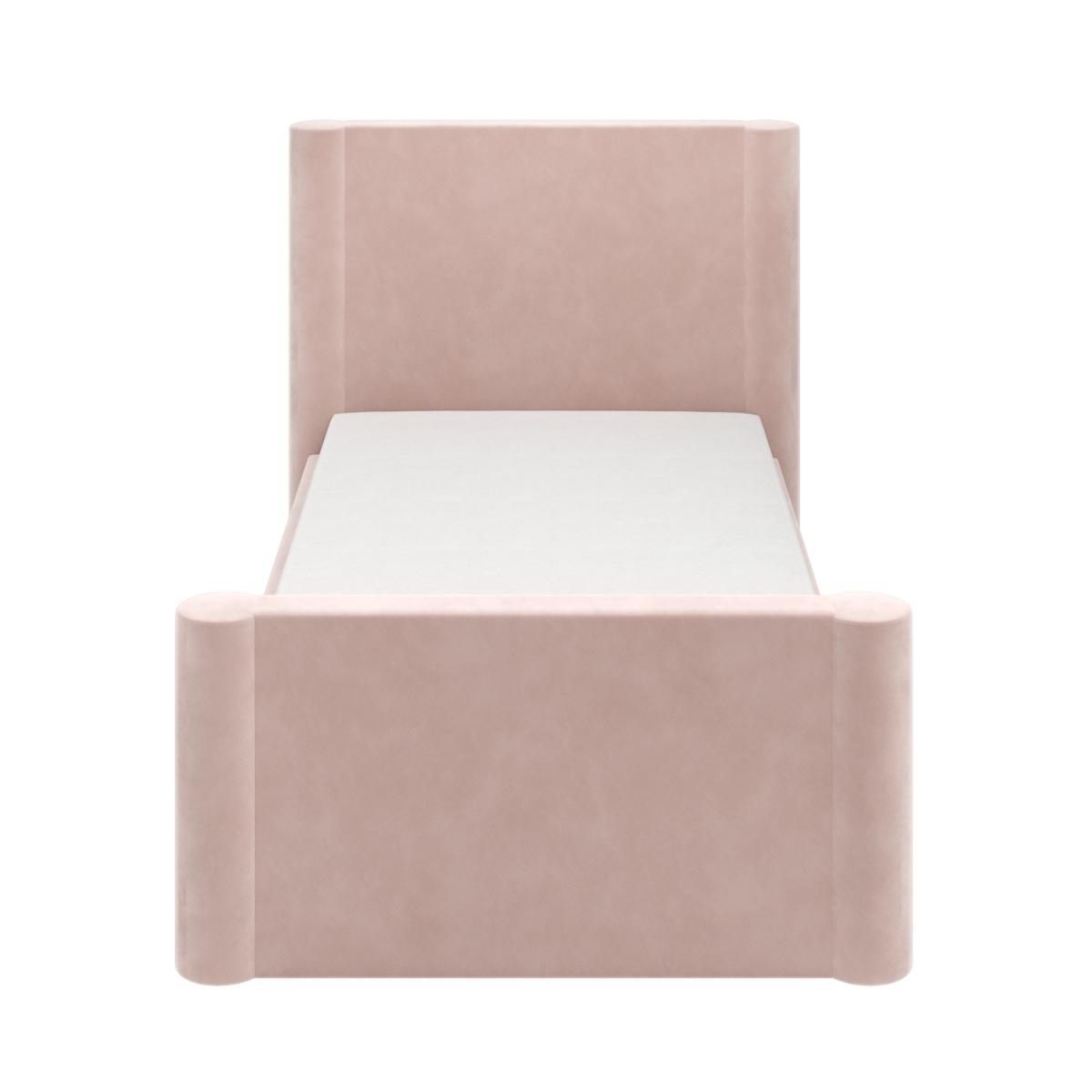 All about me Make an impression with this elegant single bed. Its timeless design, from the rounded corners to its soft padded velvet finish, gives it a luxurious look and feel. It features a large drawer, ideal for keeping folded items, bed linen and more. Also, the bed can be assembled so the drawer can be placed on either side, to suit your bedroom layout. With a sturdy hardwood frame and robust wooden slats for assured mattress support, this bed is built to last. It fits a UK single mattress, which isn't included, so you're free to choose a mattress of your choice which isn't included, so you're free to choose a mattress of your choice. Need to know Product dimensions:W110 x D218 x H111 cm Inner drawer dimensions:W102 x D48 x H12 cm Product weight: 60kg Bed mattress size: Standard UK Single (3ft / 90 x 190cm) Colour: Pink Finish: Upholstered Material:Velvet Bed base:Wooden sprung-slatted Assembly required: Yes Mattress included: No Packaging dimensions: Box 1: W113 x D113 x H15.5 cm / Box 2: W63 x D113 x H15.5 cm / Box 3: W36 x D196 x H12 cm Packaging weights: Box 1: 29kg / Box 2: 9.5kg / Box 3: 15kg