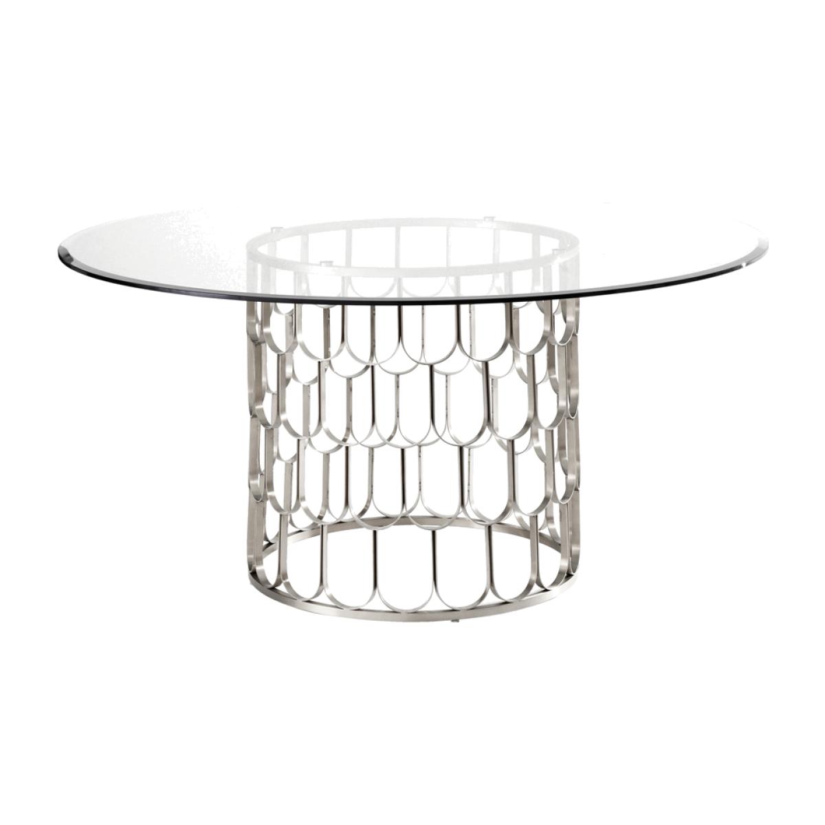 Glamorous design, Inspired by Mid-Century Italian architecture and interiors. Brushed stainless steel base. 10 mm toughened glass top with deep bevelled edges - fixes securely to base. Comfortably seats 6-8 people. Simple assembly required approximately 10 minutes.