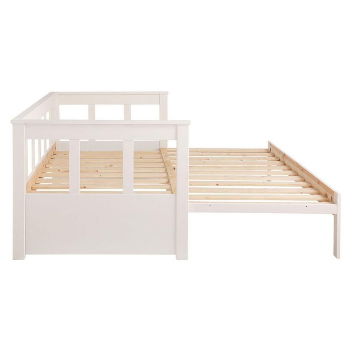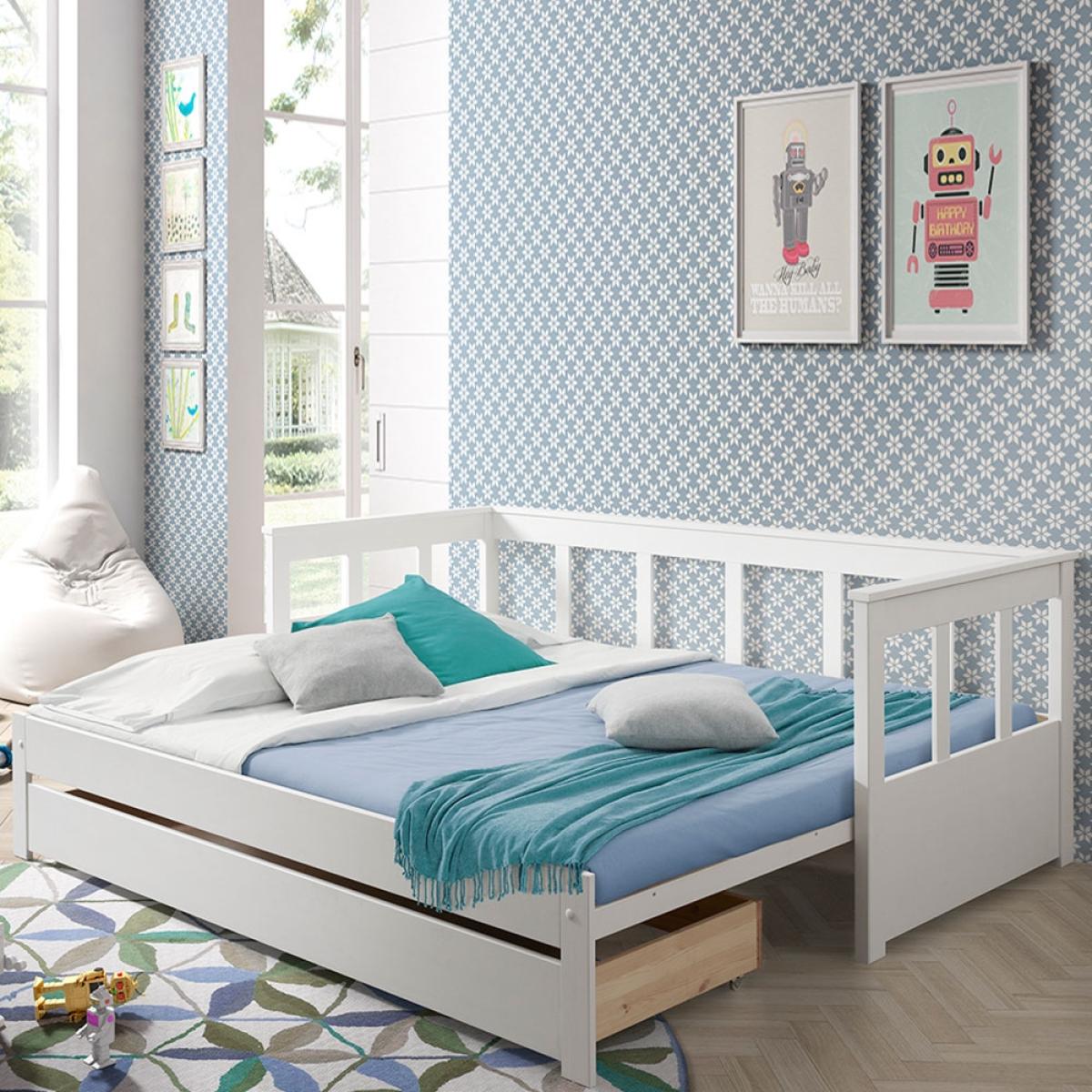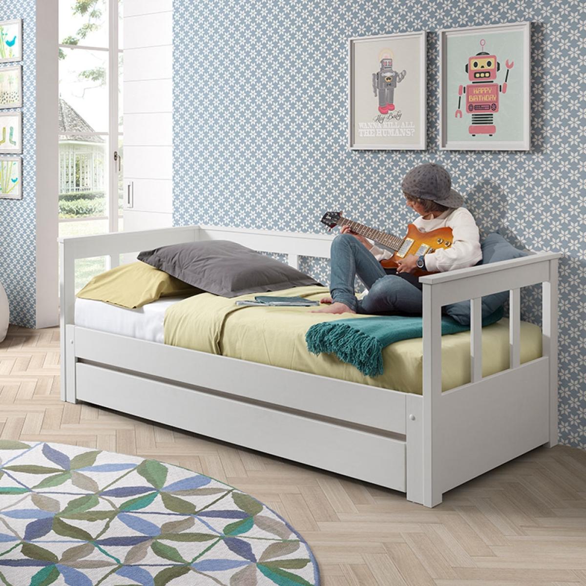 The Pino Day Bed with Pull Out Bed is not only great for sleeping, but it's also the ideal spot to lounge. Manufactured from solid Scandinavian pine, this bed is sure to suit any style bedroom no matter your interior style. The perfect place to relax during the day with a good book or to get cosy with a film,then when the evening rolls around transforms it into a comfy spot to sleep. What's more, with the pull out bed (extending to 180cm!), putting up those unexpected guests will be as easy as 1, 2, 3!.