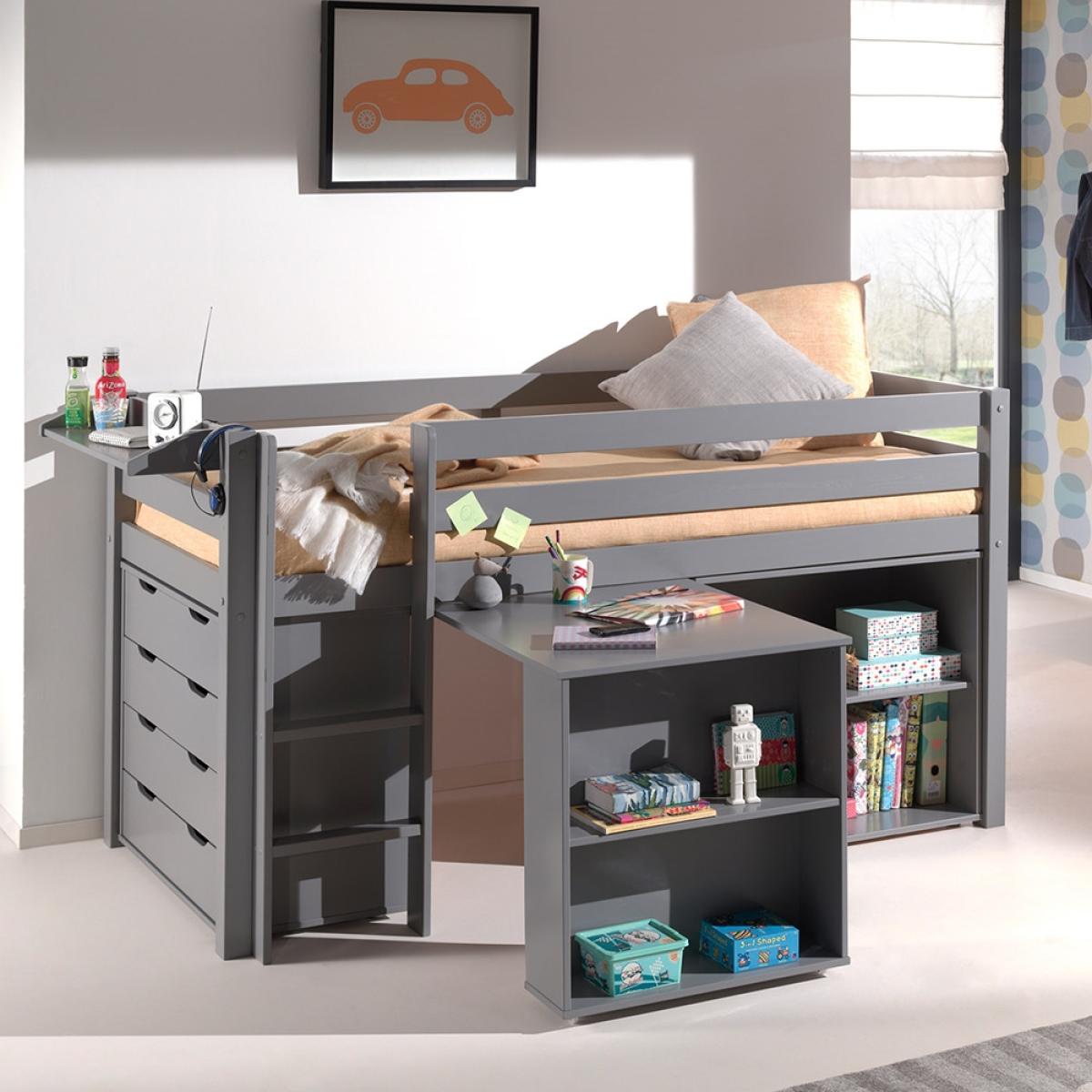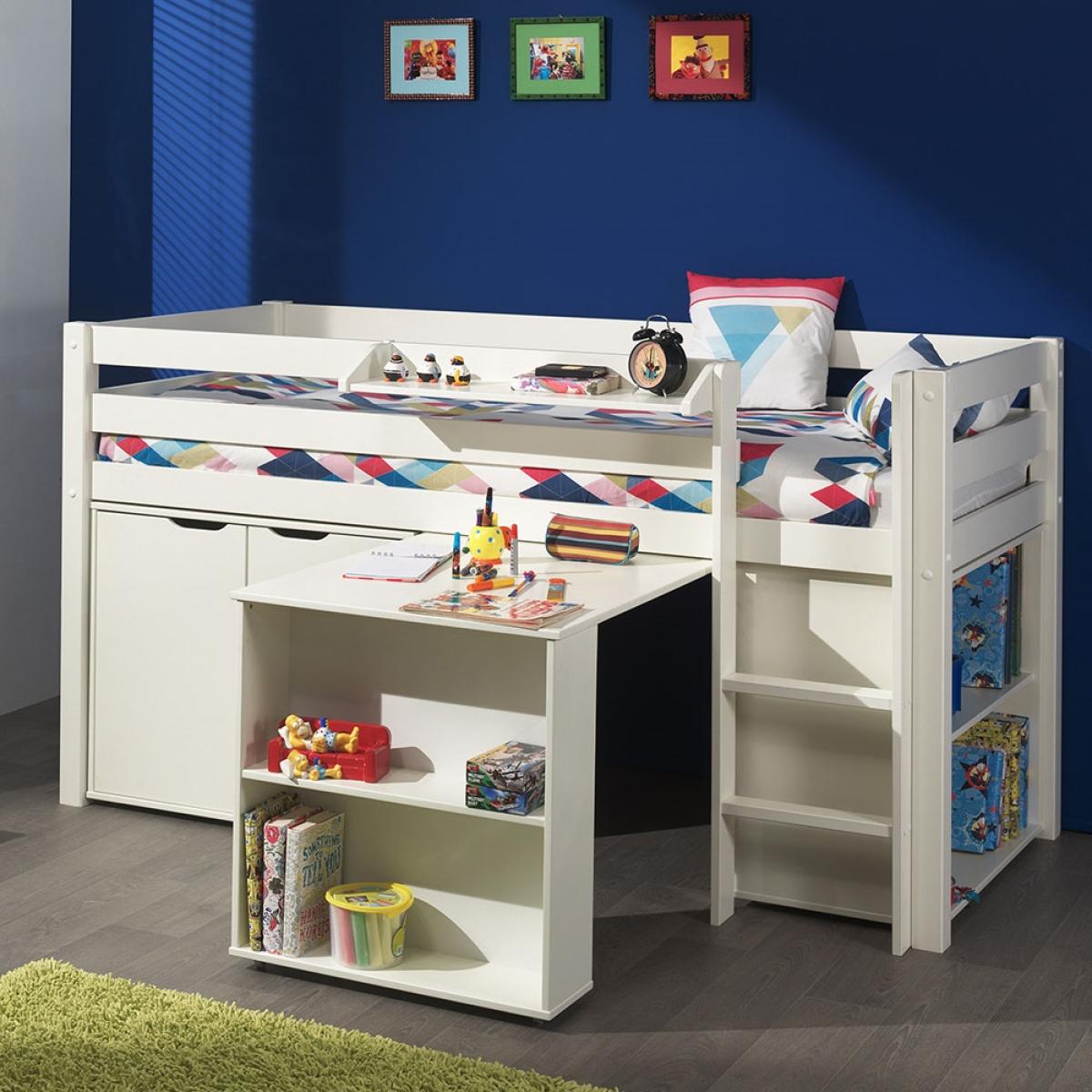 Add storage to your kiddies bedroom with the Pino Kids Cabin Bed without sacrificing floor space! Manufactured from solid Scandinavian pine and MDF, there will be the ideal option to suit your interior style. Featuring a pull out desk with shelves, knuckling down on that homework will be easy and when the homework is all done just push it back under the bed to create more space to play! The bookcase will be perfect for displaying their favourite books and toys. You can even add more storage at the end of the bed with the optional cabinet, drawers or clip on shelf create a bed to suit your needs!.