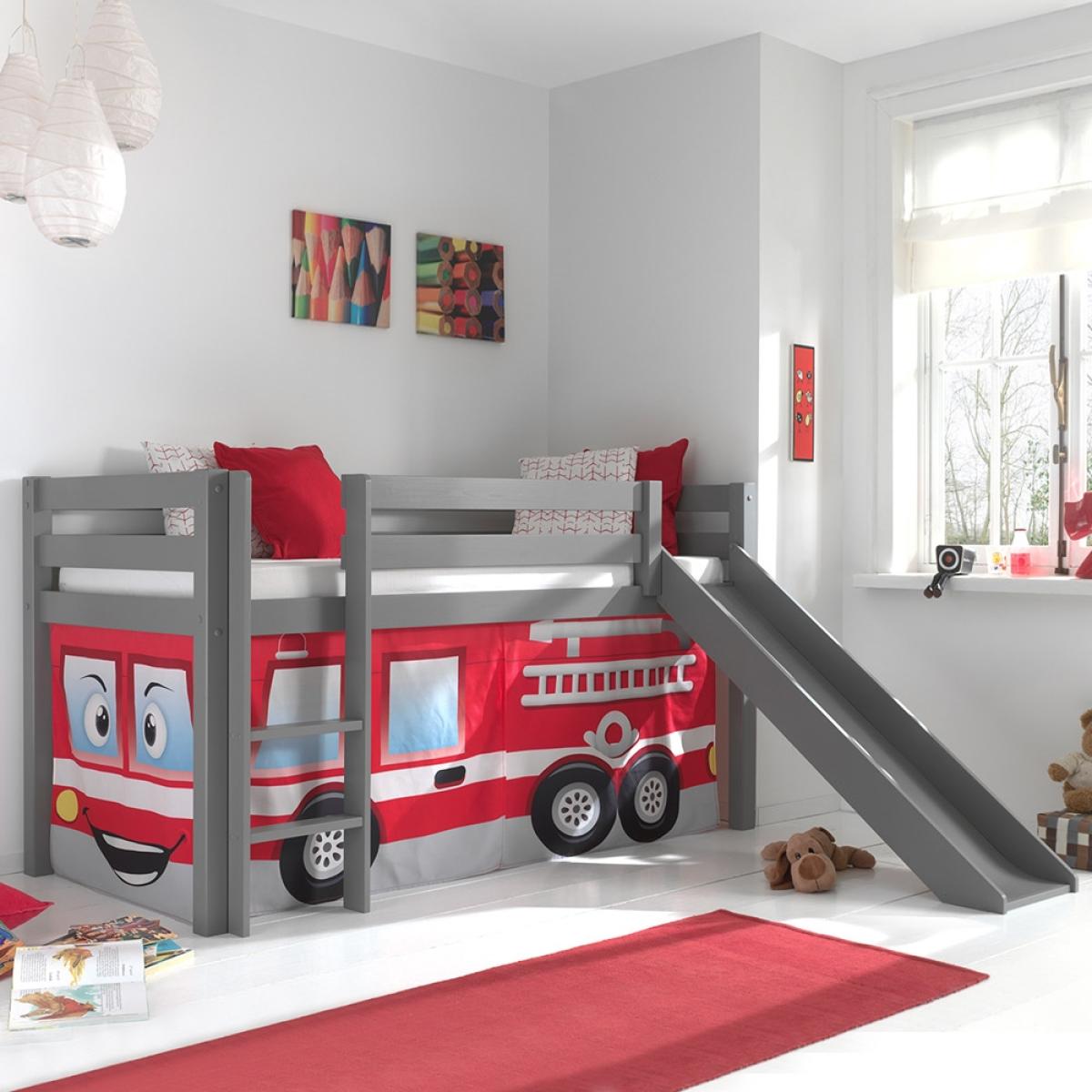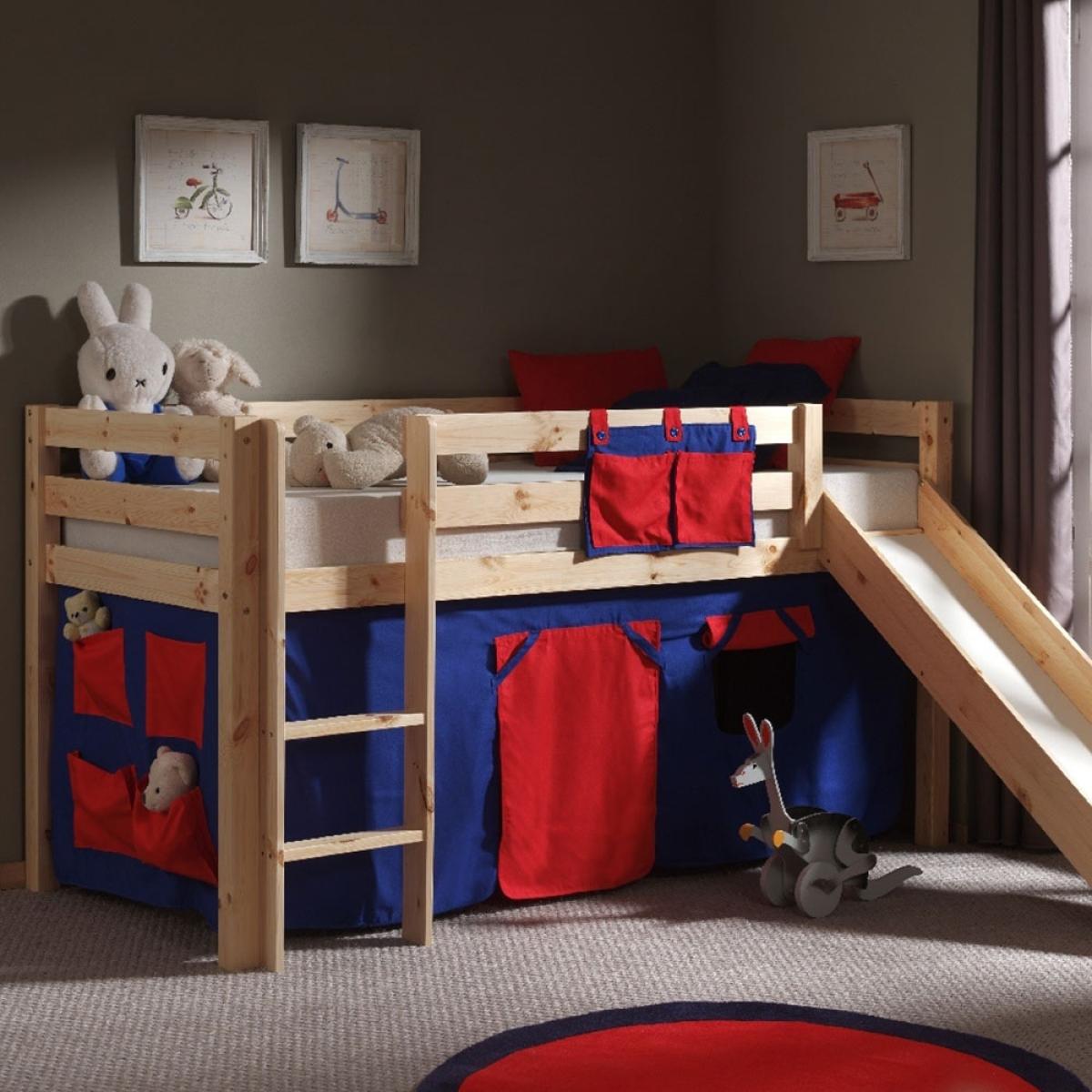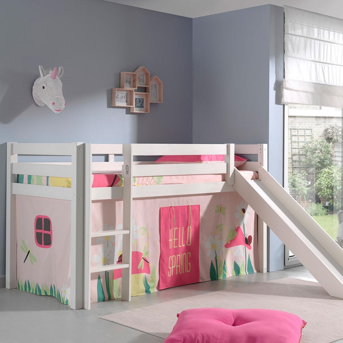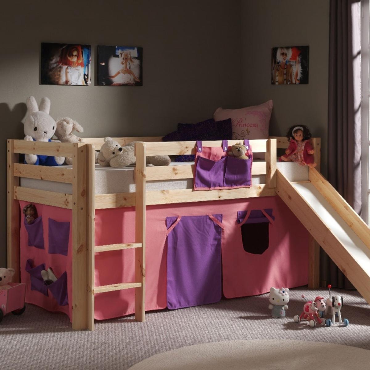 Pino Kids Mid Sleeper with Slide & Curtain - Natural