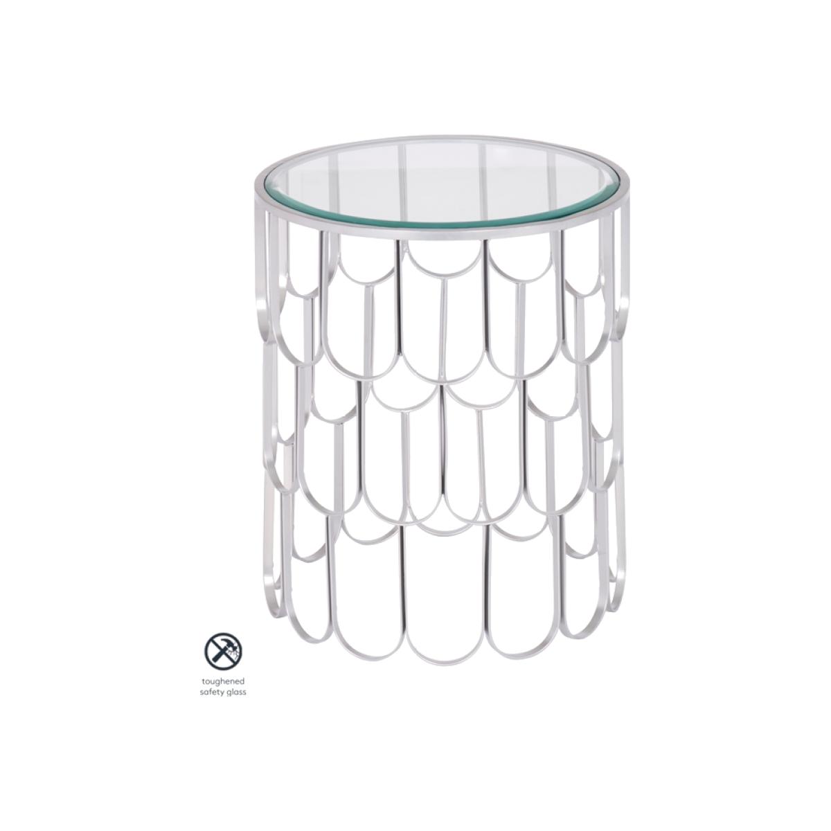 I’m a fan of the Pino thanks to its lightweight, scalloped metal frame and clear glass top, which bring a touch of brightness without feeling bulky. It works well in contemporary, minimalist or art-deco schemes, especially in spaces where you want a bit of metallic shine without overwhelming the palette. For styling, keep the surface uncluttered with just one or two objects - think a small plant in a white pot or a sculptural candle holder. Position it next to a velvet armchair or a streamlined sofa in neutral tones to let the silver finish stand out, and if you have a cluster of side tables create visual interest by mixing in different heights or materials.