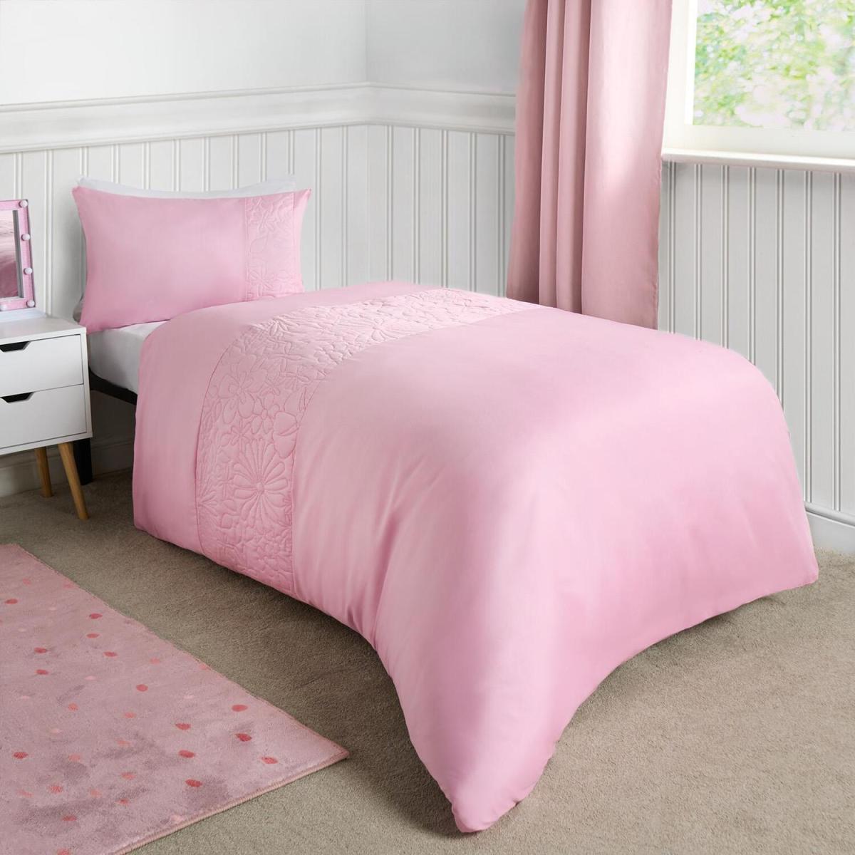Introducing the OHS Kids Pinsonic Daisy Panel Duvet Set in Pink, the perfect addition to your child's bedroom for a cute and eye-catching set-up. This delightful duvet set features a playful panel design of daisies in soft pink, creating a cheerful atmosphere that sparks imagination. Crafted with quality and comfort in mind, the pinsonic technique ensures durability and a cozy feel, making bedtime a joy for your little one. Transform their space into a haven of cuteness with this adorable duvet set, where dreams bloom as brightly as the daisies themselves.