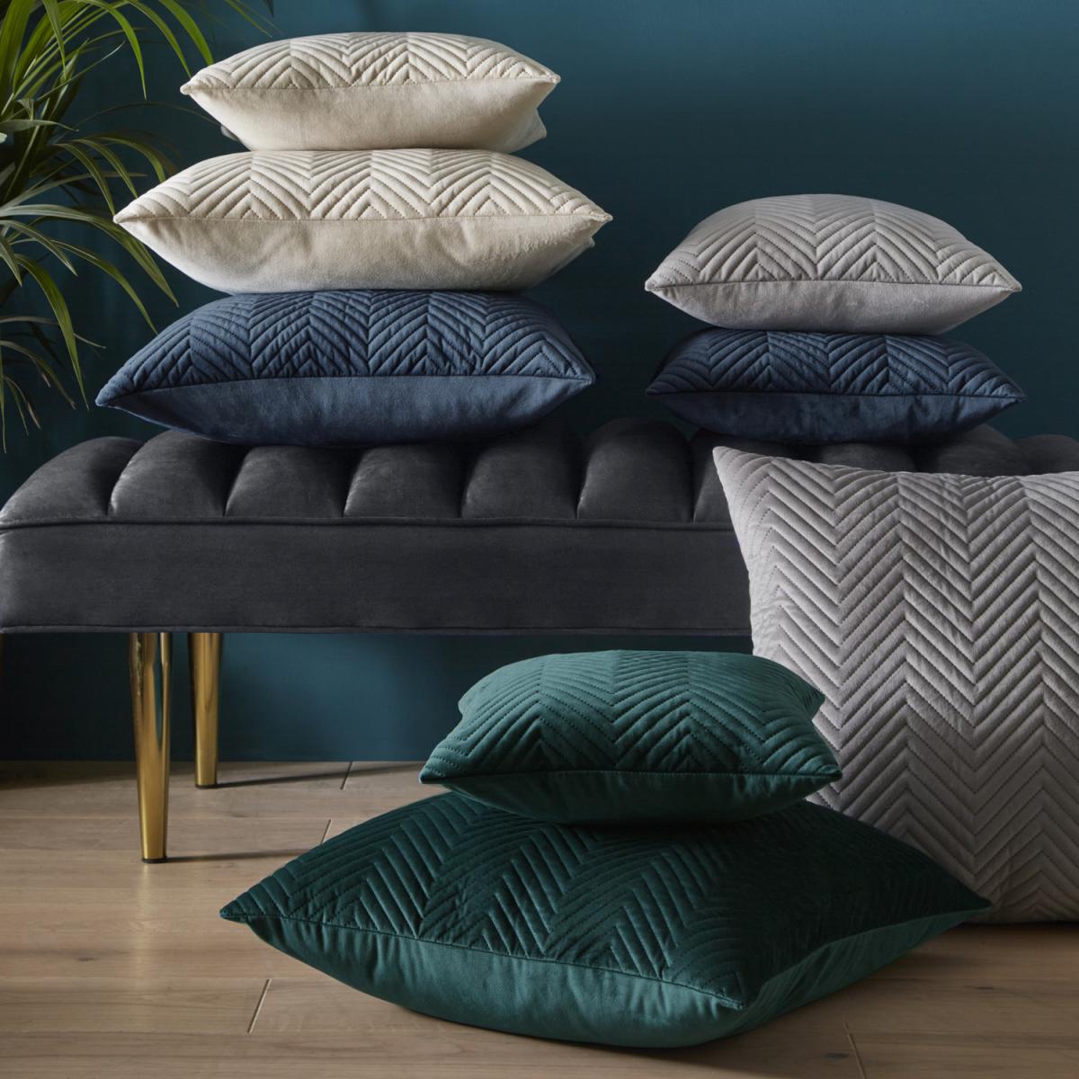 These stunningly soft velvet cushions will add both style and comfort to any living room space they are placed within from the bedroom to the sofa. The soft texture makes these cushions hard to resist, there incredibly stroke-able and look fantastic clustered together or simply as stand-alone pieces to add some extra colour. These cushions offer additional texture with sleek, Pinsonic stitching and are easy to match to existing accessories around the home. Available in Grey, Natural, Navy and Teal.