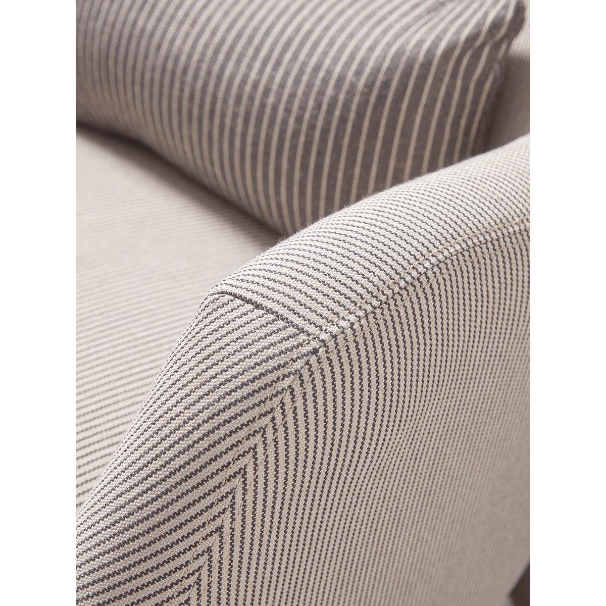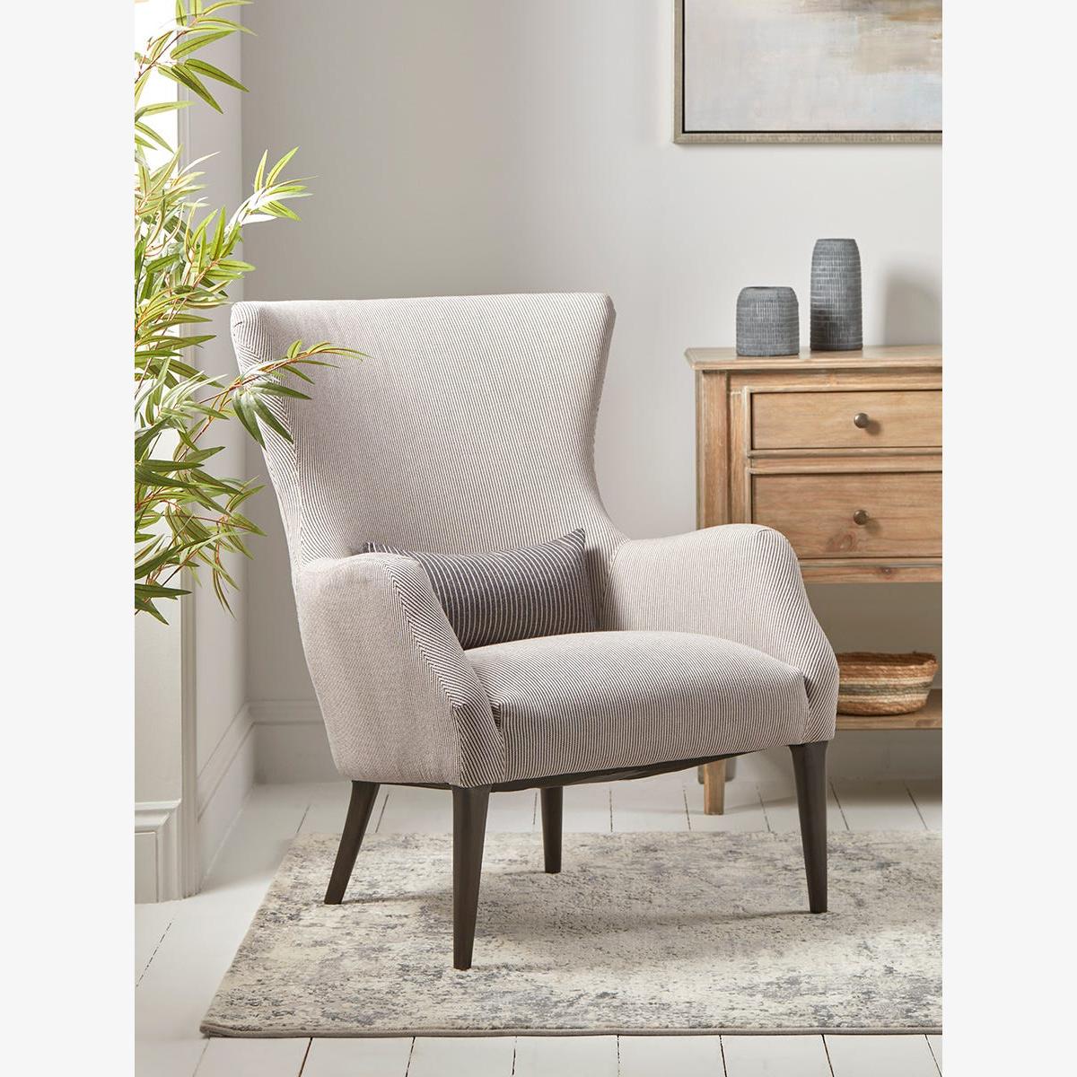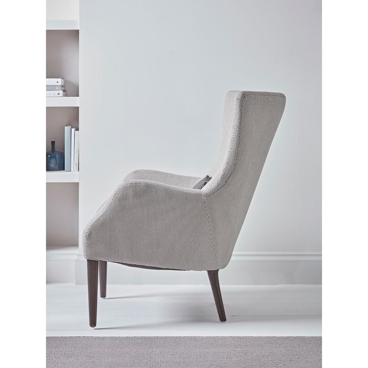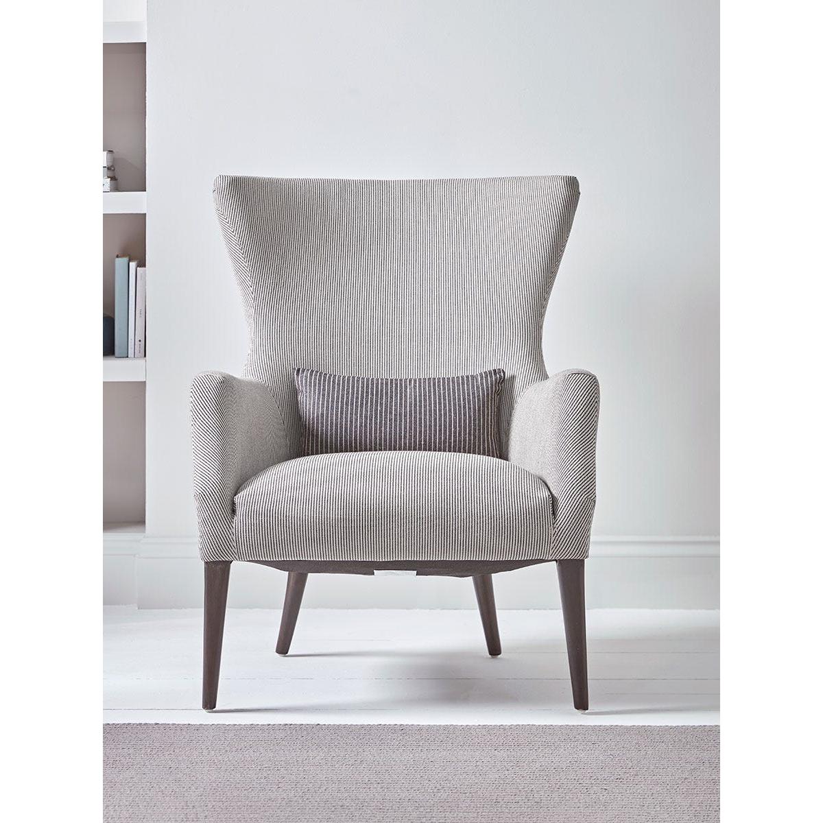 I’m a fan of this pinstriped chair for its clean lines and subtle texture - it instantly smartens up a living room or reading nook without feeling fussy. Its tall back and slim arms work equally well in a Scandi-style space or a more traditional setting, especially when paired with natural-wood furniture and muted tones. For everyday styling, drape a soft, contrasting throw over one arm and position a slim side table with a brass or matte-black lamp alongside. A small, striped or block-coloured cushion will echo the chair’s pattern and tie your scheme together.