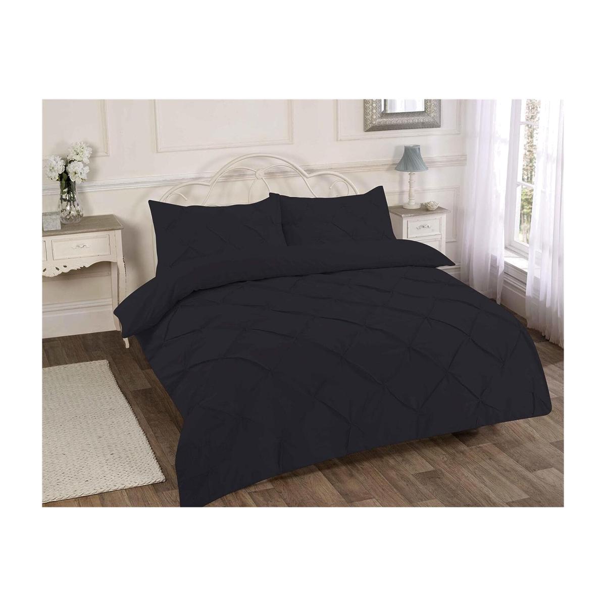 Pintuck Pleated Duvet Cover Set Bedding - Black / Double