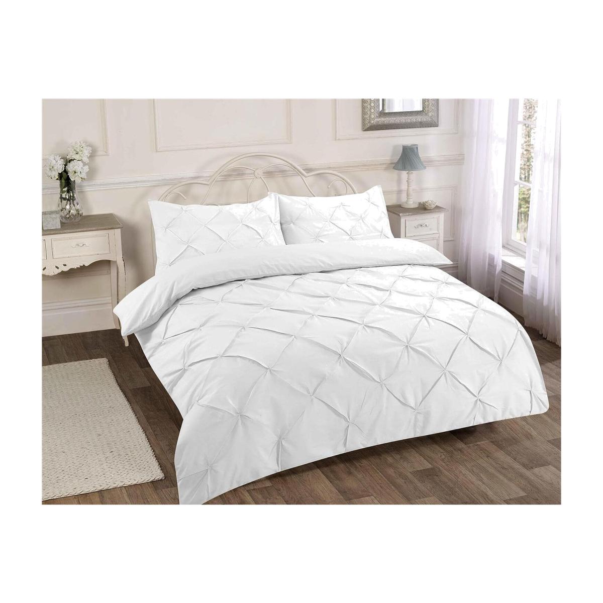Pintuck Pleated Duvet Cover Set Bedding - White / Superking
