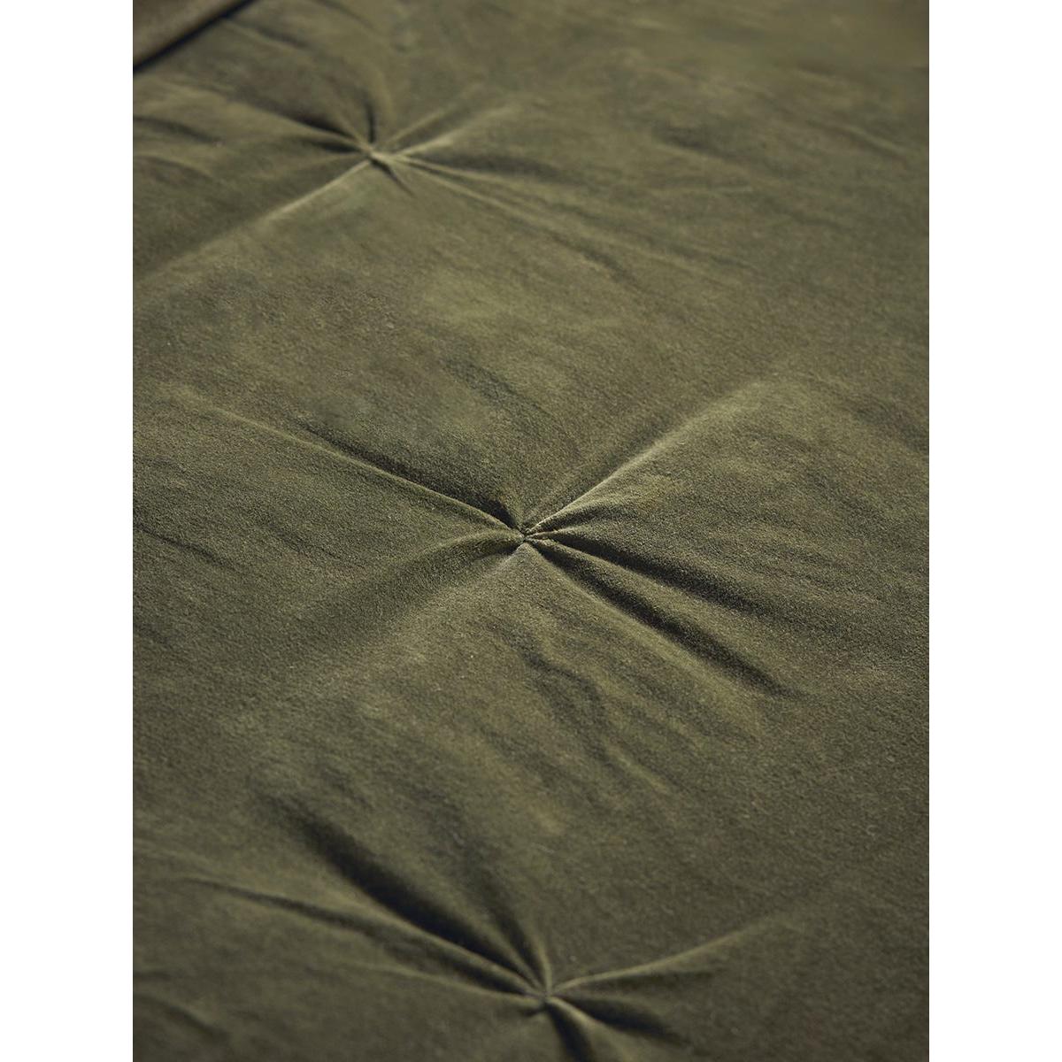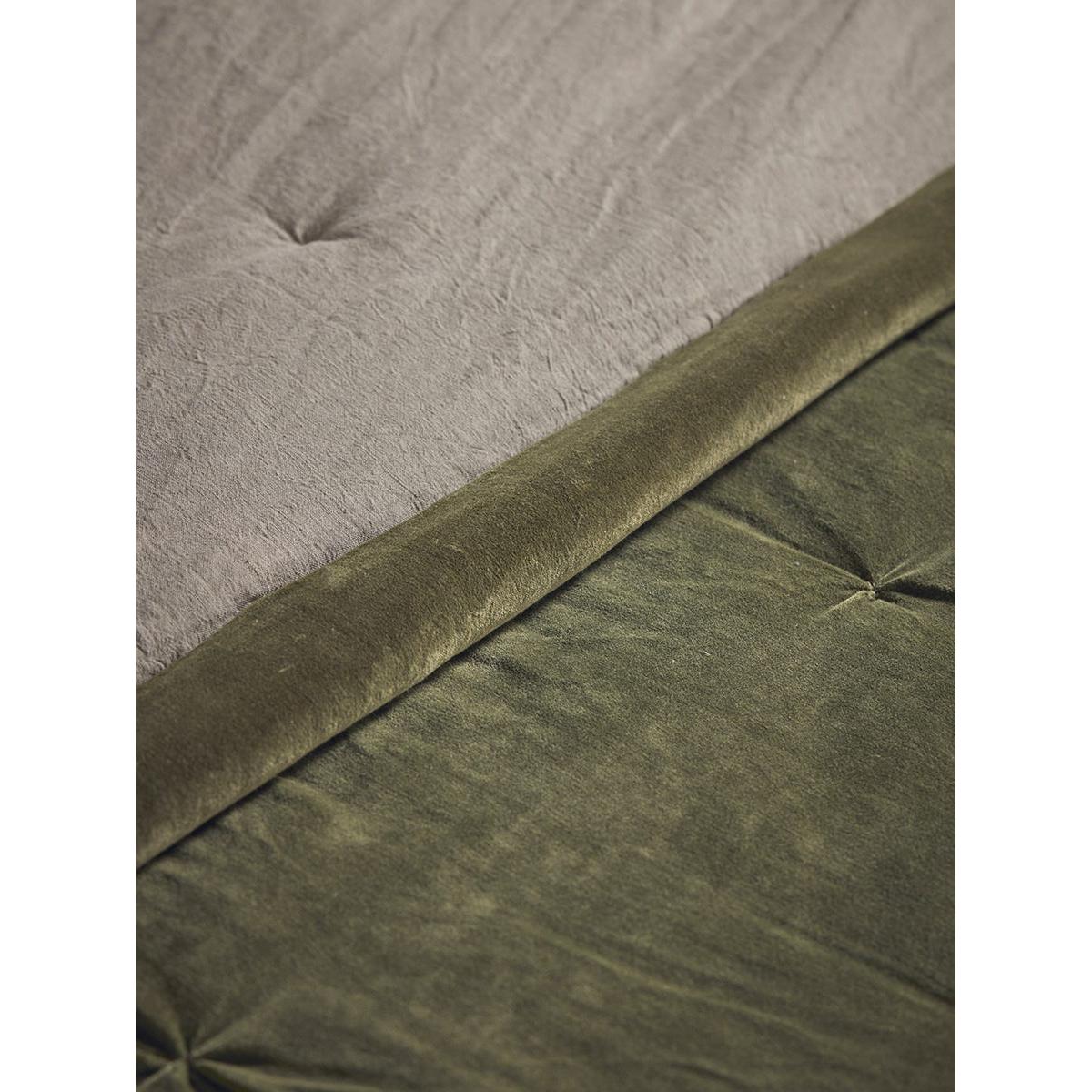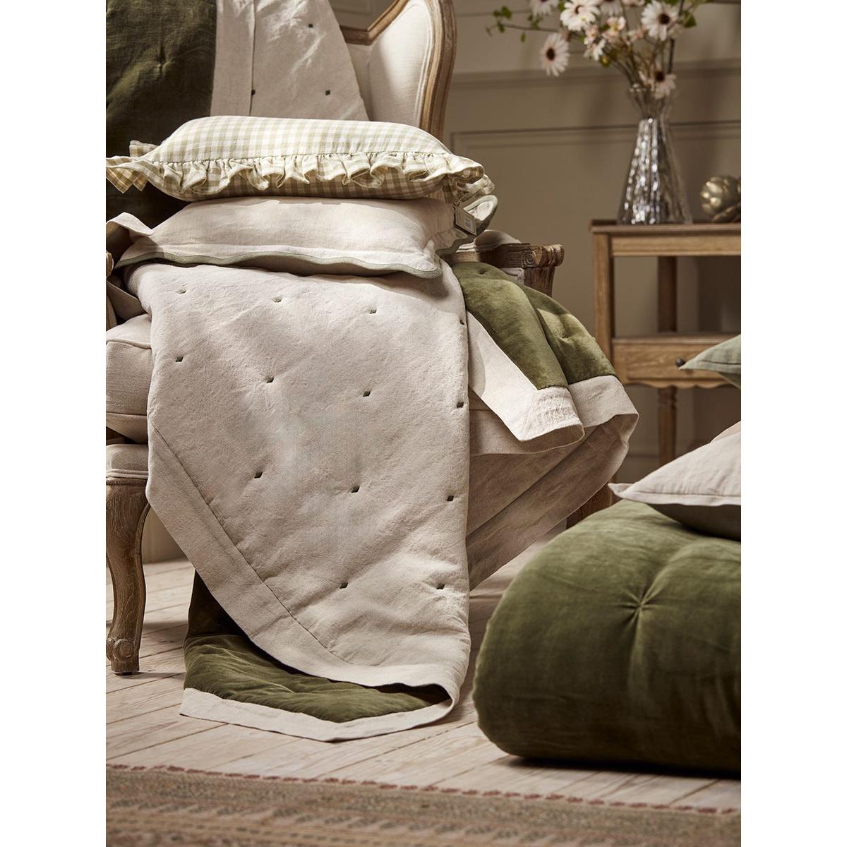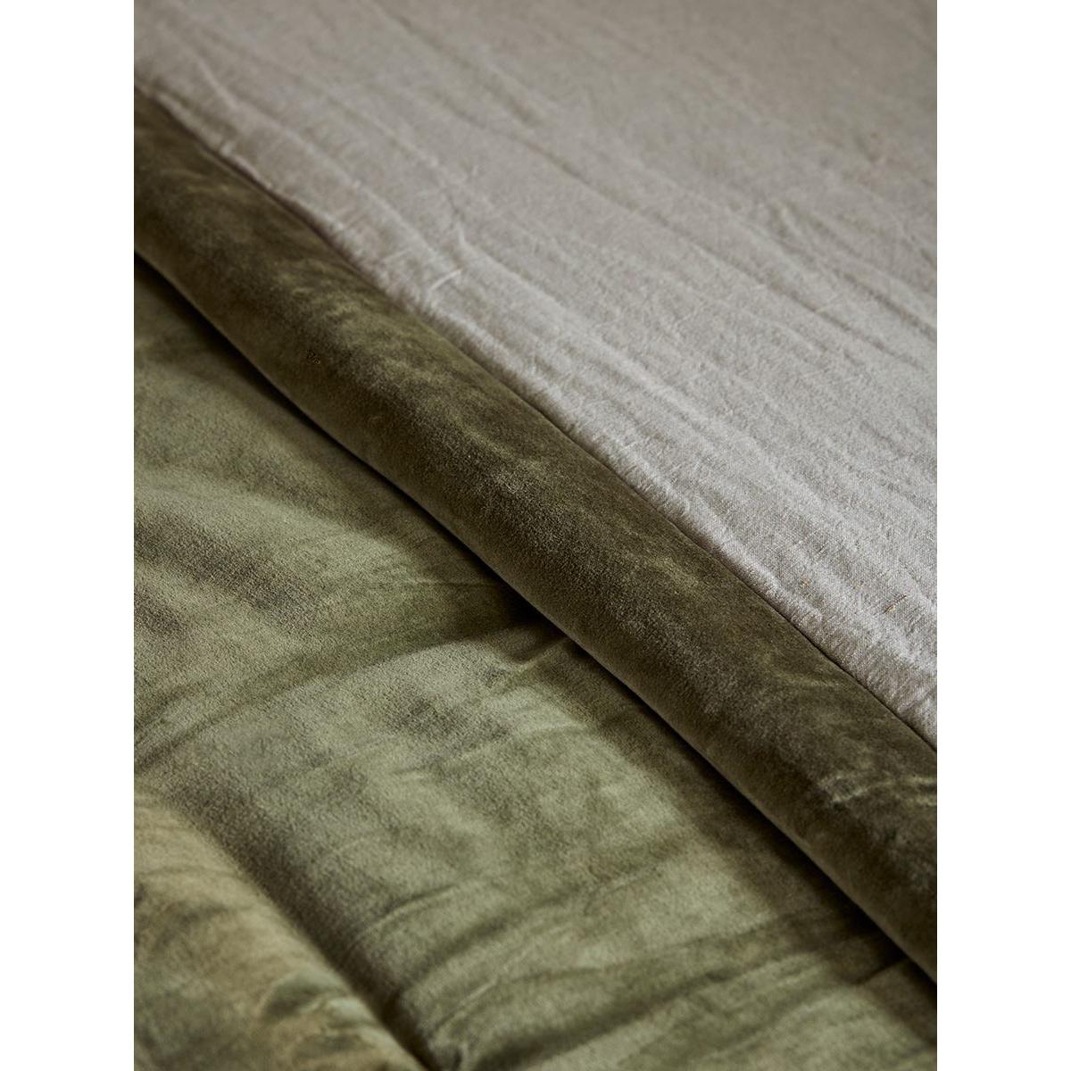 With quilted pin tucked style detailing, this deep moss green throw adds a deep and moody touch of colour to your home, whilst its material of cotton velvet adds a luxurious finish to it. Reversible to a neutral side that is crafted from a blend of linen and cotton, this throw has enough versatility to work in a variety of room styles and interiors, depending on your mood.