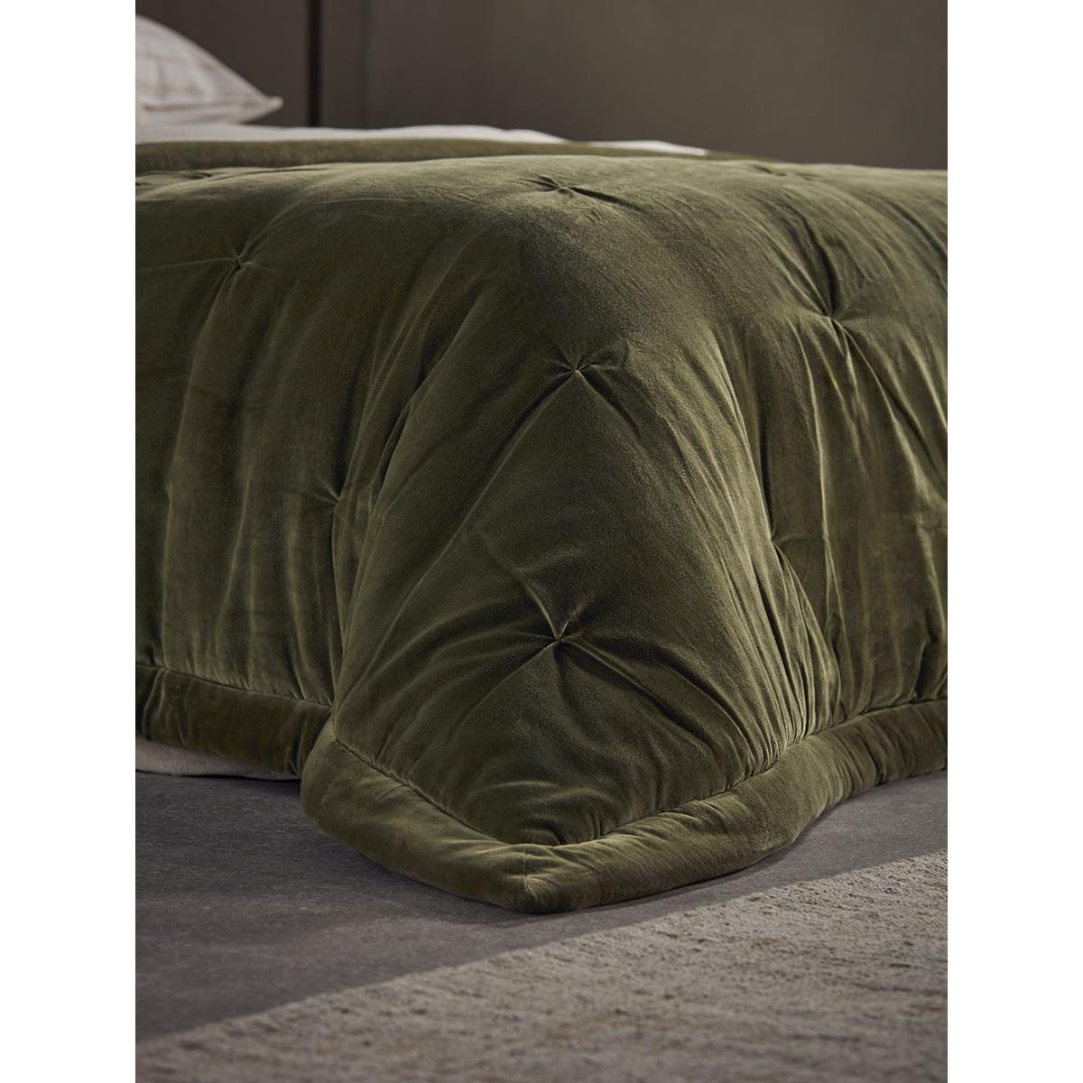 Pintucked Velvet & Cotton Linen Kingsize Quilt - Moss Green