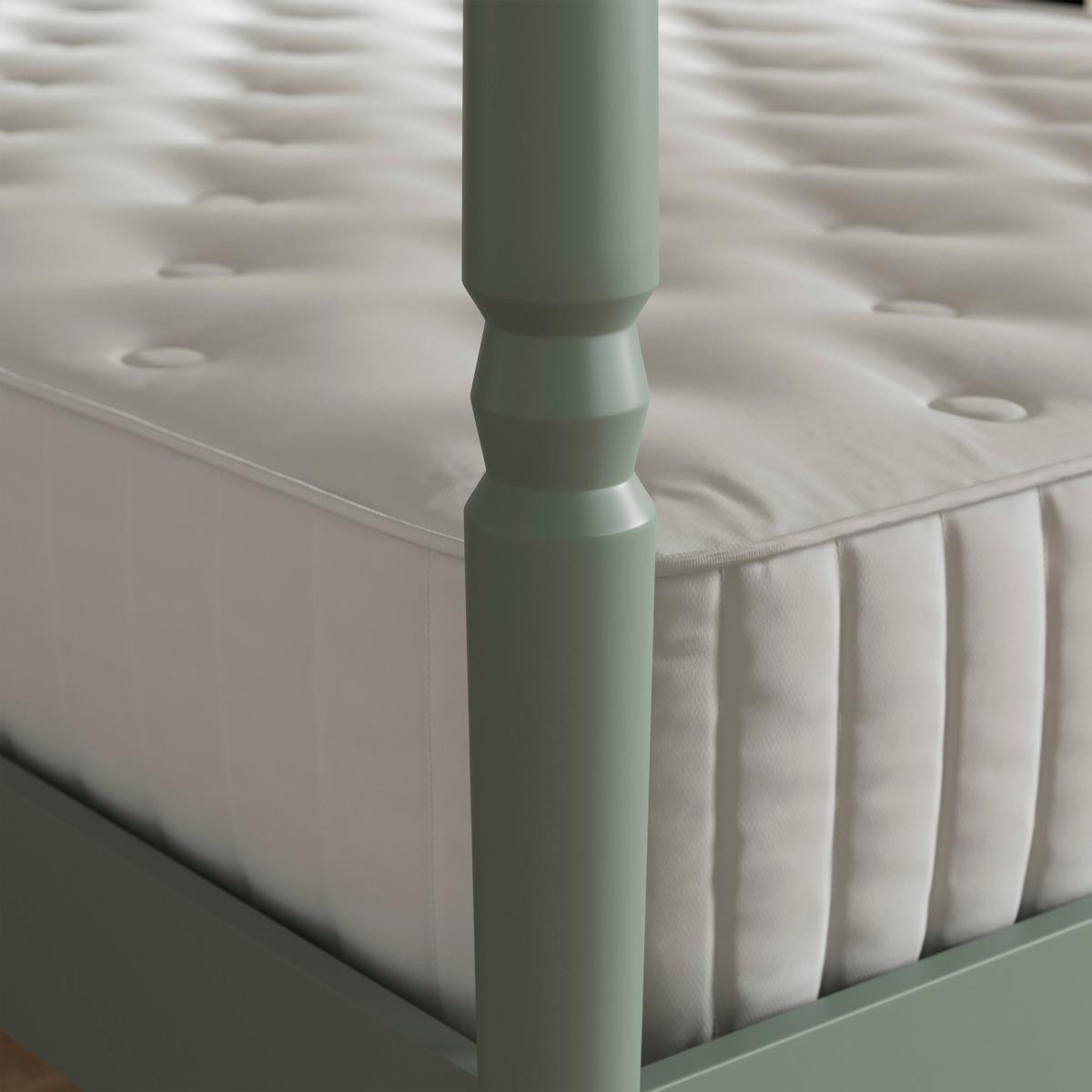 * Four poster bed frame * Durable wooden construction * Turned post detail * Sprung slatted base * Available in a choice of painted finishes * Double or kingsize * Easy assembly Style and impact is easy to achieve with this Pip wooden 4 poster bed frame. Available in a choice of stunning hand painted finishes, the durable wooden construction will stand the test of time, and features turned post details. Choose from double or kingsize and enjoy the sprung slatted base to allow airflow through the mattress and a comfortable slumber. It's easy to assemble and you can leave it as a simple frame or dress it with hangings or voiles for further impact. Perfect!