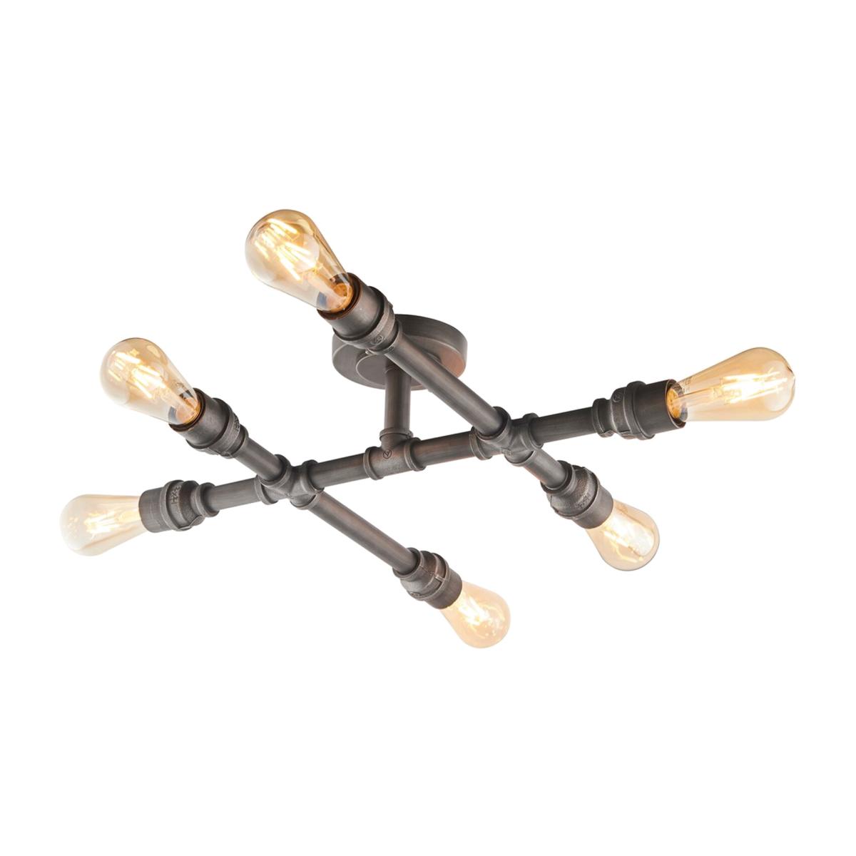 Pipe 6 Light Semi Flush Light Aged Pewter Paint, E27 - Aged Pewter Paint