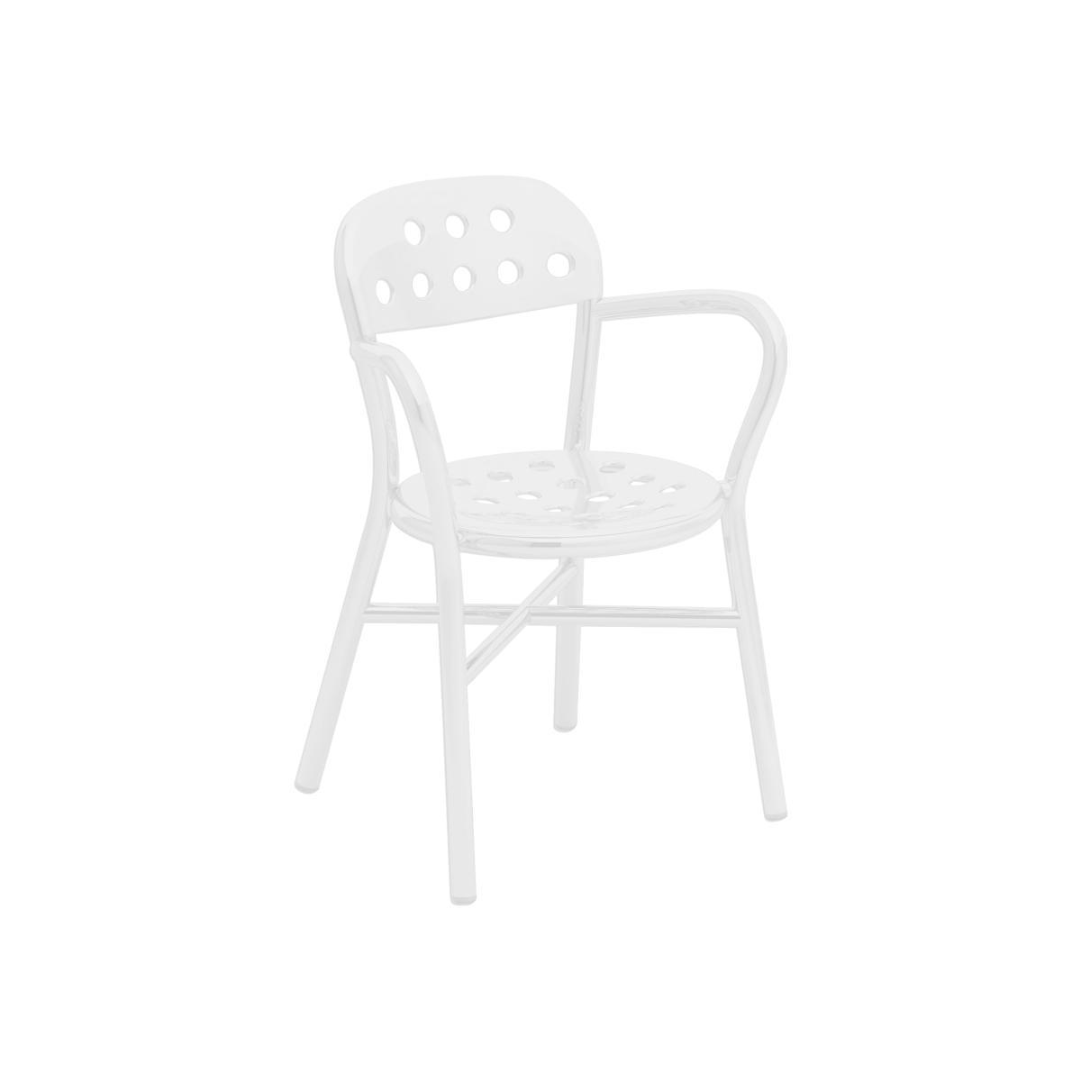 I love this stackable armchair because of its sleek, minimal design and practicality. Its clean white finish ensures it can slot effortlessly into various garden settings, from modern patios to traditional terraces. It works well in both contemporary and coastal-inspired outdoor interiors, providing a fresh, crisp look. Practical styling tips include pairing it with colourful cushions or draping it with a throw for added comfort and visual interest. Its stackability makes it a great choice for flexible outdoor spaces that need to be easily stored or reconfigured, making it both stylish and highly functional.