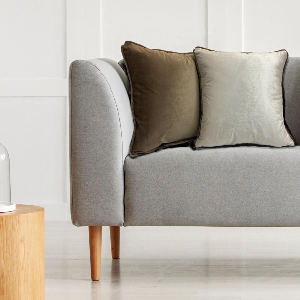 Piped Velvet Cushion Cover (43x43) - Natural