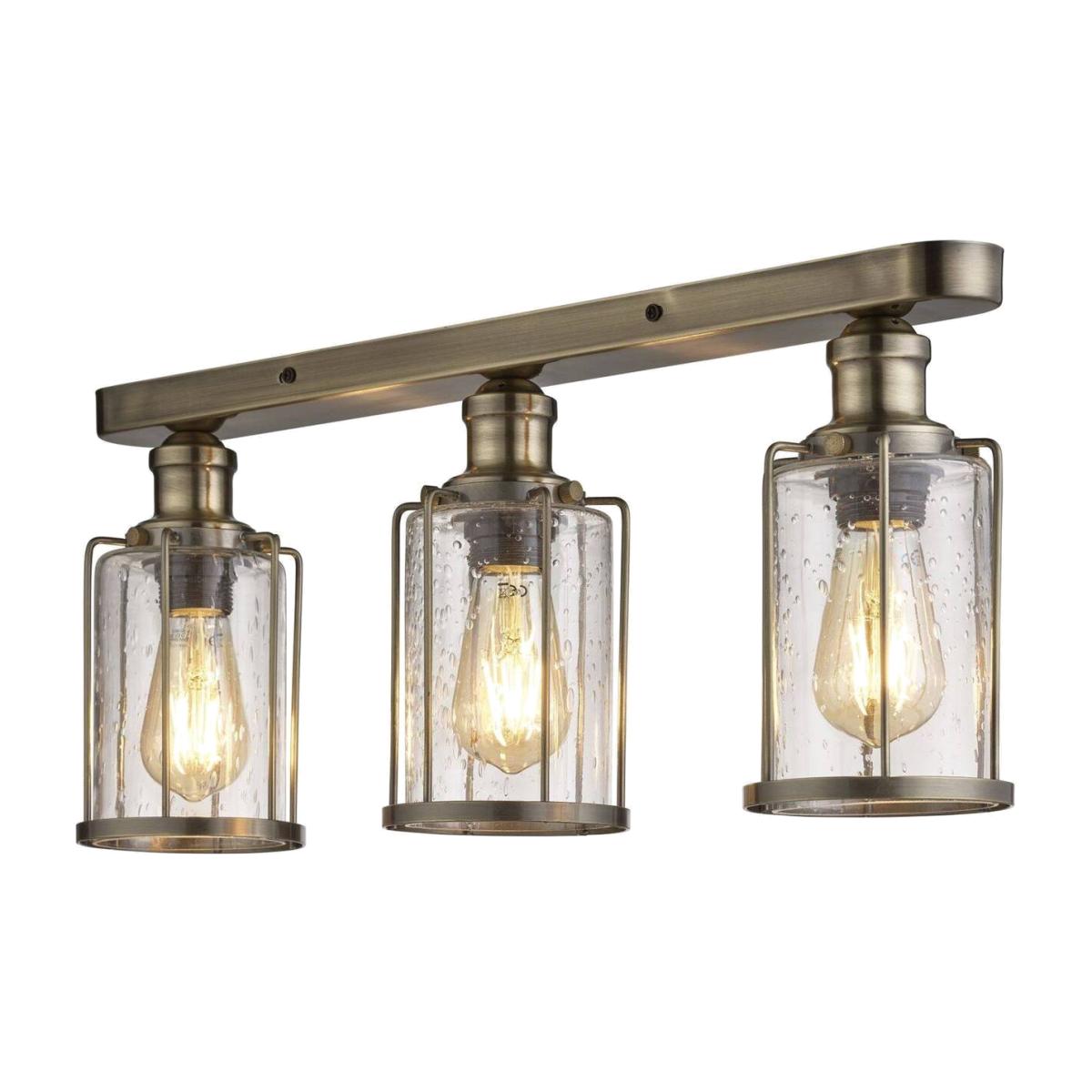 A simple glass 3 light with a rustic bubbled finish to the glass and an antique brass trim. Suitable for use with LED lamps, and looks especially effective when used with a decorative filament lamp.