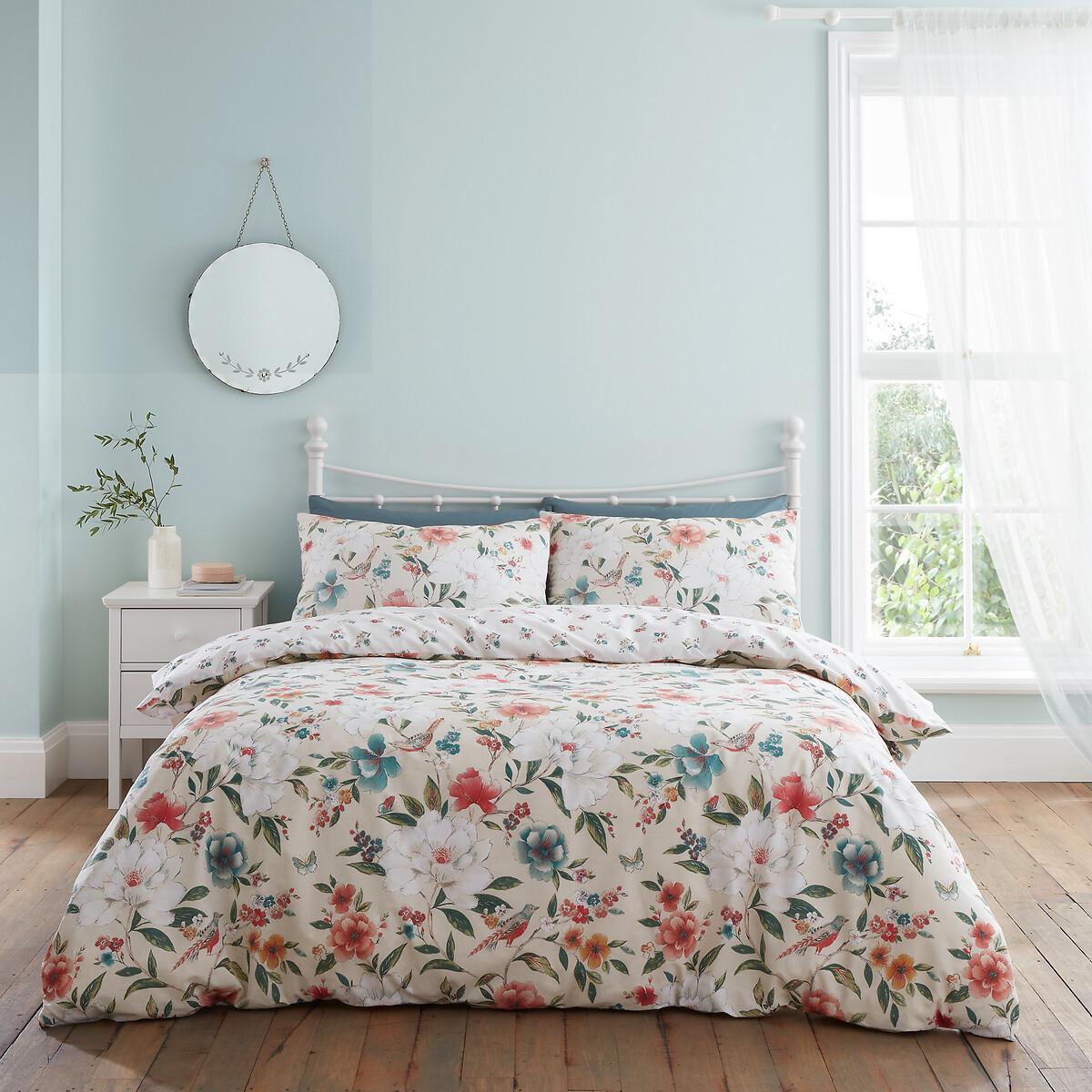 Capture the timeless elegance of nature with this traditional floral and bird’s bedlinen. Set on a vintage natural base, this enchanting design showcases a symphony of romantic painted birds nestled amidst beautiful flora and fauna. Fully reversible with ditsy floral bunches and created from easy-care recycled polyester and soft responsibly sourced cotton, blended together for everyday use. Made to quality and human-ecological safety standards, in accordance with STANDARD 100 by OEKO-TEX®.Product Dimensions:52% Polyester 48% Cotton. Sizes available: -135x200cm (Single)-200x200cm (Double)-220x230cm (King)This product will be dispatched by one of our trusted suppliers. You’ll be contacted by their selected courier about your delivery. TURNE01