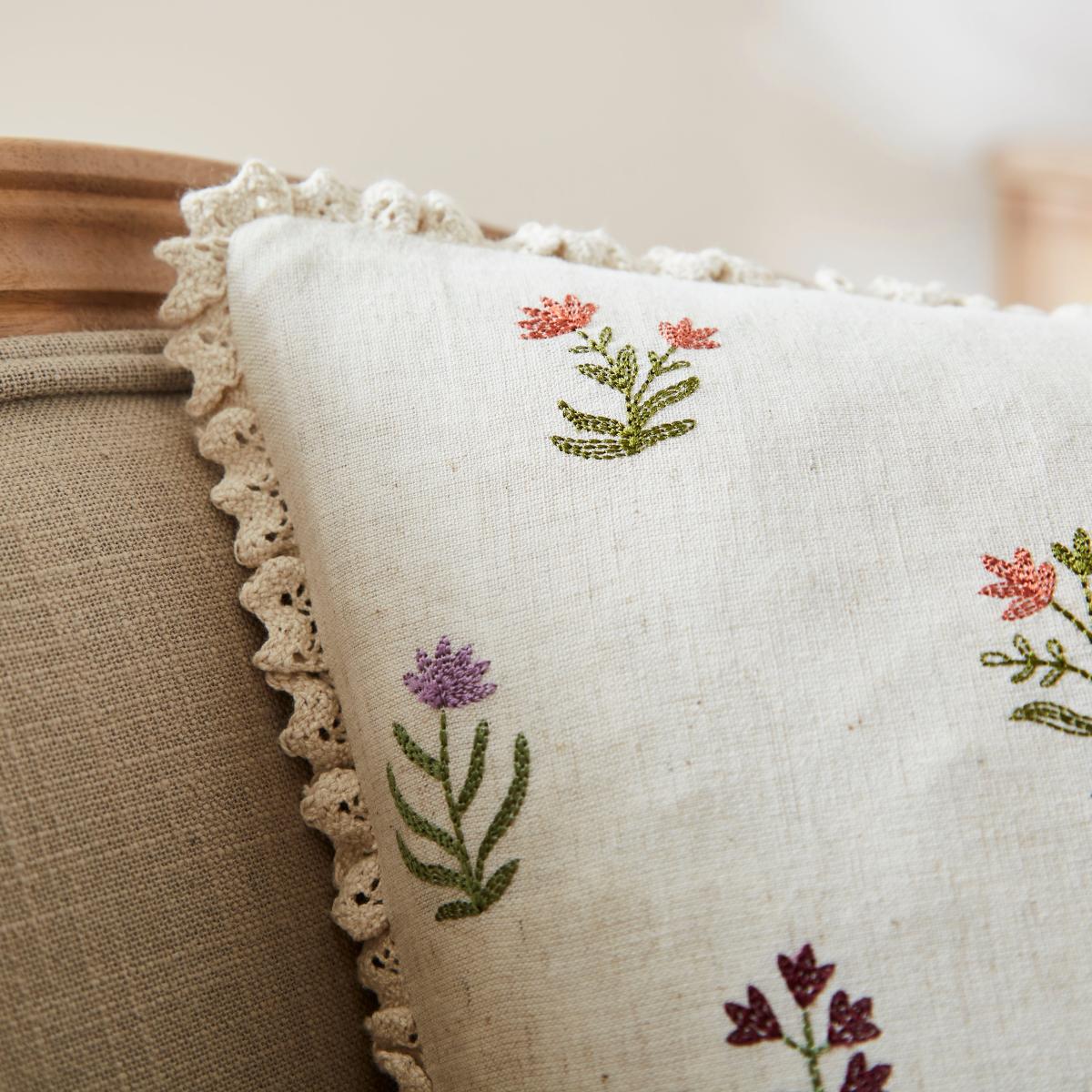 Pippa Floral Cushion Natural