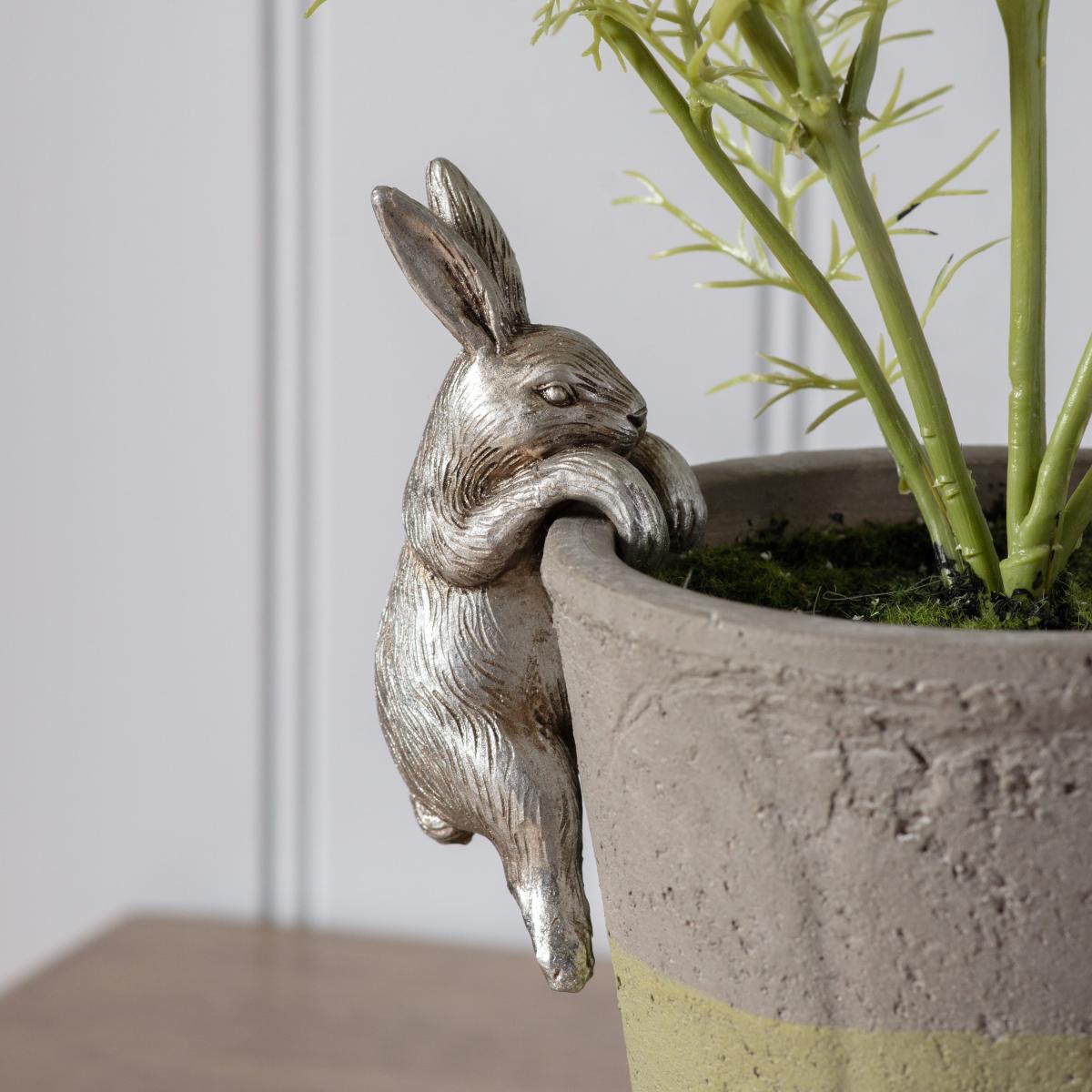 Add charm and character to a planter or vase with our fun range of pot hangers. This hare pot hanger adds a fun touch as it hangs onto the rim of the pot.