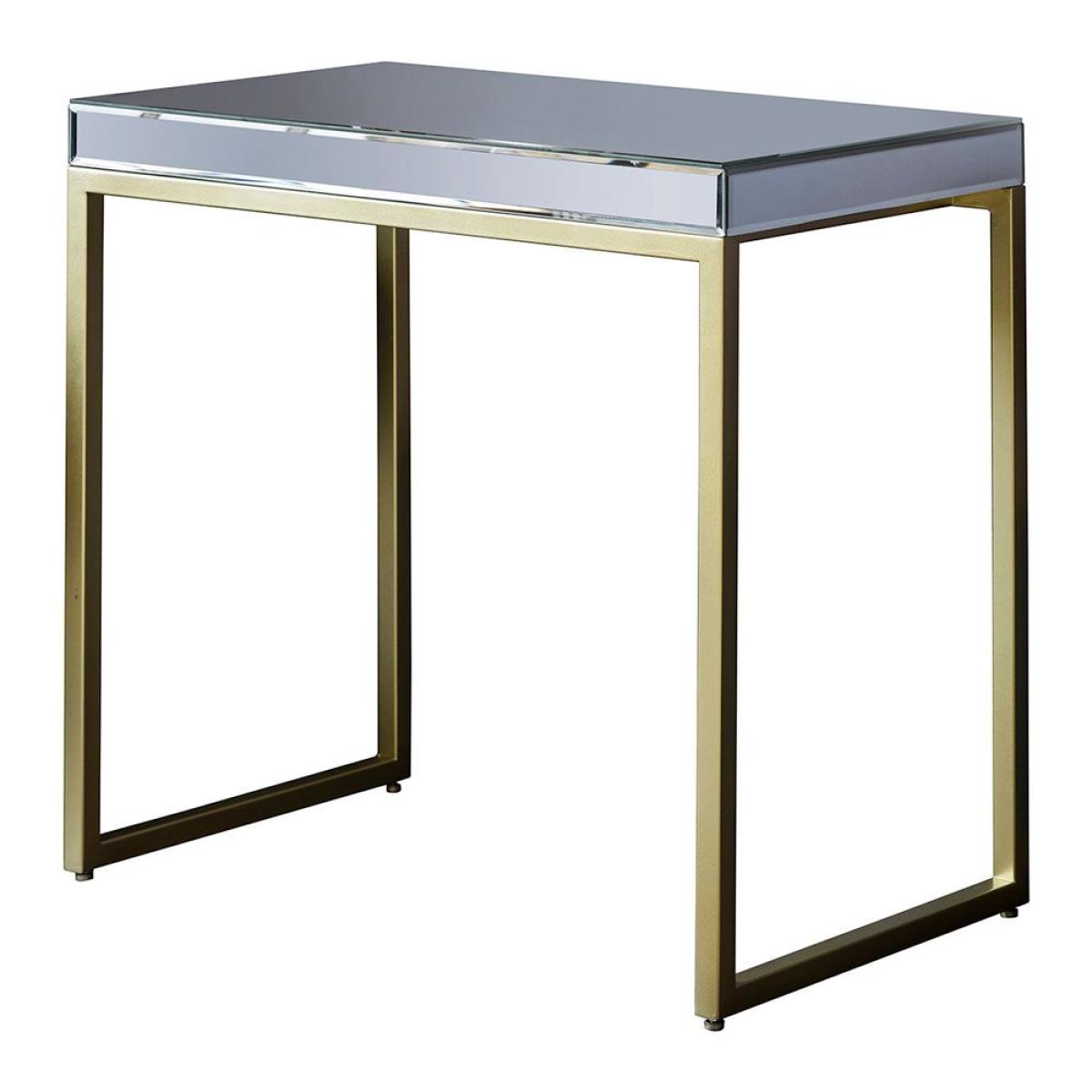 This stunning Pippard Side Table features a bevelled mirror top and a soft champagne metal frame. Adds an elegant and classy feel to your room, whilst being extremely useful. Ideal for keeping your drink, nibbles or the TV remote just in reach this stylish side table is endlessly versatile. Dimensions: W61cm x D38cm x H62cm