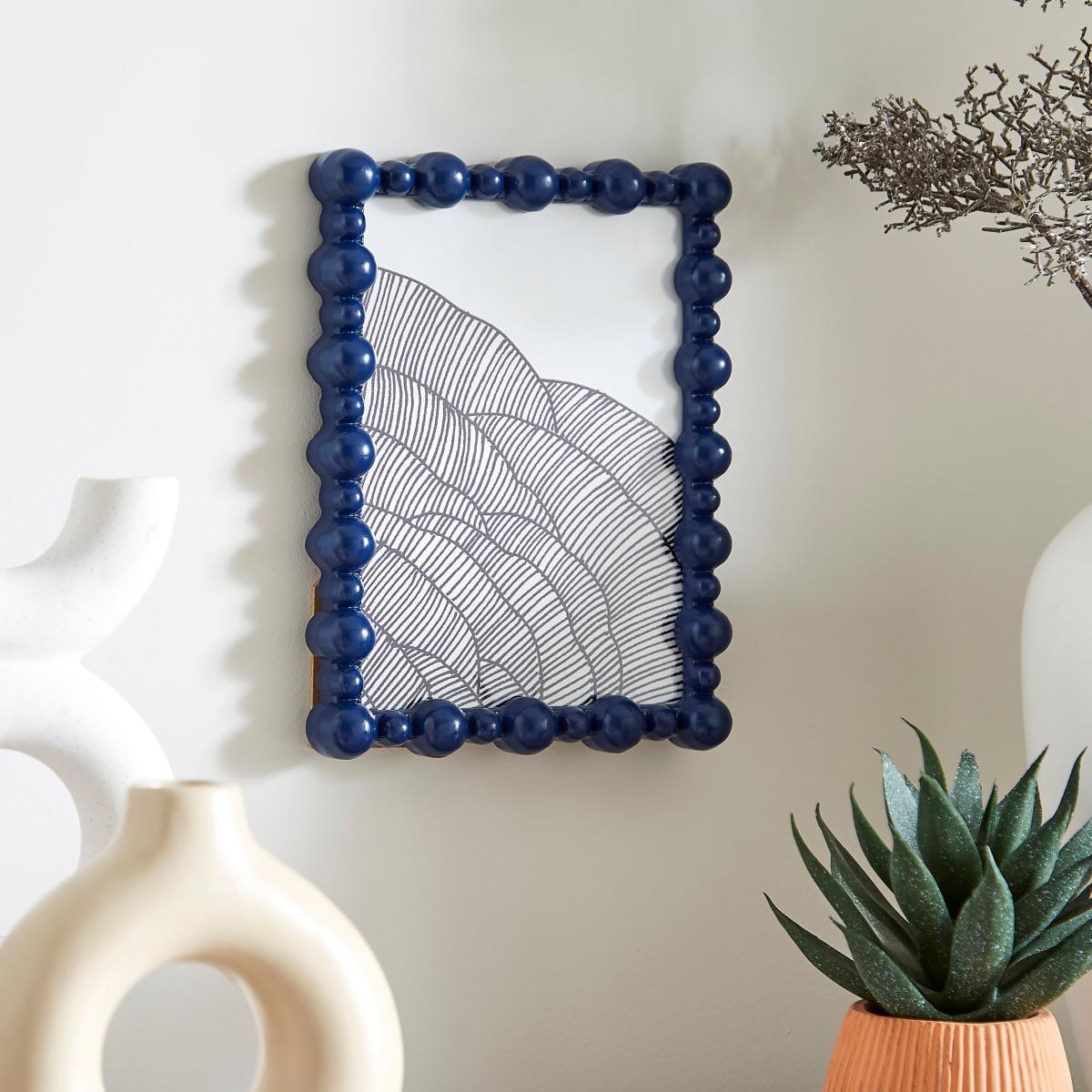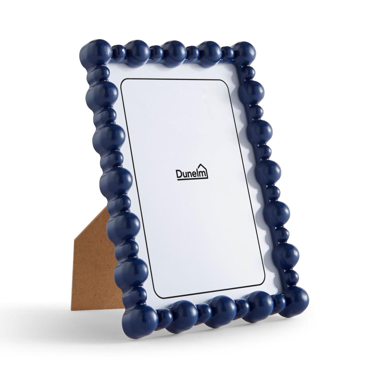 I love the navy hue of this photo frame - it adds a bold pop of colour that works well in both modern and traditional interiors. Its bead detail offers a tactile touch, making it a versatile piece to style alongside neutral rooms or deep, richer palettes for contrast. You could pair it with other navy accessories or gold/copper accents for a layered look. For practical styling, try grouping it with smaller frames on a shelf or placing it as a statement piece on a mantel or gallery wall. It’s especially effective in minimalist or Scandinavian-inspired spaces where the colour can shine without overwhelming the overall decor.