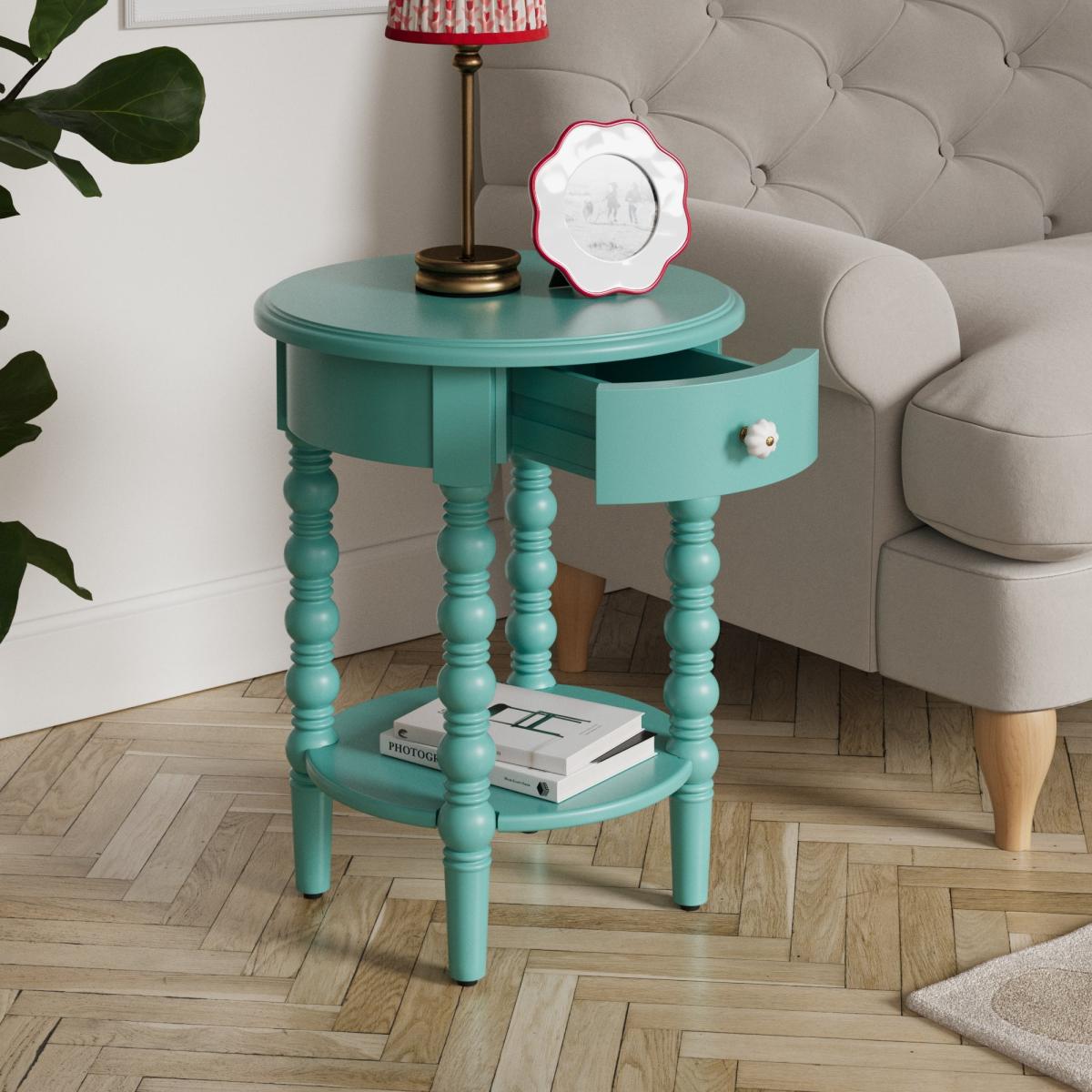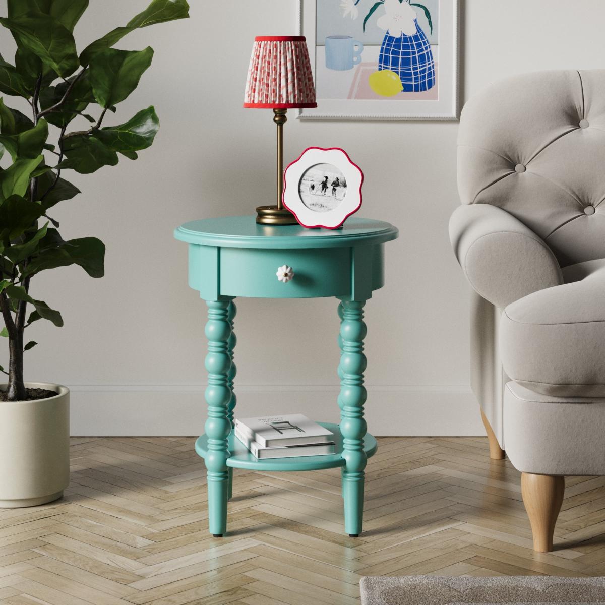 I love the Pippin side table Aqua for its vibrant colour and charming design, which adds a playful yet refined touch to a variety of interiors. It works particularly well in eclectic, coastal, or contemporary spaces where a splash of colour can elevate the overall scheme. Practical styling tips include pairing it with neutral furnishings to let the colour pop, or adding small decorative touches like a vase or a stack of books on its lower shelf for an inviting layered look. Its size makes it versatile as a bedside table, beside a armchair, or in a reading nook, making it both functional and stylish.