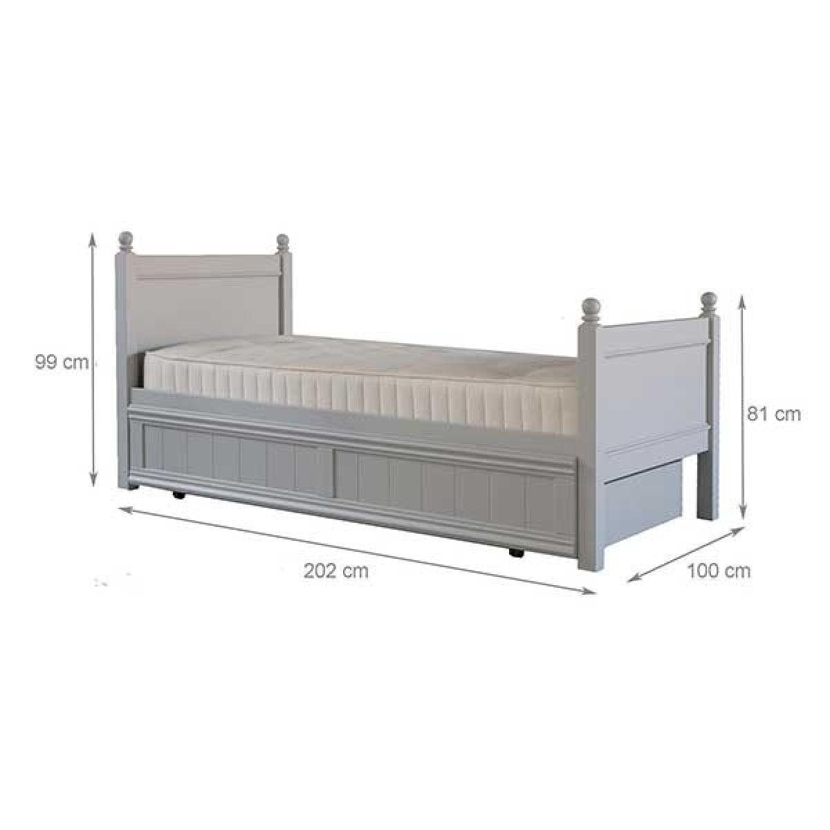 Design. Boasting classic turned finials and sleek clean lines, the Pippin single bed holds great traditional appeal with just the right amount of contemporary influence. Crafted from solid wood with mortice and tenon joints, the Pippin is sure to last throughout the duration of childhood, right through to those teenage years. Finished in a choice of three gorgeous soft painted colours, this stylish bed has the capability of complimenting a range of decor schemes, perfect for growing and changing with your children. Opt for the additional trundle with this version of the classic Pippin bed. Multi-functional, working perfectly for both further under bed storage that’s certain to stay neatly tucked away or pair with our coordinating trundle mattress to be best prepared for sleep over fun. A guaranteed commitment to real quality. You don’t just find quality in the polished grain of hand-crafted wood or soft touch of supple premium leather. Real quality goes more than skin deep to ensure your Barker and Stonehouse furniture remains beautiful, practical and an asset to your home. It’s something we’re very proud of, which is why all our furniture comes with a two-year guarantee with the option to extend to five years should you wish.