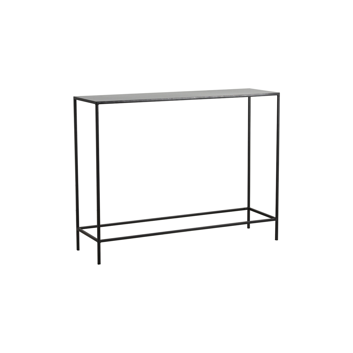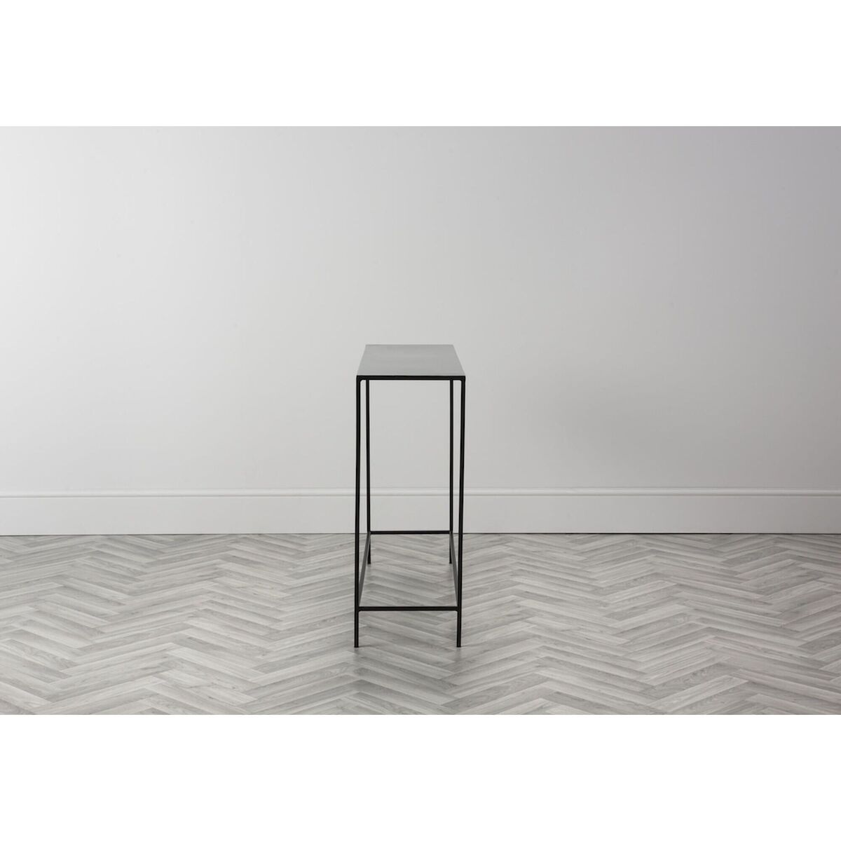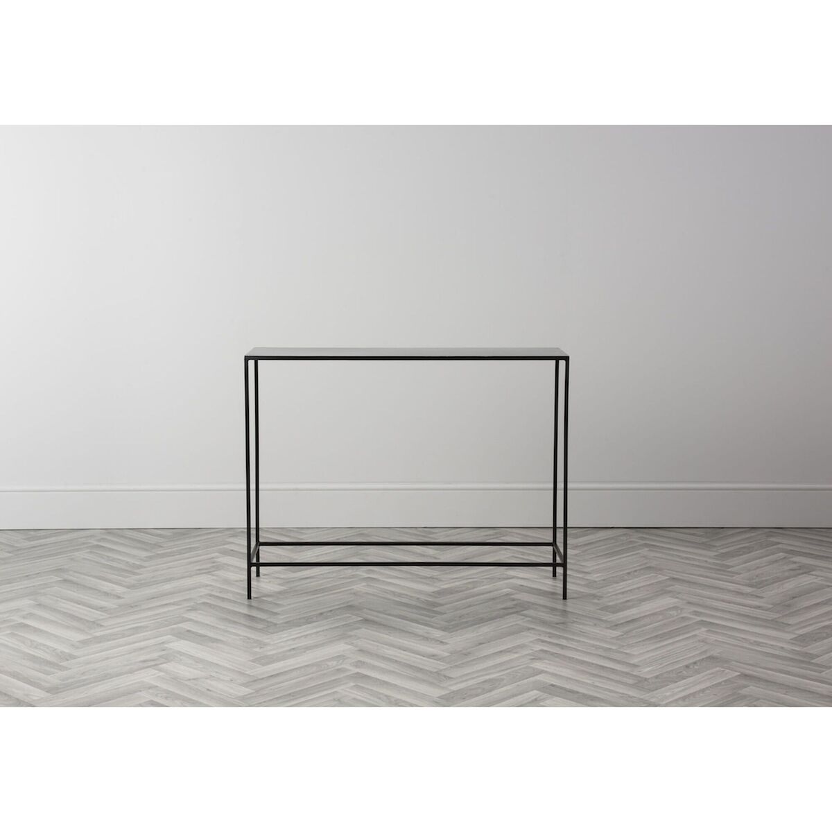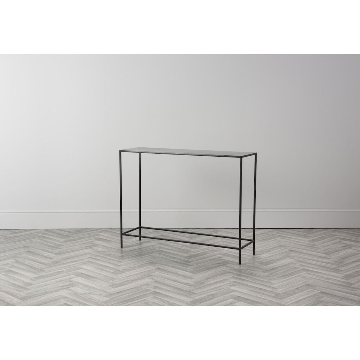 I love this sleek console as it offers a minimalist yet functional addition to various interiors. Its simple slate top with a slender metal frame makes it versatile, fitting well in hallway entrances, living rooms, or even behind a sofa. The clean lines and unobtrusive design lend themselves perfectly to modern or industrial styles, while its understated aesthetic can also complement more eclectic spaces. Practical styling tips include using it for key trays or decorative bowls in entryways, accessing it for books or plants in living areas, or adding a runner or artwork above to create a curated look. It’s a great piece for blending form and function without overwhelming the space.