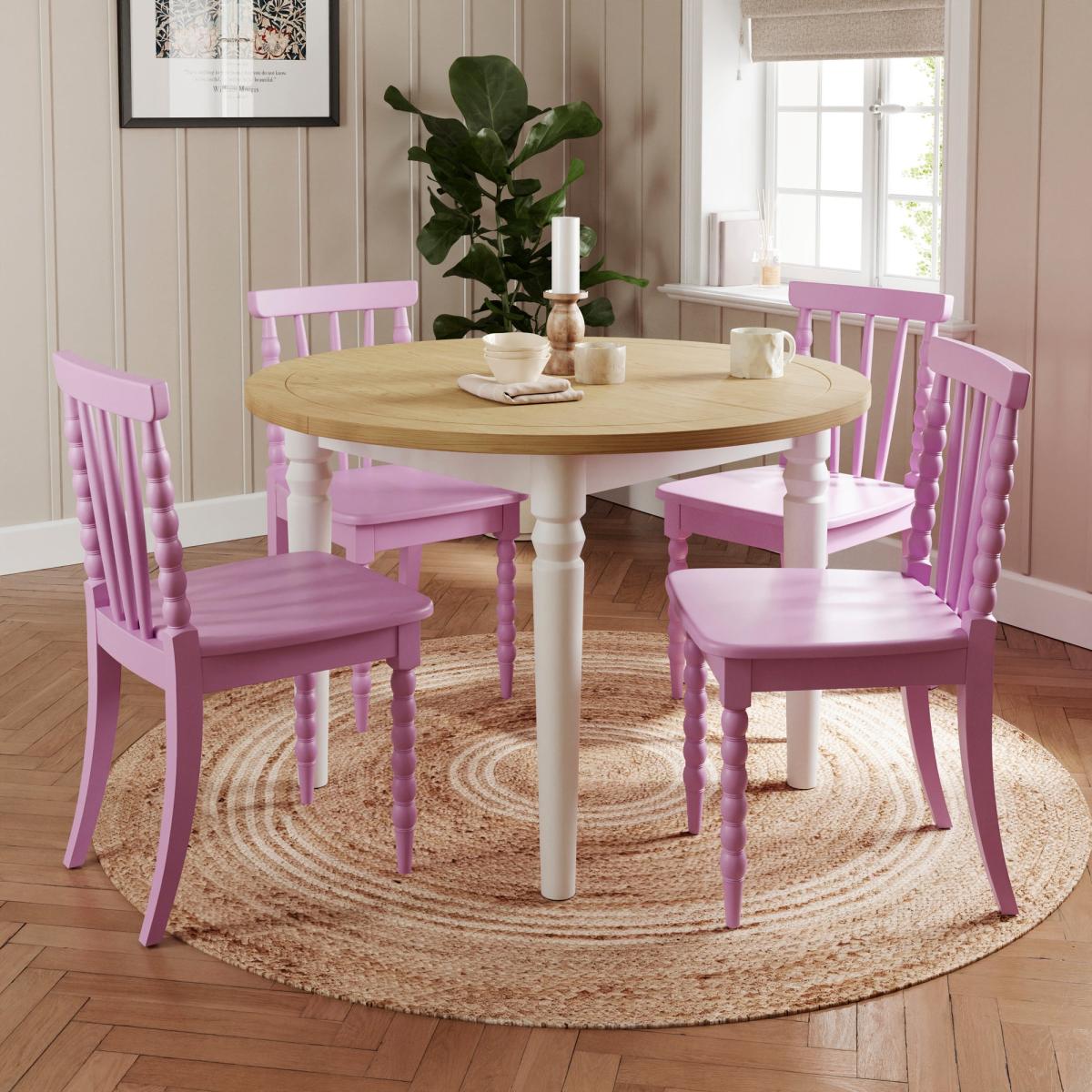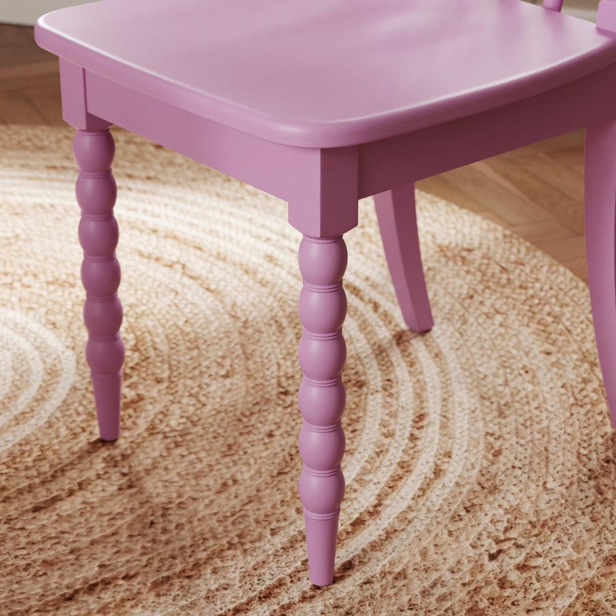 I love this little wooden chair for its charming, traditional details-particularly the turned spindle legs and back. It works well in cosy kitchens or breakfast nooks, especially when paired with a neutral table to let its colour pop. For styling, try contrasting it with modern or minimal surroundings to create a playful mix, or keep it monochrome for a more classic look. Practical tips include using it alongside a lighter-coloured table or mixing with other coloured or painted chairs for an eclectic vibe. It’s also a great piece for adding a touch of colour in a kid-friendly or casual dining space, making it both functional and fun.