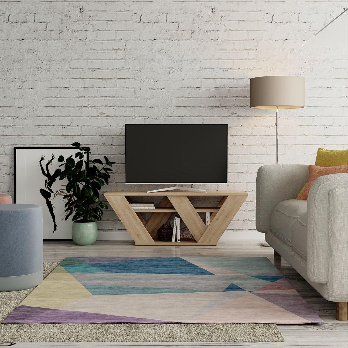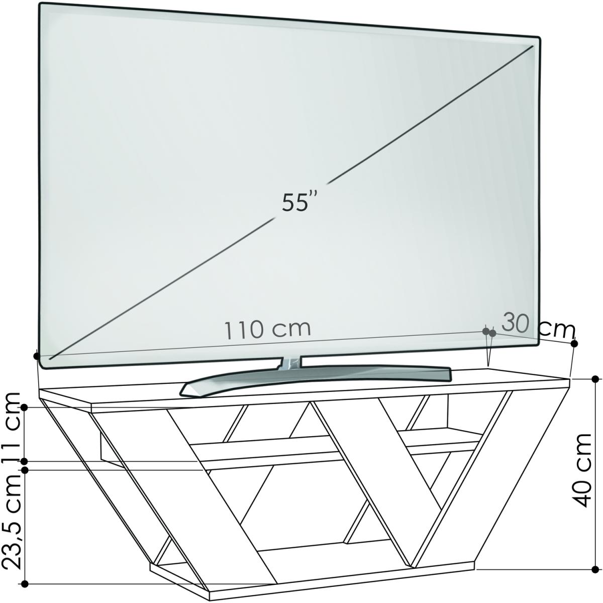 Want to upgrade your living room or entertainment space? Look no further than this stunning TV stand! With its sleek, versatile design and unique v-shaped legs, it adds a modern and contemporary touch to any room. Measuring 110 cm wide, it easily fits TVs up to 50 inches. Plus, you'll love the 2 open compartments that provide plenty of storage space for all your media and accessories. Choose from a variety of colors to find the perfect match for your space. And don't worry about durability, this TV stand is built to last and will be the centerpiece of your entertainment setup for years to come.