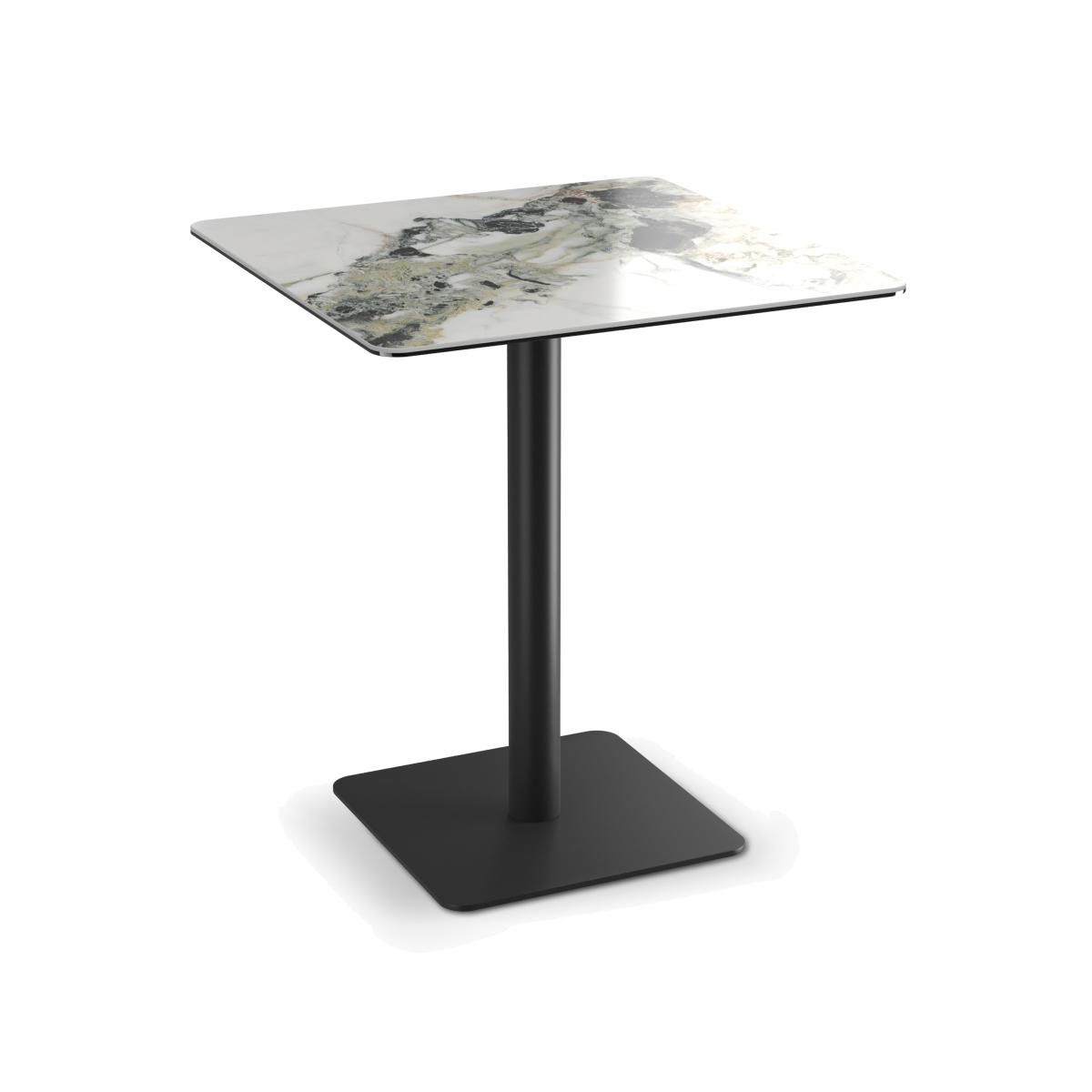 Perfect for intimate dinner parties as well as morning coffee, this compact square bar table has a beautifully sleek ceramic top that’s available in a wide choice of finishes. Why you'll love it Sleek modern style for your on-trend contemporary home. Exceptionally well-crafted square bar table for a compact dining space. Choose from 10 beautiful ceramic finishes, including marbled ceramic. So easy to look after. Ceramic is scratch-resistant, chip-resistant and heat-resistant. Matt black lacquered metal pedestal base saves space. Seats 4. Only at Furniture Village. This square bar table is part of our Pique range. What you need to know Top is 3 mm ceramic layer on 6 mm glass layer. Steel base with a lacquered finish. Please note that the ceramic table top is not 100% heatproof. We recommend using coasters and placemats at all times. Wipe clean with a damp cloth. Dry with a soft duster. Do not use abrasive cleaning products. Part of our Pique collection of compact dining room furniture.