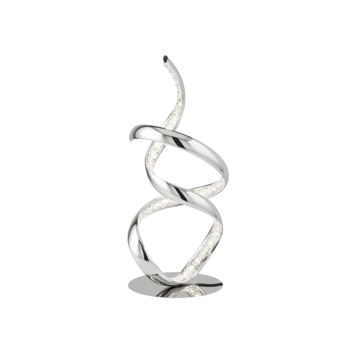 Add instant style to your living room or bedroom with this beautiful twirl arm table lamp. The quirky twisted detail of the item is topped with chrome and decorated with striking clear crystal. When illuminated, the table lamp reflects the light from the surrounding areas and provides a warm glow. LED's use up to 75 less energy and last up to 20 times longer than incandescent bulbs.