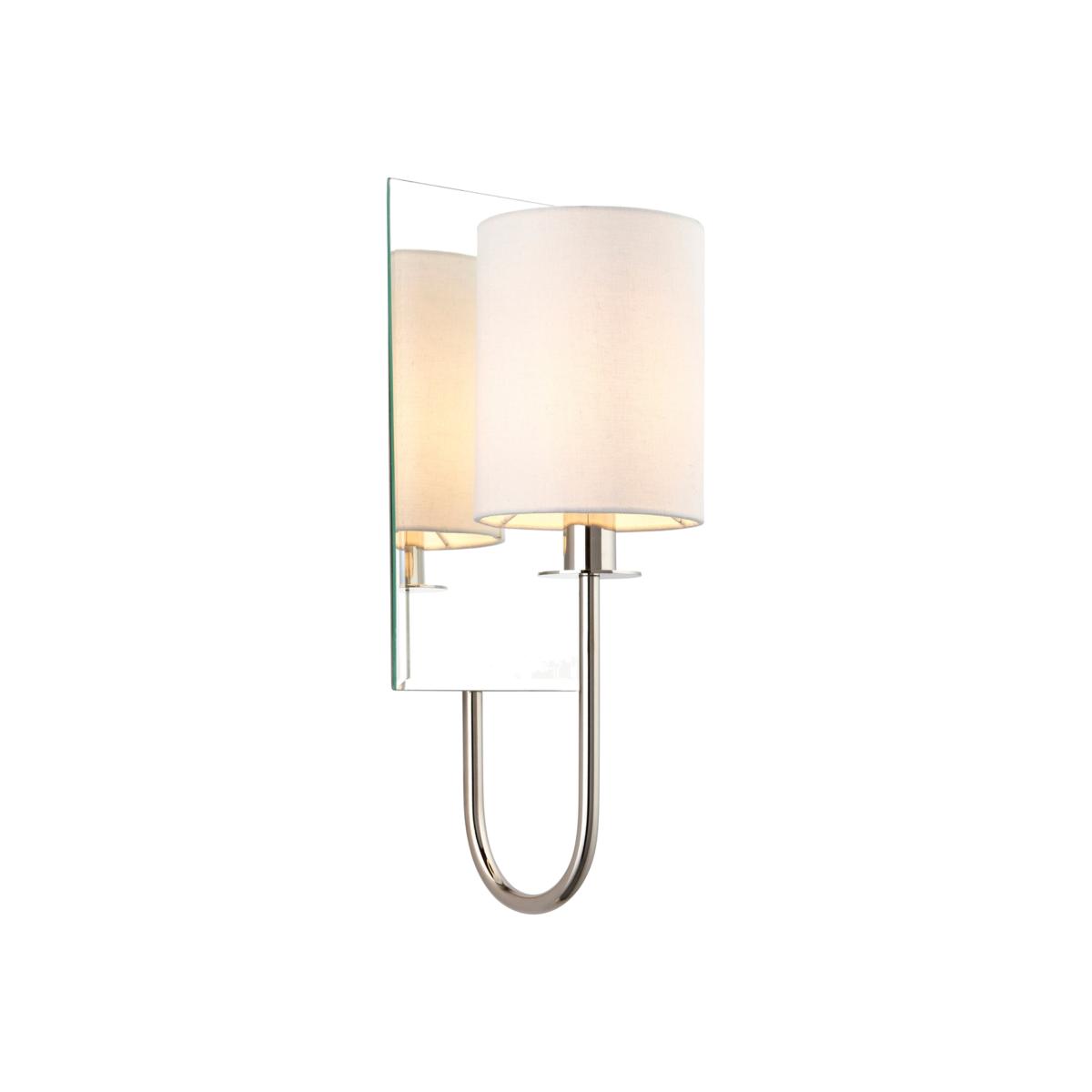 Illuminate a dim hallway or fill an entryway with light with the Pistoia Bright Nickel Plate and Vintage White Fabric Shade Wall Lamp with Mirror Back. The lovely fabric shade diffuses the light while the gleaming finish adds a touch of sophistication to this versatile wall fixture.