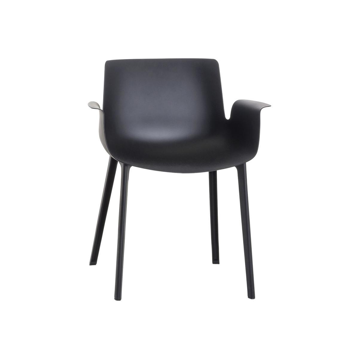 I love this Piuma chair because of its sleek, minimalist design that works well in contemporary interiors. Its black plastic finish makes it easy to pair with a variety of colour palettes and materials, from bold, vibrant dining rooms to more muted, Scandinavian styles. The slightly curved back provides comfort while maintaining a tidy look, making it versatile for both everyday use and more formal dining spaces. For practical styling tips, consider using it in a layered setting - pairing with textured tableware or colourful cushions on the seat for a personalised touch. Its understated silhouette also lends itself well to mixed settings, from home kitchens to modern cafes.