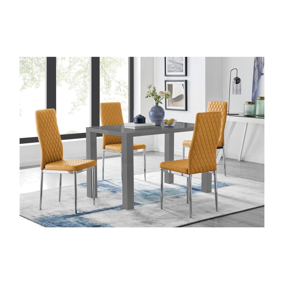Stylish and timeless, the Pivero high gloss table is an effortlessly sleek design for any modern household. Available in a generous 120 x 70 cm surface, or for the larger spaces we also do a 150 x 80cm version both available in black, white and grey. Make everyday life easy as 123 with the Pivero high gloss table, with its super easy wipeable surface, the mess won't be around for long. Understated and at an unbeatable price, add the Pivero dining table to your space today. Paired alongside our beautiful faux leather diamond quilted Milan chairs, you can't go wrong with this set. The chairs are made from high-quality faux leather and are ergonomically designed for maximum comfort and support. They feature soft touch faux leather with a deep foam seat cushion and plastic feet to protect the floor from any damage! With a real designer look alongside a feeling of luxury, just without the expensive price tag, this set is perfect for any dining space.