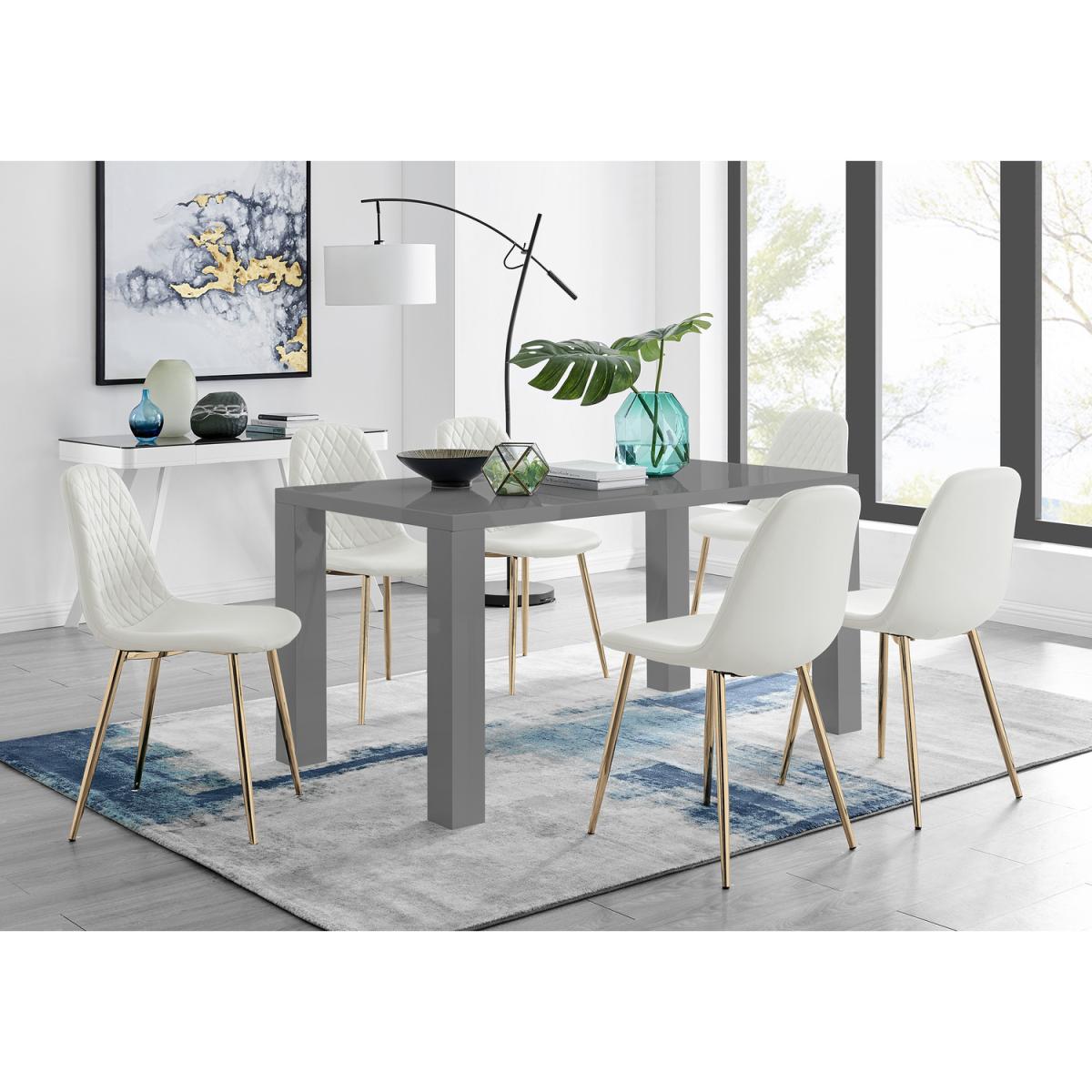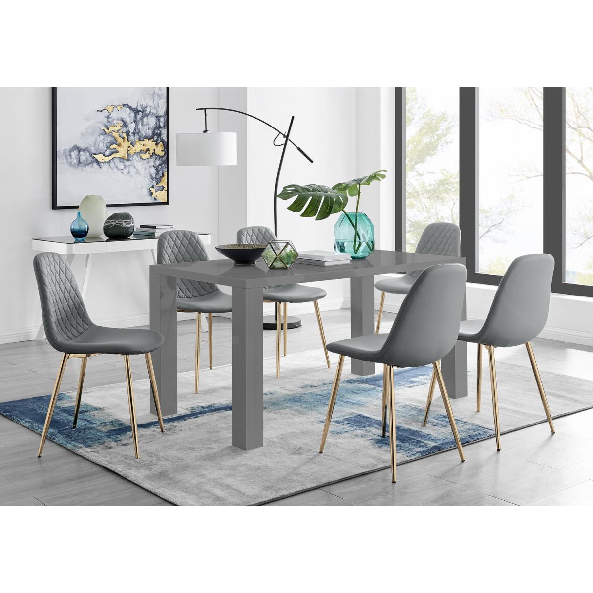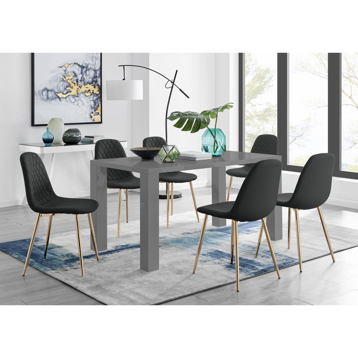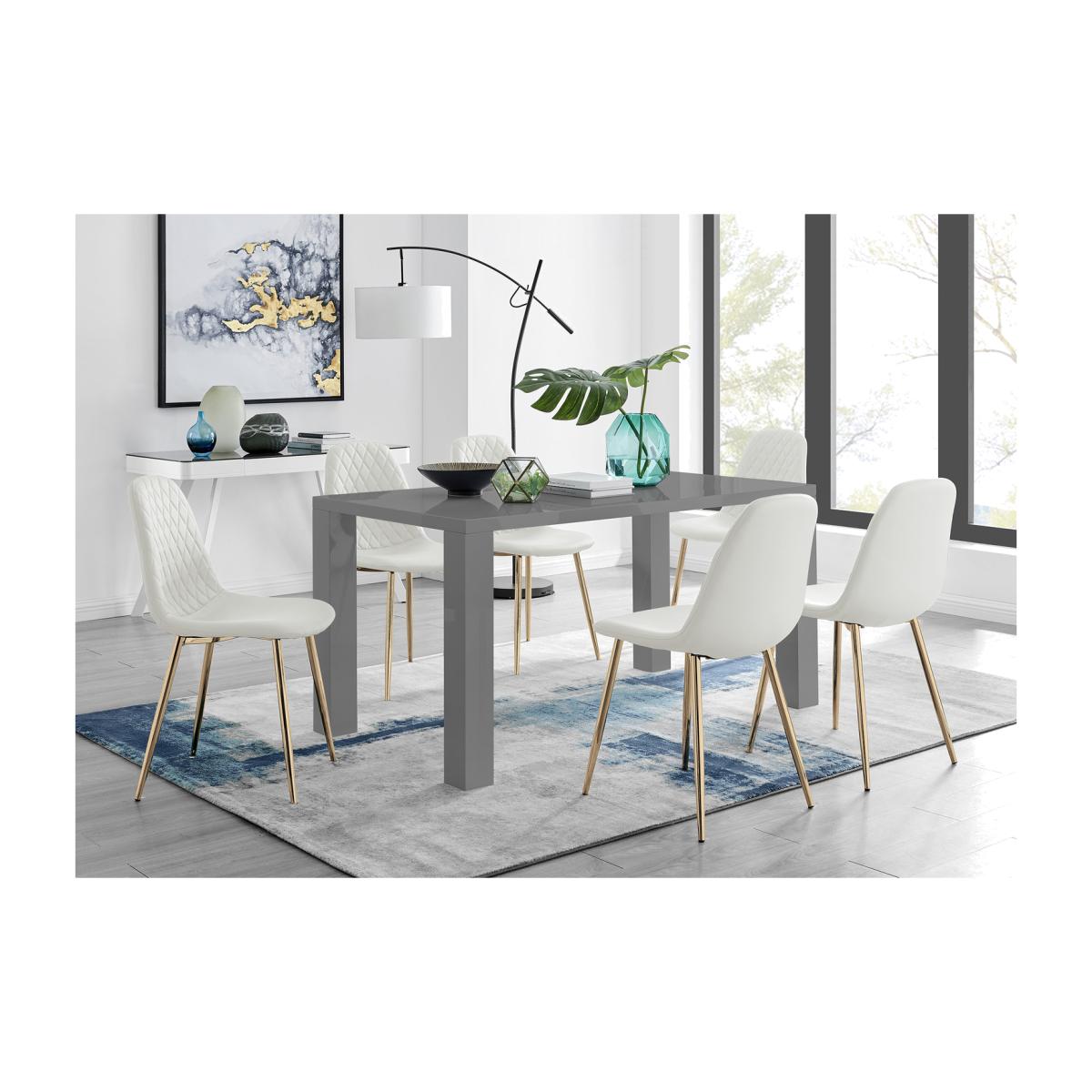 Simplistic, yet elegant this Pivero dining table catches the eye with a slick high gloss finish. For those looking to make a statement in a minimalist area the Pivero table is the perfect addition. The smooth high gloss finish is easy to wipe clean meaning your table will stay looking brand new for years to come! The table also benefits from having table legs at the end of the table allowing the 6 chairs to be tucked under the table, saving space and creating an open dining room look. Pair it with our Coronachairs for a complete look! With a perfect balance of pattern and texture, the new Corona Chair is a statement piece ready for the modern dining space. The trendy gold or silver chrome legs are all the rage and offer a perfect way to add an accent of lustre to your home. The Scandi-style faux leather seat with diamond pattern stitching is a unique take on a classic design offering comfort and durability for everyday use.
