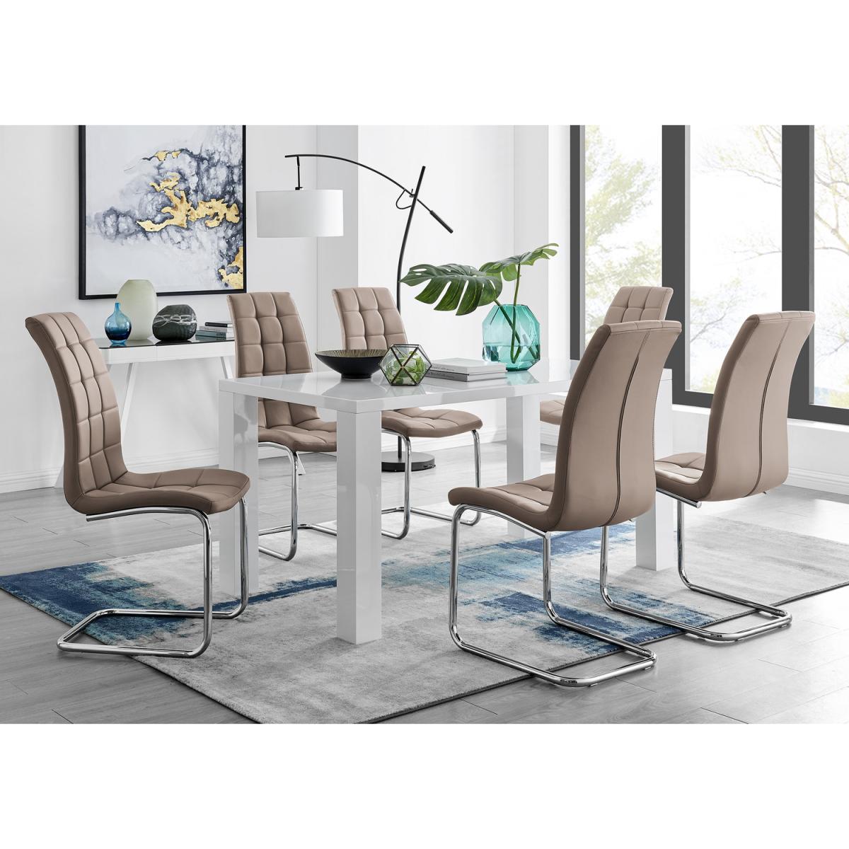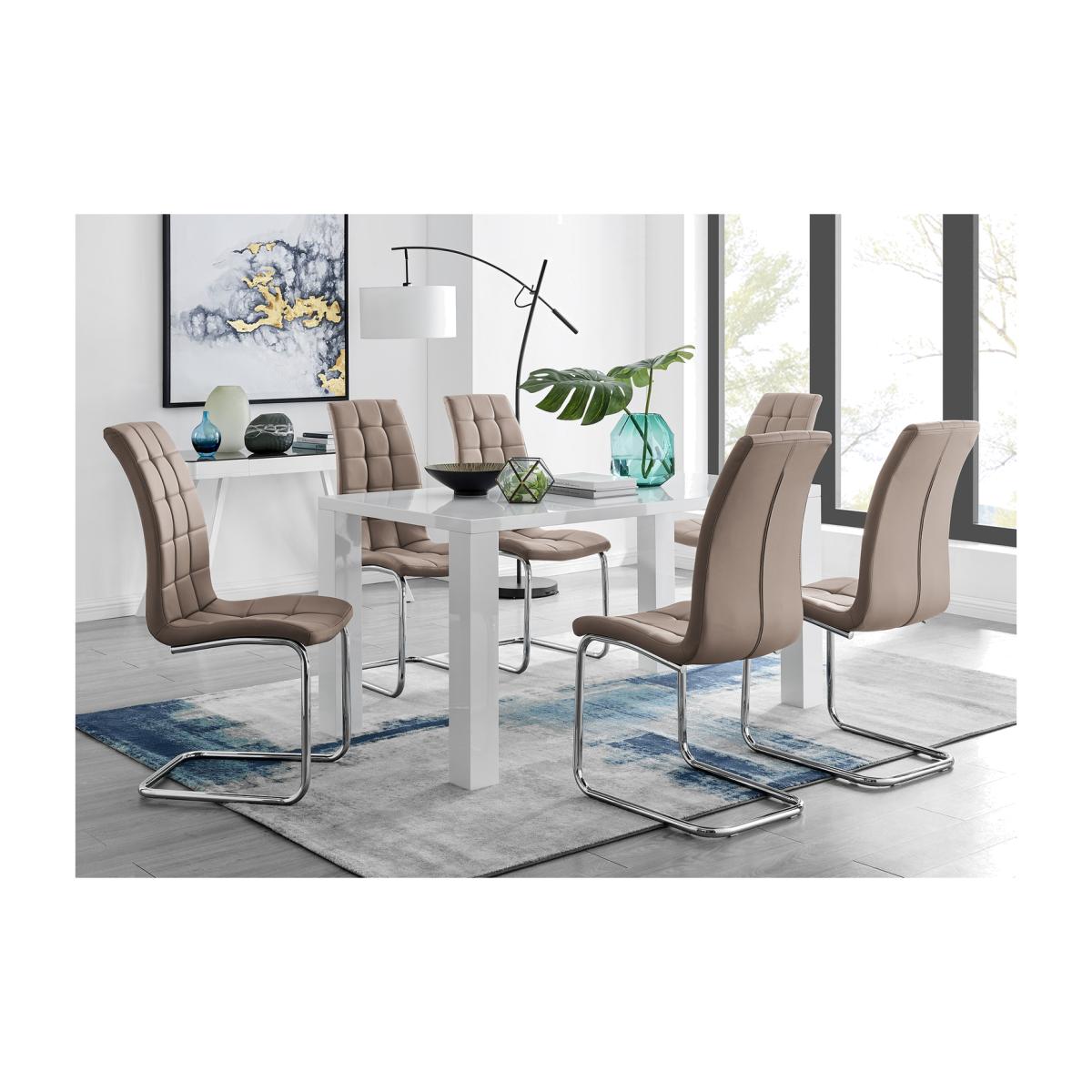 Stylish and timeless, the Pivero high gloss table is an effortlessly sleek design for any modern household. Available in a generous 150 x 80 cm surface, or for the smaller spaces we also do a 120 x 70cm version both available in black and the model white. Make everyday life easy as 123 with the Pivero high gloss table, with its super easy wipeable surface, the mess won't be around for long. Understated and at an unbeatable price, add the Pivero dining table to your space today. Paired alongside our beautiful faux leather diamond quilted Milan chairs, you can't go wrong with this set. Paired alongside our beautiful faux leather Murano chairs, with their smooth contours of the hatched pad and the single seat design combine to create a flowing feel to the Murano chair. It is shaped to offer maximum ergonomic support, whilst the deep foam cushion makes it a delight to sit on. Both inviting and sumptuous, the Murano is sure to be a strong contender in your quest for the right dining chair.