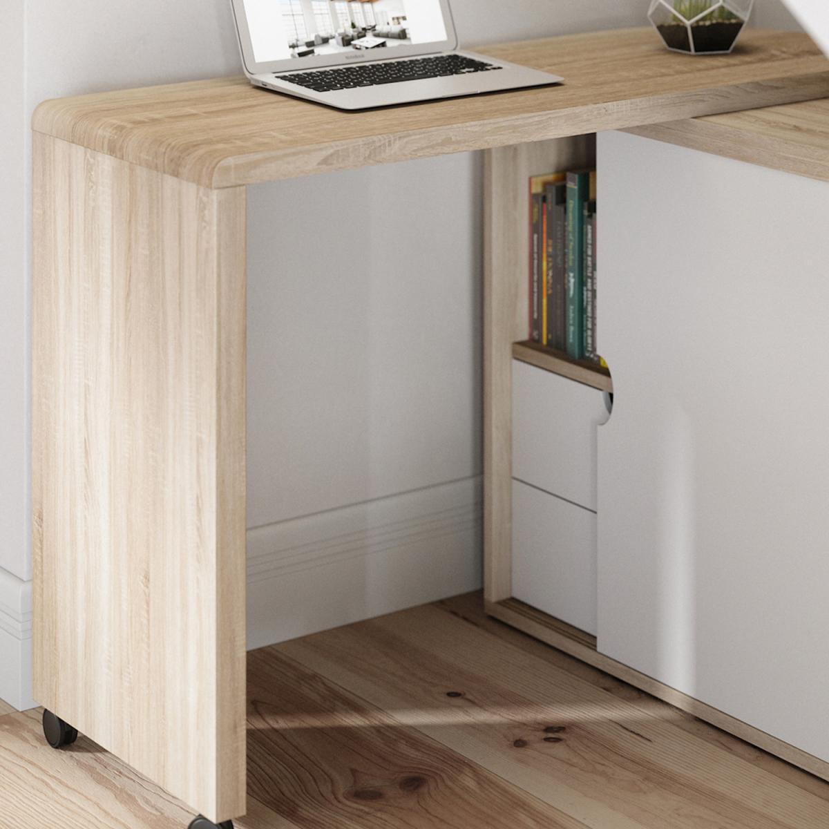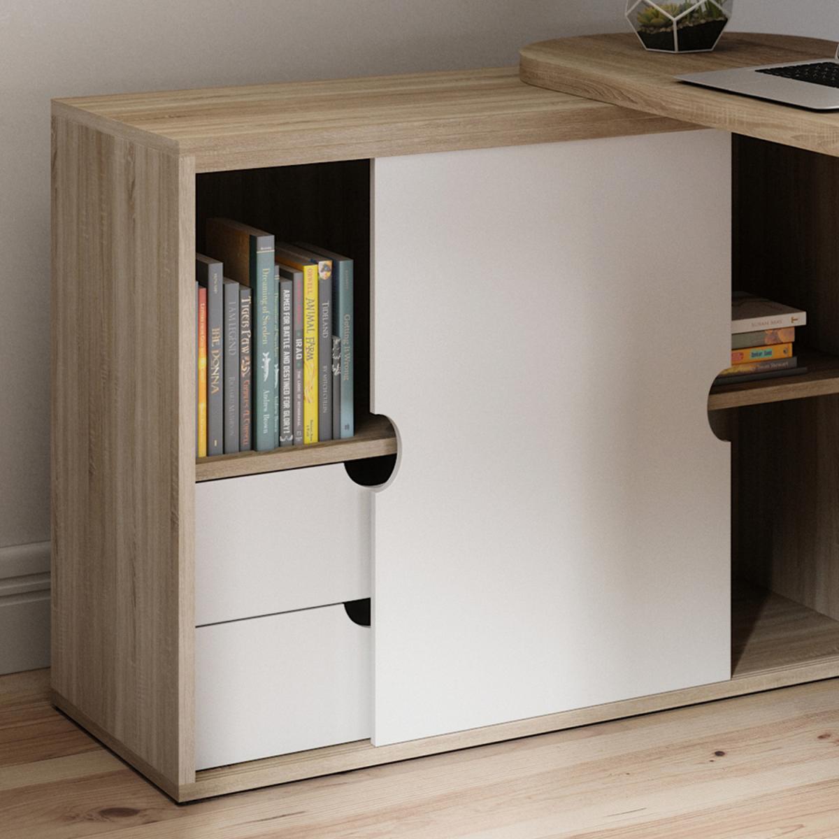The Teknik Office Pivot Cupboard Desk is a fantastic and modern style option, a perfect pick for the home office, under the stairs or anywhere where space is of a premium! It not only has a spacious working area, it has two storage drawers for additional storage and a sliding door which conceals an additional storage area. The desk can be assembled to have a left or right hand return and it can fold away when not in use, ideal for versatilie placement within your work area. The Pivot Cupboard desk is beautifully finished in Sonoma Oak Effect with white accents, making it a perfect match for all rooms and office colour schemes.