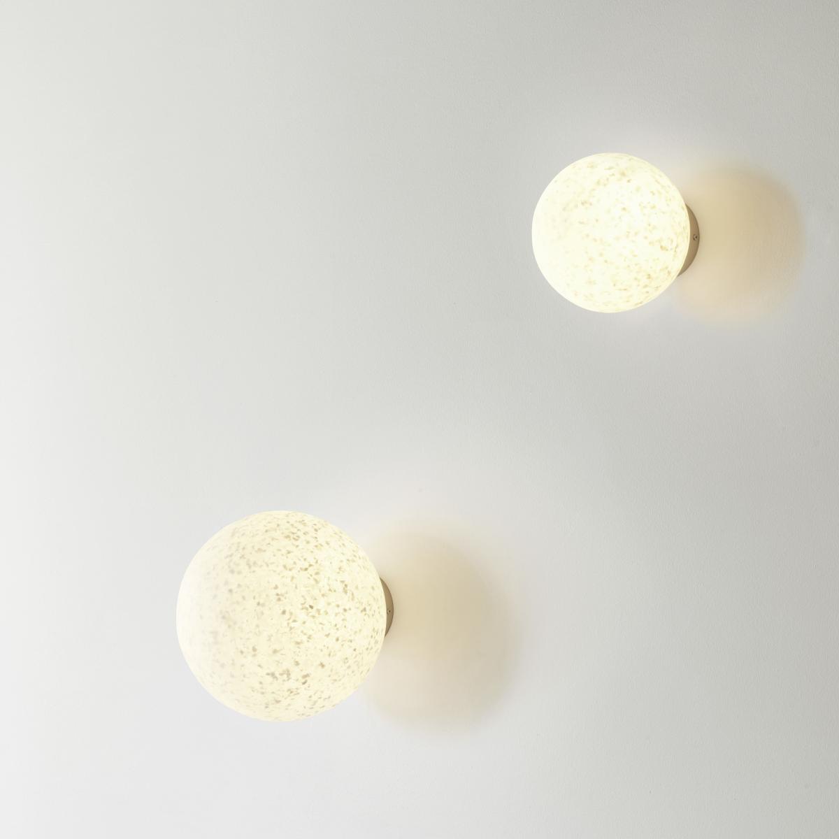 Material effect... The Pix lampshade is made from 100% recycled industrial plastic waste. This mixture of plastic granules has different shades of white. The pixelated surface presents an original texture and monochrome colours. Opaque when the light is off, the globe becomes translucent once lit, like the moon dotted with craters. The light beautifully highlights the granulated structure of the lampshade, creating a captivating ambiance. The minimalist design and versatile dimensions of the Pix models make them perfect for any interior. Their distinctive glow and charismatic presence blend naturally into any environment, giving it a look both friendly and elegant.