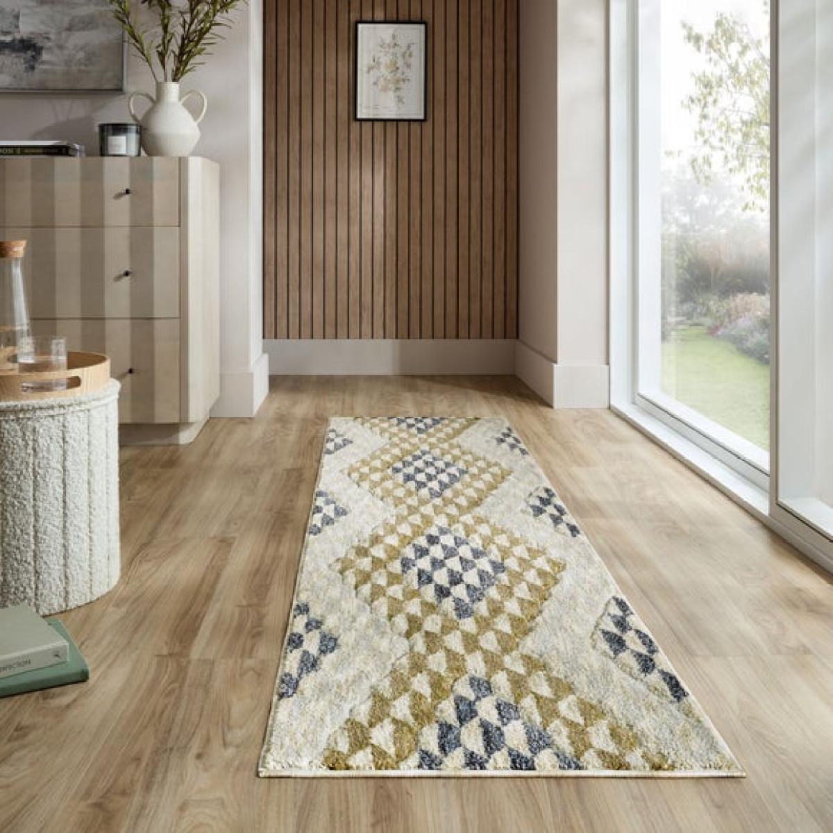 * Modern Geometric Design * Textural Carved Pile * Made from Recycled Polyester * Soft Short pile Pixel Geometric Carved Runner makes a stylish statement with its bold geometric pattern and tactile carved texture, creating an inviting centrepiece. Crafted from a soft yet durable pile, the textured surface adds subtle depth and a luxuriously soft feel underfoot, while standing up to everyday wear. Perfect for hallways or bedrooms, it brings a contemporary look to interiors and is easy to care for. The Rug Pictured is: 60cm x 230cm. Care: Unroll your rug and leave for 24 hours during first use. Maintain your rug by shaking to remove trapped dirt and debris. Vacuum regularly without the beater brush to prevent damaging the rug fibres. Cut any loose fibres with scissors, do not pull. For accidental spills blot immediately and spot clean with a damp white cloth, leave to dry and shake to fluff up the fibres. Add an anti-slip underneath your rug to prevent slipping. Rotate every few months to prolong the life of your rug.
