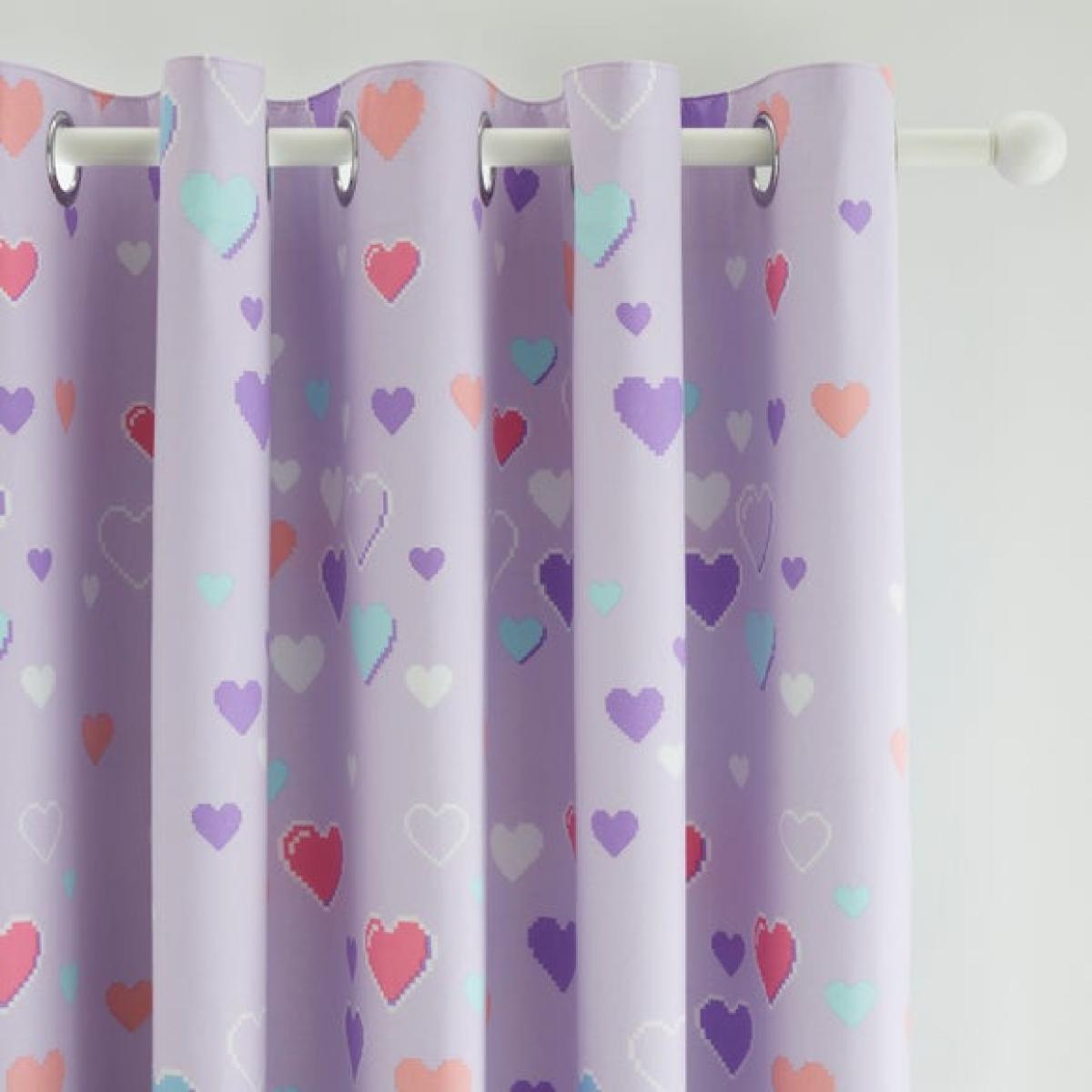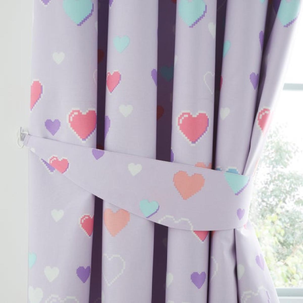 * Charming heart design * Blackout lined * Tiebacks included Add a playful pop to your windows with our Pixel Hearts Blackout Curtains, perfect for brightening up bedrooms or cosy corners. Featuring a charming pixel hearts design, they bring a touch of fun and warmth to any space. The blackout lining helps keep rooms dark and restful, ideal for lie-ins and movie nights alike. Easy to care for, they’re as practical as they are pretty. Finished with included tiebacks for a neat and tidy look whenever you fancy a bit more light. Love at first sight – and second glance too.