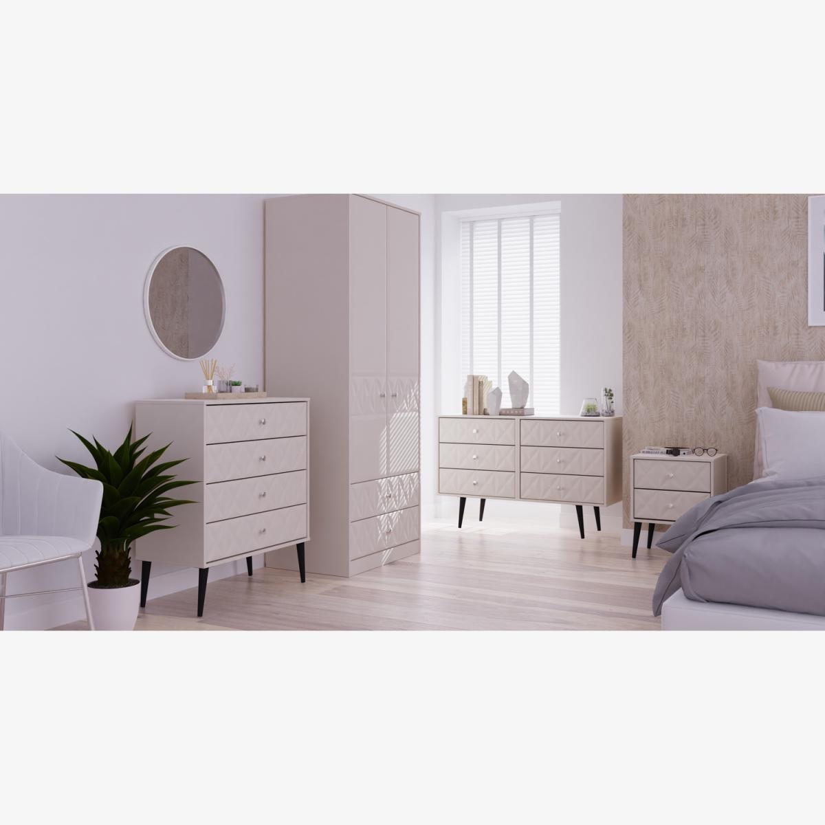 This single drawer low level bedside cabinet is practical and stylish. Perfect for any bedside or as a free standing storage unit. A modern and distinctive range. Named for the unique "Pixel" patten of the drawer and door fronts. Also features Black Metal Handles and Black Hairpin Legs. Comes in a wide range of colours including eye cathching two tone colour combinations. All our furniture is made in the United Kingdom, to the highest quality. It is delivered direct to your location of choice by one of our two man delivery teams, and come full assembled (although legs may be removed to prevent damage in transit).