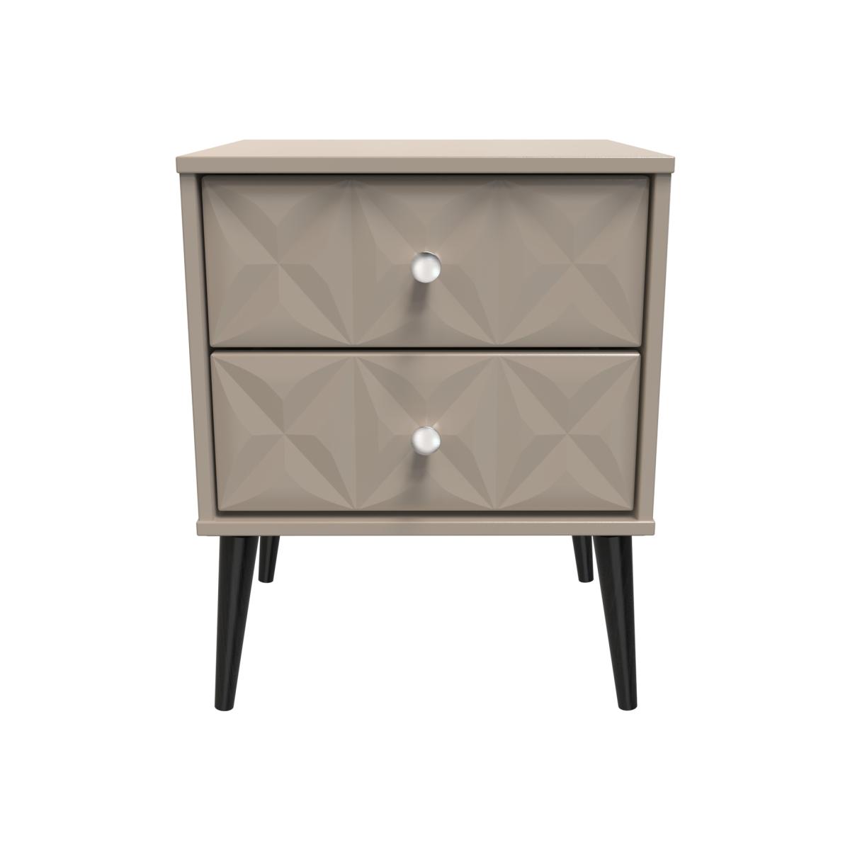 This 2 drawer bedside cabinet is practical and stylish. Perfect for any bedside or as a free standing storage unit. A modern and distinctive range. Named for the unique "Pixel" patten of the drawer and door fronts. Also features Black Metal Handles and Black Hairpin Legs. Comes in a wide range of colours including eye cathching two tone colour combinations. All our furniture is made in the United Kingdom, to the highest quality. It is delivered direct to your location of choice by one of our two man delivery teams, and come full assembled (although legs may be removed to prevent damage in transit).