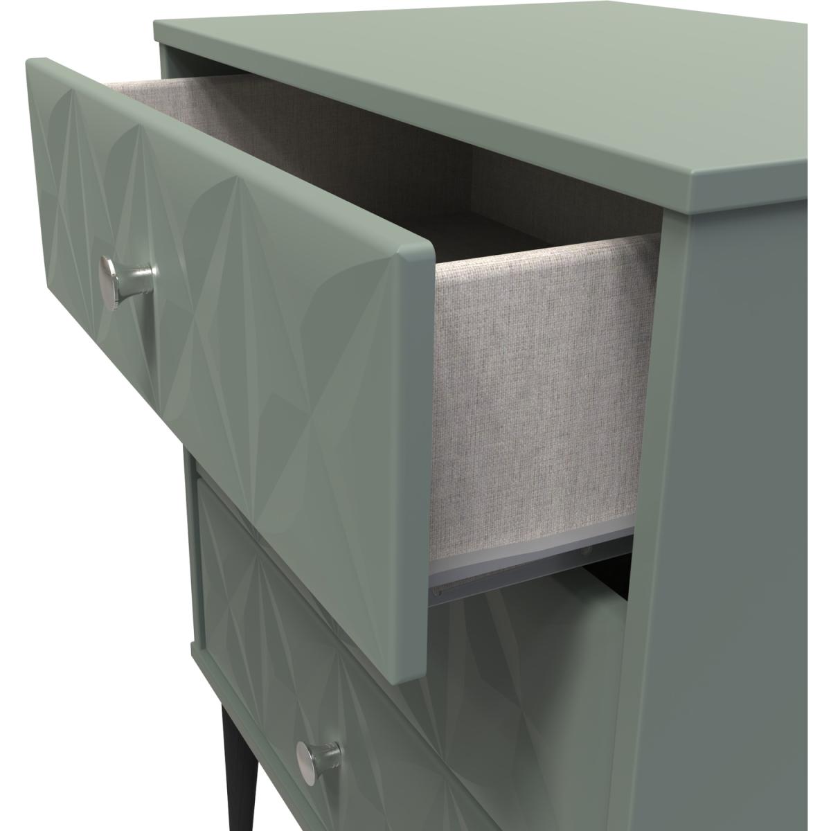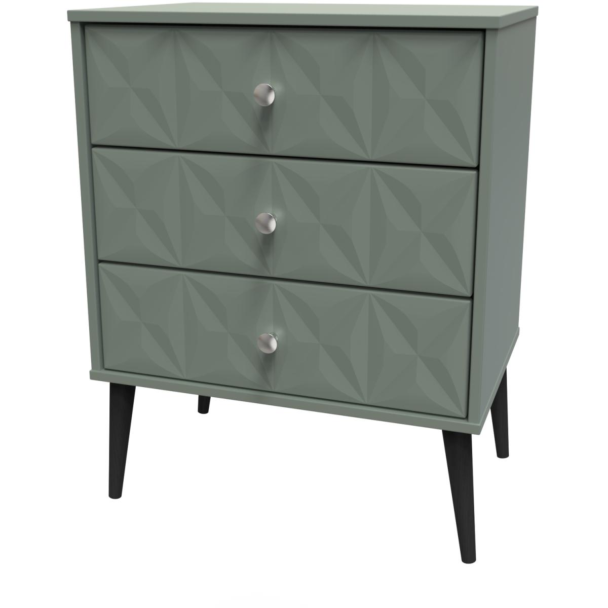 This 3 drawer bedside cabinet is wider than normal for added practicality. Perfect for any bedside or as a free standing storage unit. A modern and distinctive range. Named for the unique "Pixel" patten of the drawer and door fronts. Also features Black Metal Handles and Black Hairpin Legs. Comes in a wide range of colours including eye cathching two tone colour combinations. All our furniture is made in the United Kingdom, to the highest quality. It is delivered direct to your location of choice by one of our two man delivery teams, and come full assembled (although legs may be removed to prevent damage in transit).
