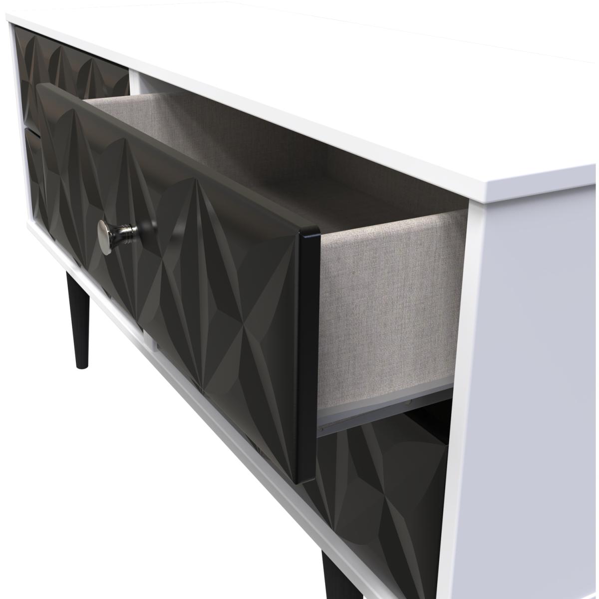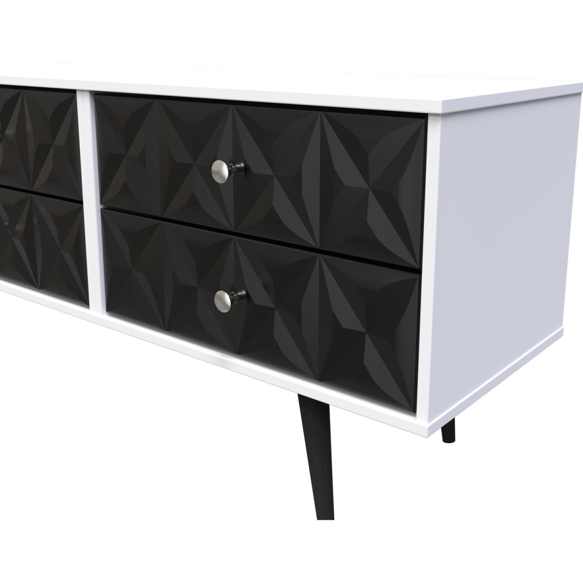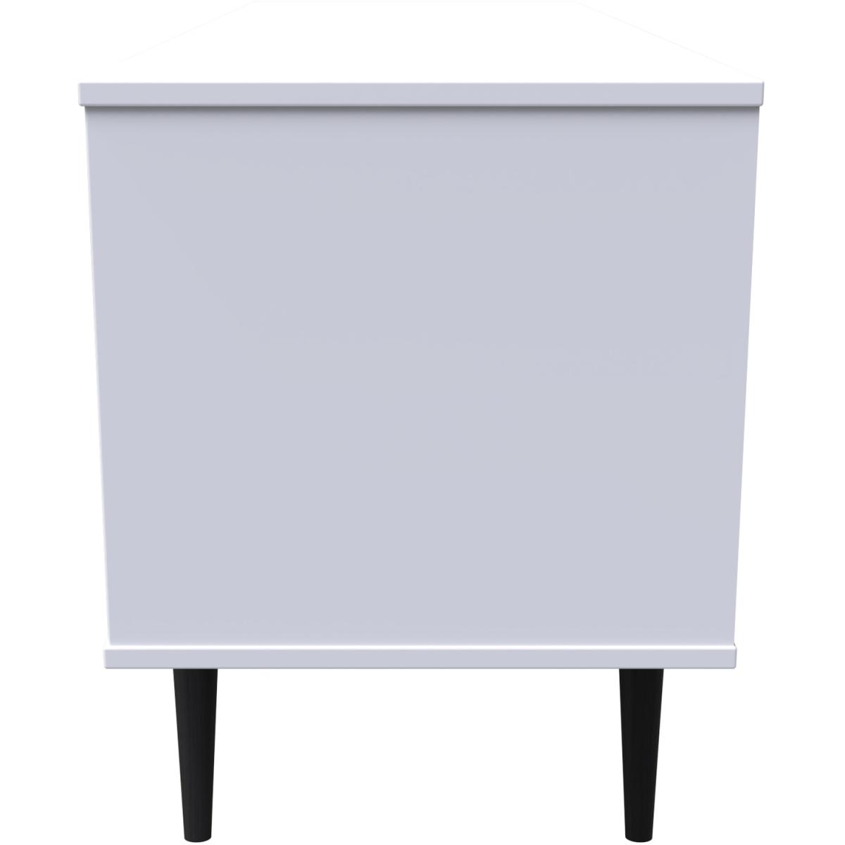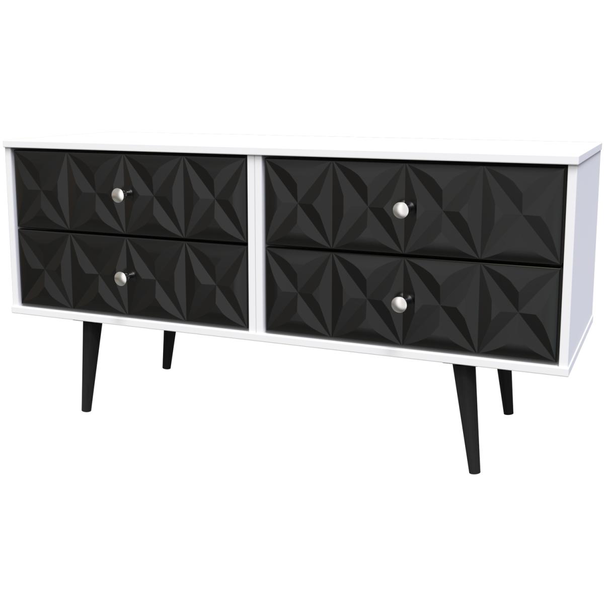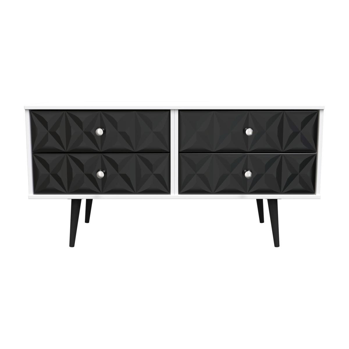 A large 4 drawer bed box. A Perfect storage solution for any room (not just the end of your bed). Could also be used as a low level TVMedia stand. A modern and distinctive range. Named for the unique "Pixel" patten of the drawer and door fronts. Also features Black Metal Handles and Black Hairpin Legs. Comes in a wide range of colours including eye cathching two tone colour combinations. All our furniture is made in the United Kingdom, to the highest quality. It is delivered direct to your location of choice by one of our two man delivery teams, and come full assembled (although legs may be removed to prevent damage in transit).