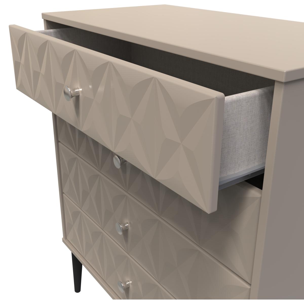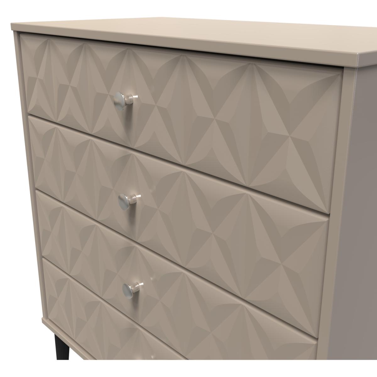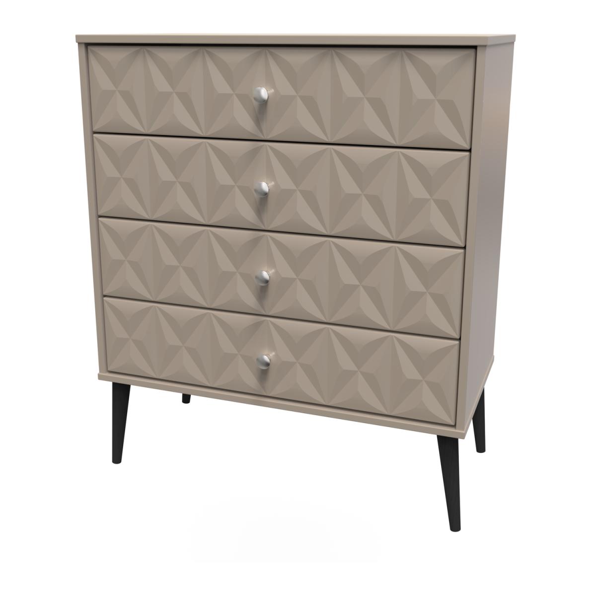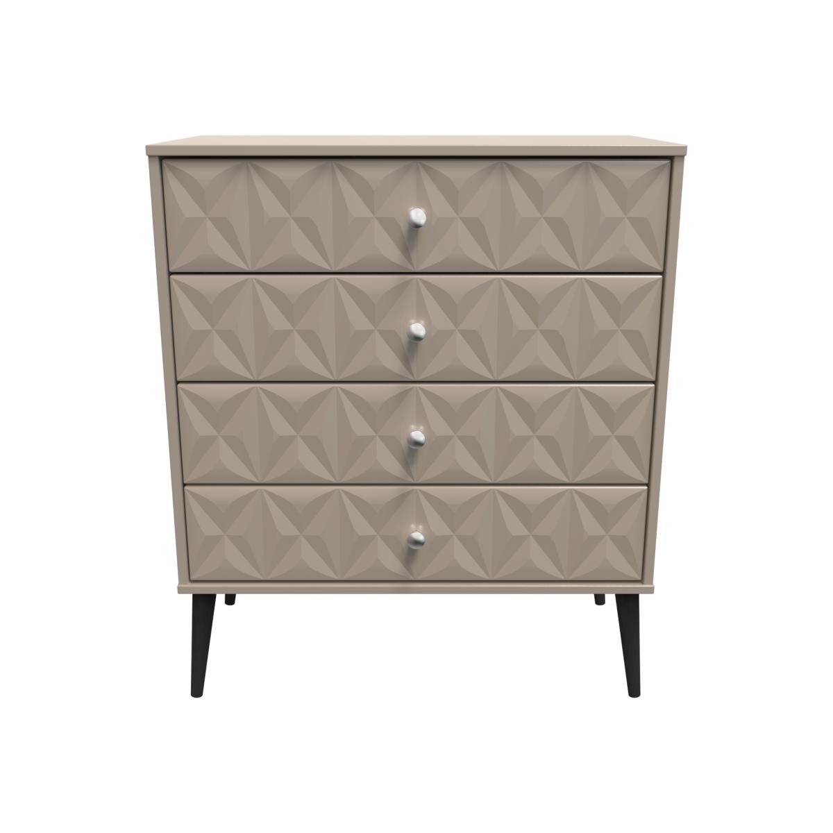 This wide 4 drawer chest of drawers is practical and stylish. Perfect for any home as a free standing storage unit. A modern and distinctive range. Named for the unique "Pixel" patten of the drawer and door fronts. Also features Black Metal Handles and Black Hairpin Legs. Comes in a wide range of colours including eye cathching two tone colour combinations. All our furniture is made in the United Kingdom, to the highest quality. It is delivered direct to your location of choice by one of our two man delivery teams, and come full assembled (although legs may be removed to prevent damage in transit).