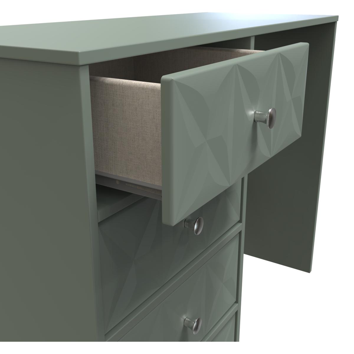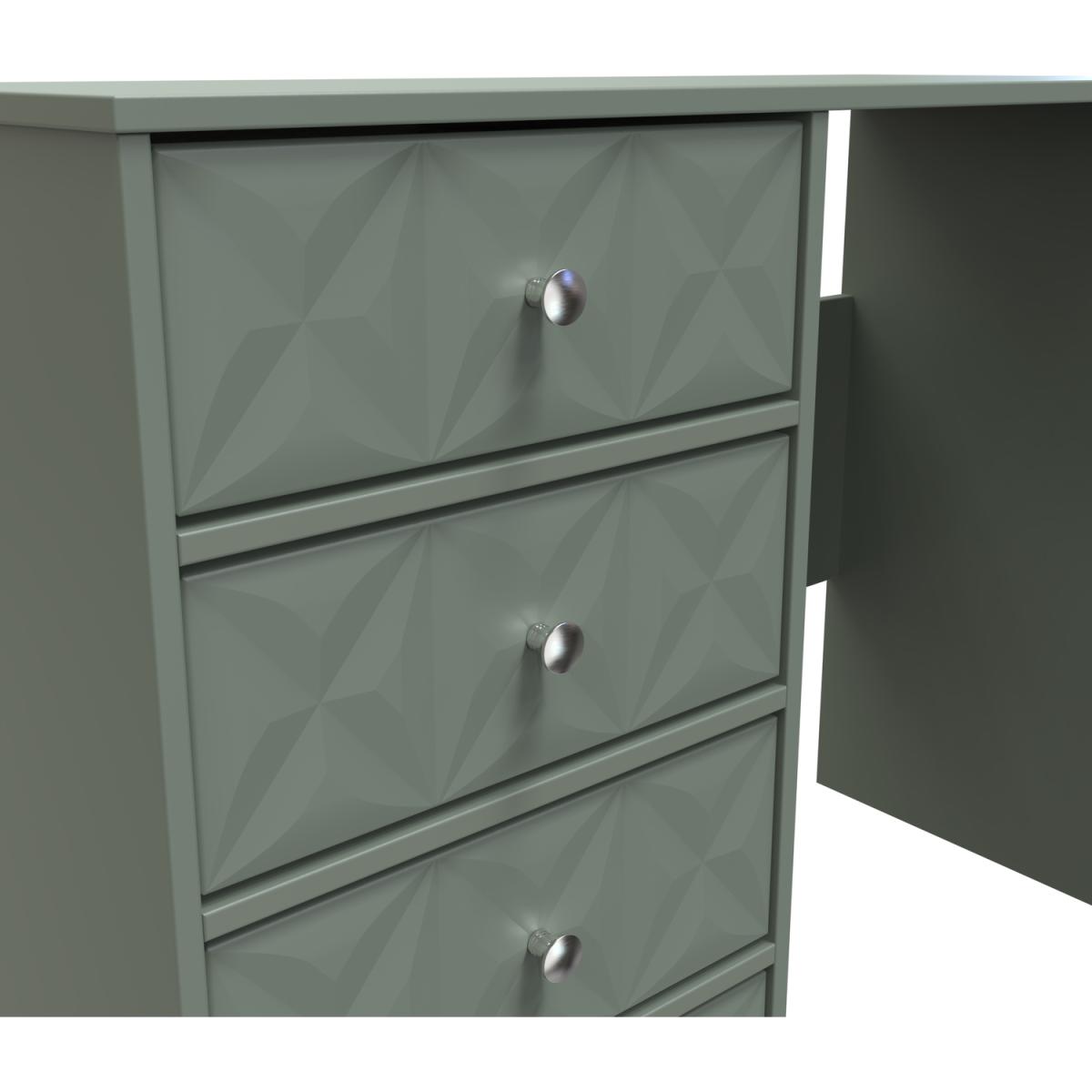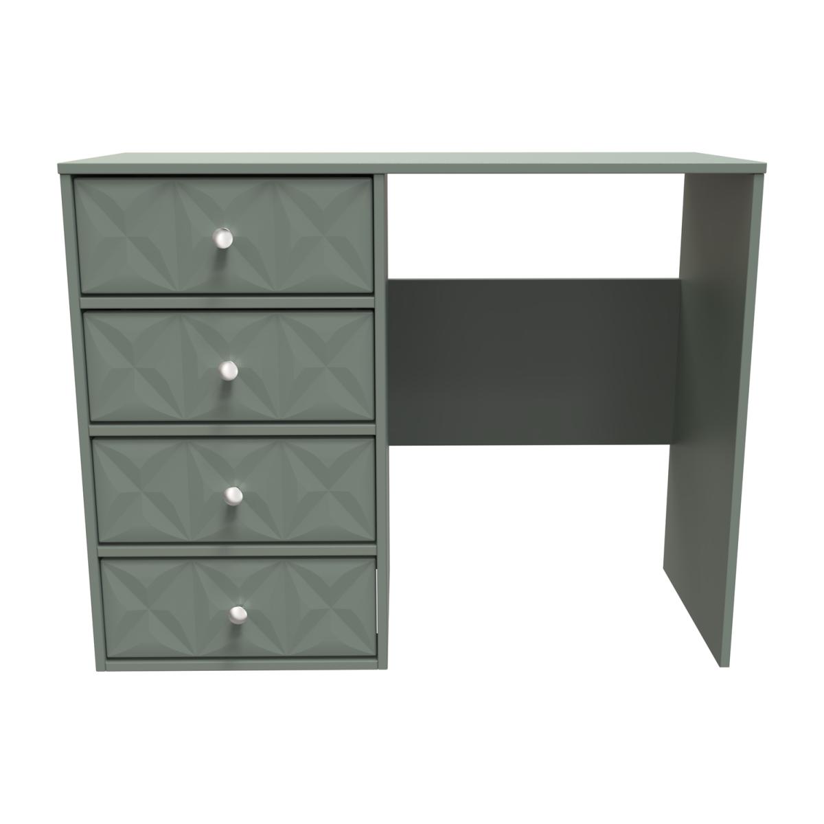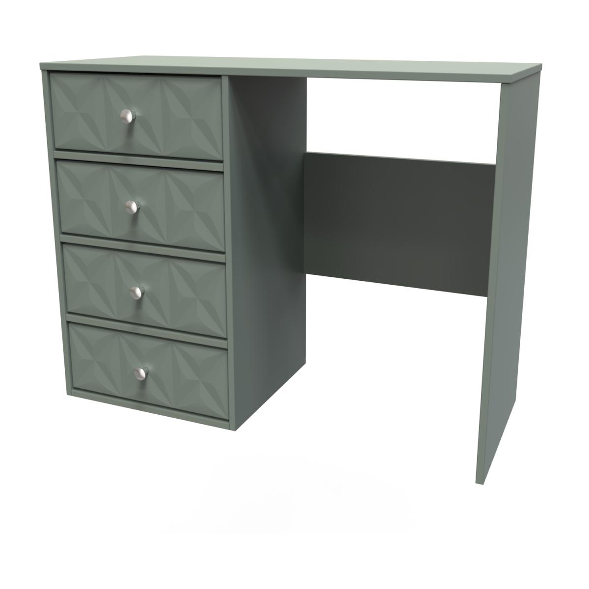 This 4 Drawer Vanity Desk is equally at home in the bedroom or the office. A modern and distinctive range. Named for the unique "Pixel" patten of the drawer and door fronts. Also features Black Metal Handles and Black Hairpin Legs. Comes in a wide range of colours including eye cathching two tone colour combinations. All our furniture is made in the United Kingdom, to the highest quality. It is delivered direct to your location of choice by one of our two man delivery teams, and come full assembled (although legs may be removed to prevent damage in transit).