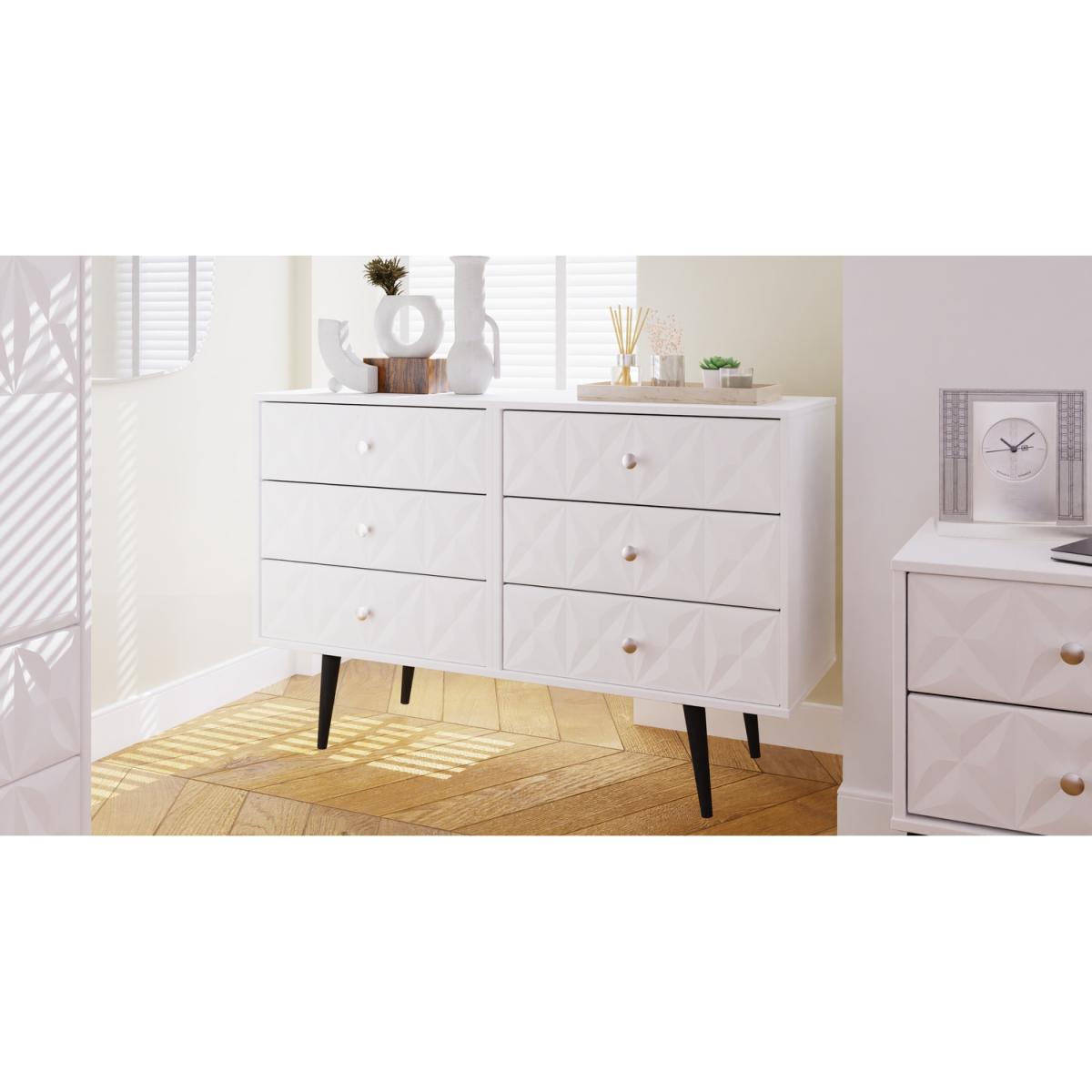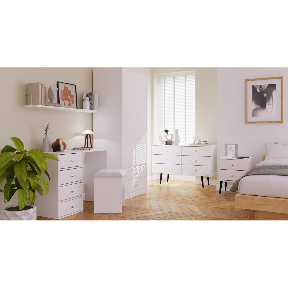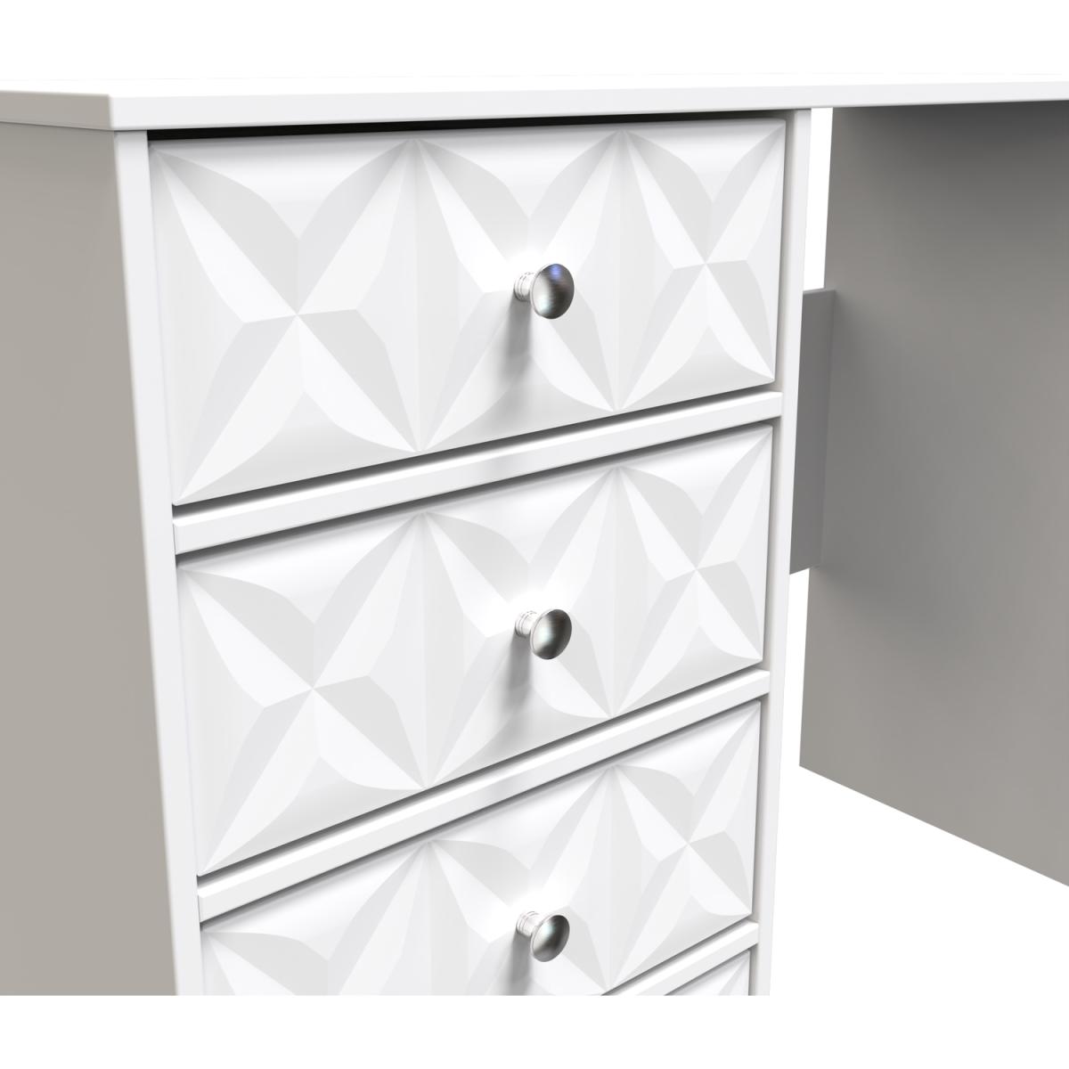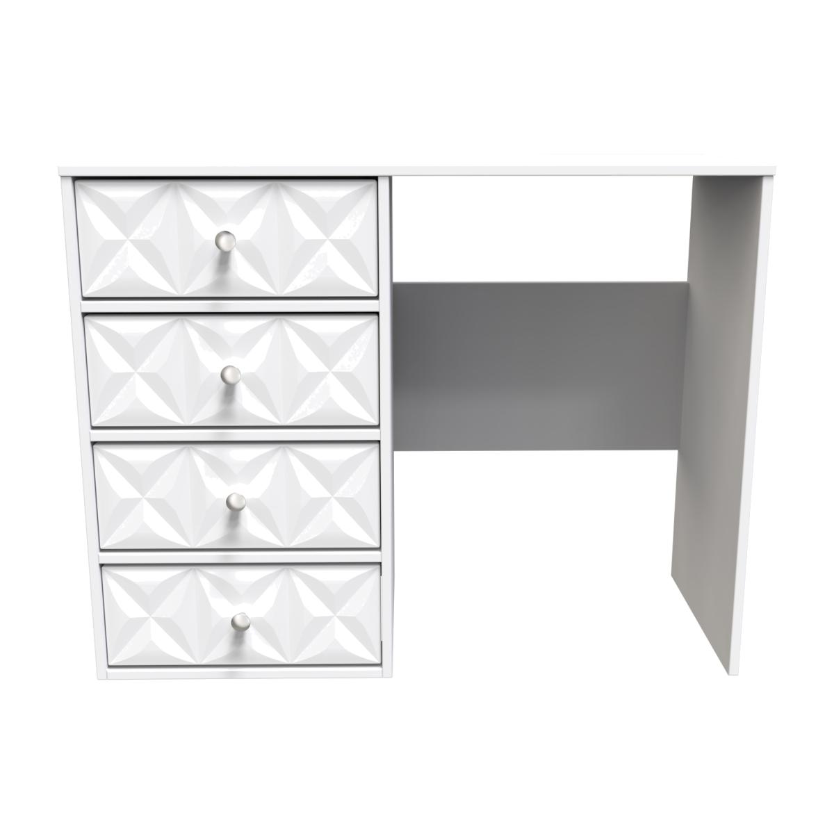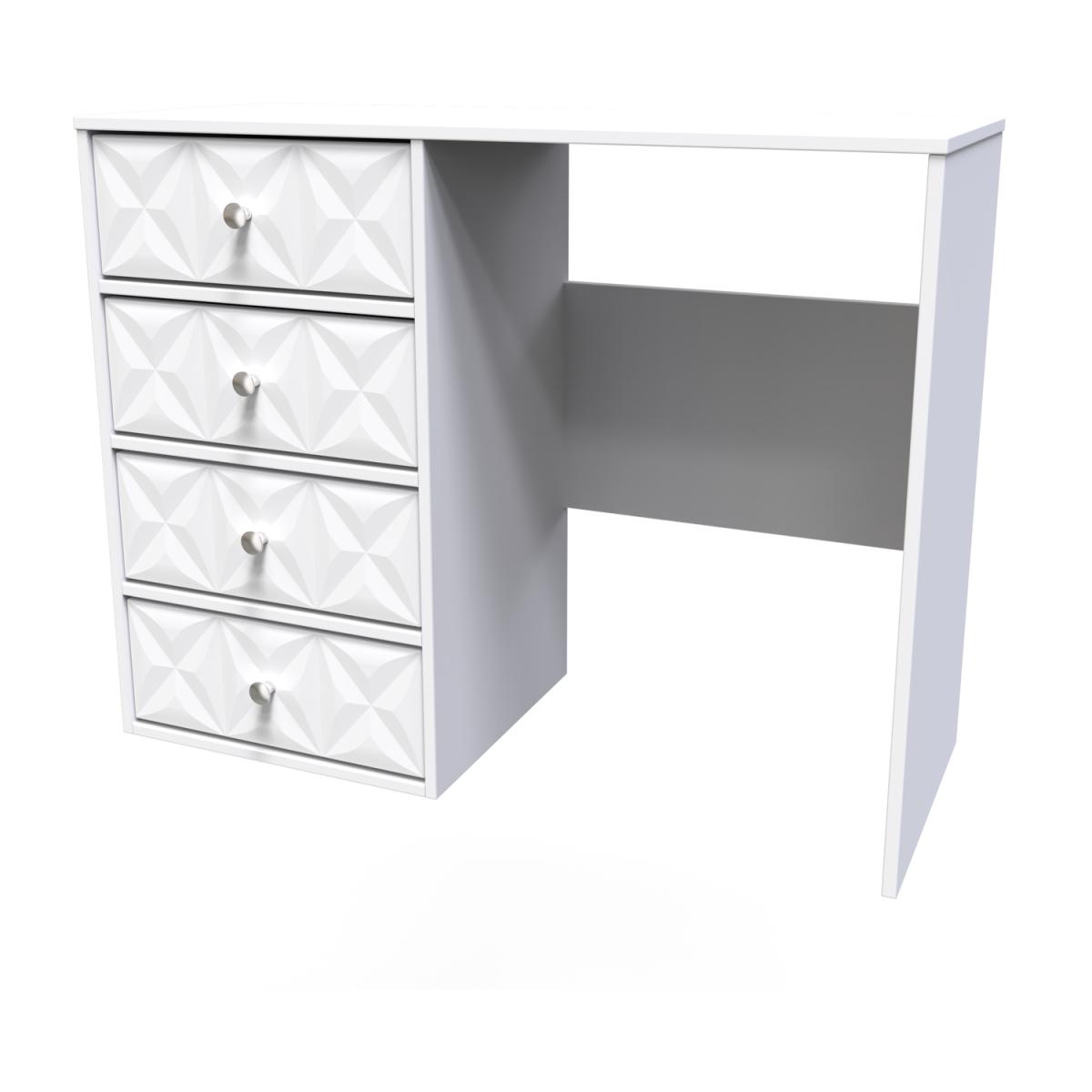 This 4 Drawer Vanity Desk is equally at home in the bedroom or the office. A modern and distinctive range. Named for the unique "Pixel" patten of the drawer and door fronts. Also features Black Metal Handles and Black Hairpin Legs. Comes in a wide range of colours including eye cathching two tone colour combinations. All our furniture is made in the United Kingdom, to the highest quality. It is delivered direct to your location of choice by one of our two man delivery teams, and come full assembled (although legs may be removed to prevent damage in transit).