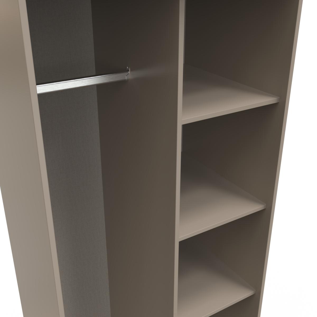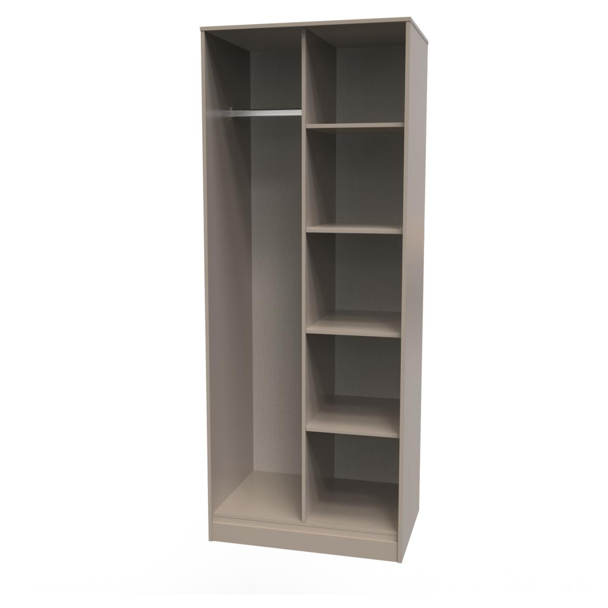 This full height open wardrobe features 5 storage shelves and a full height clothes hanging compartment. A modern and distinctive range. Named for the unique "Pixel" patten of the drawer and door fronts. Also features Black Metal Handles and Black Hairpin Legs. Comes in a wide range of colours including eye cathching two tone colour combinations. All our furniture is made in the United Kingdom, to the highest quality. It is delivered direct to your location of choice by one of our two man delivery teams, and come full assembled (although legs may be removed to prevent damage in transit).