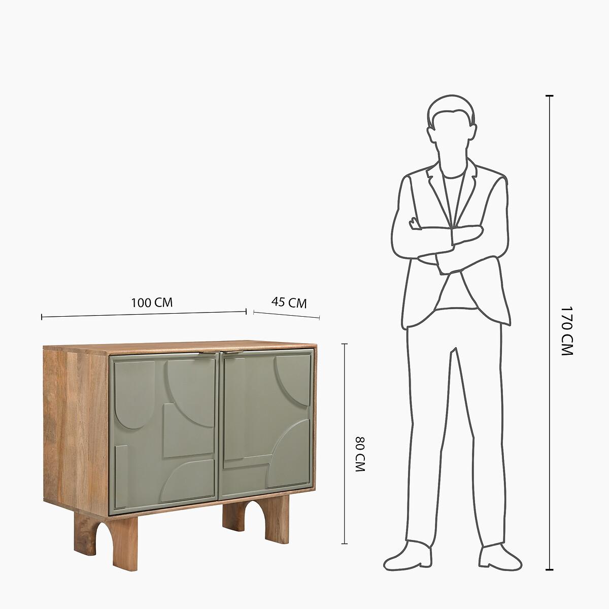Style, simplicity, and sophistication — the Piza Collection embodies them all. This chic two-door cabinet, crafted from premium mango wood and finished in a cool cottage green, perfectly marries modern flair with eclectic charm. Designed to add a touch of playful quirkiness to any room, it makes a standout statement. For a cohesive and curated aesthetic, pair it with the Piza console or side table. Product details• Mango wood• Sculptural panels• Gold accents• Number of drawers:2• Delivered fully assembled - Anti-topple wall fixings included. Product Composition - Mango Wood,Mdf. Product Dimensions - 100 cm x 45 cm x 80 cm , Weight - 39.5 KG• Internal drawer: 46 x 38 x 28 cm• Clearance to floor: 20 cm Package Dimensions - 109 cm x 69 cm x 54 cm, Weight 48 kg. This product will be dispatched by one of our trusted suppliers. You’ll be contacted by their selected courier about your delivery.