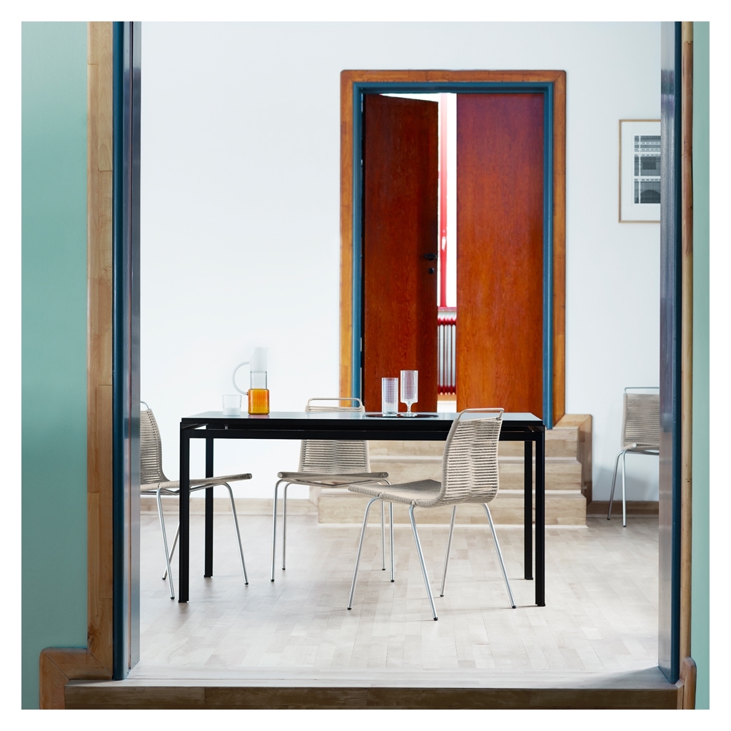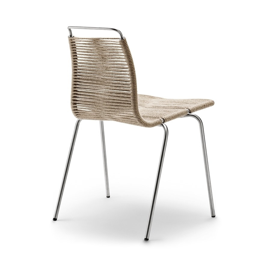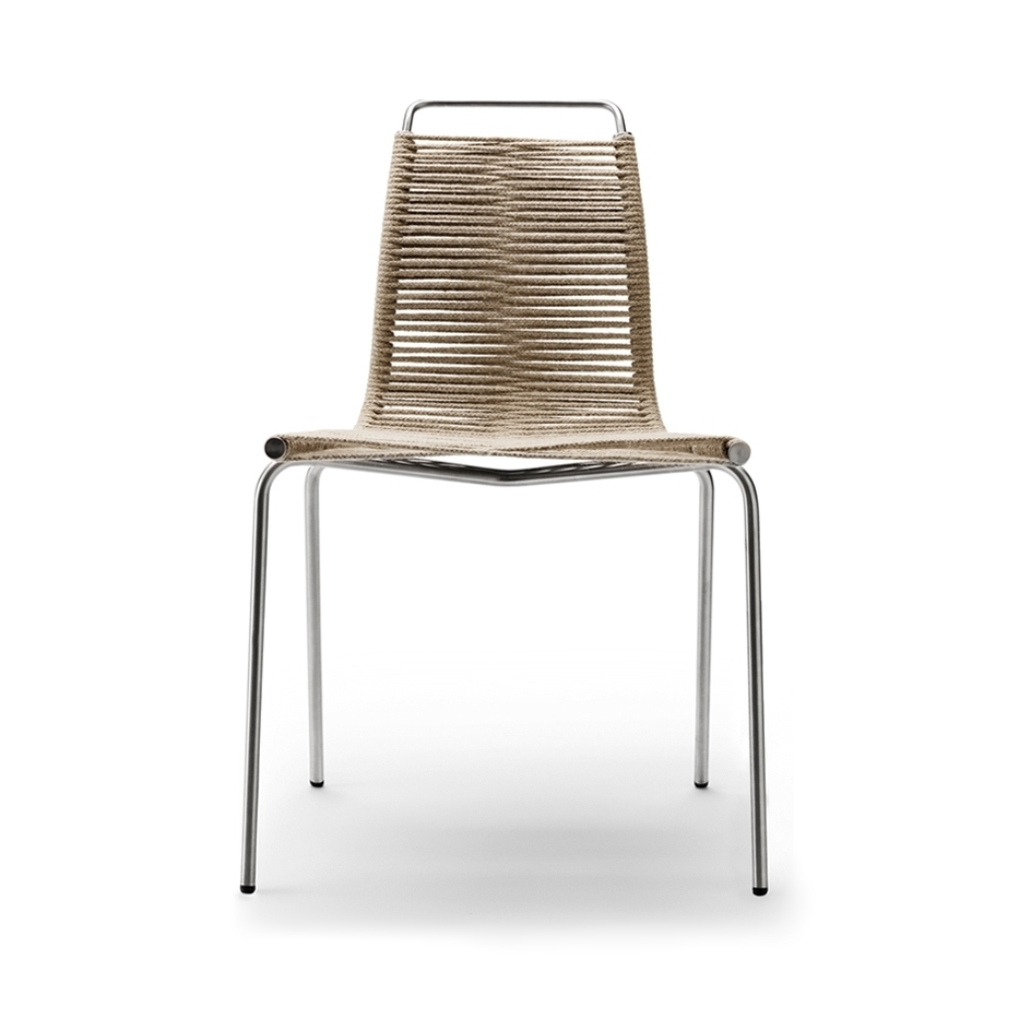 An exquisite example of Poul Kjærholm's unique ability to align steel with organic materials, the stainless steel and natural PK1 Dining Chair has been expertly crafted in Denmark by Carl Hansen & Son. Boasting a polished stainless steel frame, the understated design is finished with a natural cord flag halyard seat to ensure optimal comfort and a contemporary finish. Skilfully produced by master craftspeople, the chair's unique shape and finish offers it a visual lightness that would enhance both modern and classic interiors. Originally designed in 1955, the refined PK1 chair was the first dining chair Kjærholm ever created. Incredibly suited to modern practicalities, the chair can be stacked for easy storage and versatility. Lending a sophisticated touch to any décor, the PK1 Dining Chair offers comfort and relaxation whilst providing a contemporary aesthetic for any dining area.