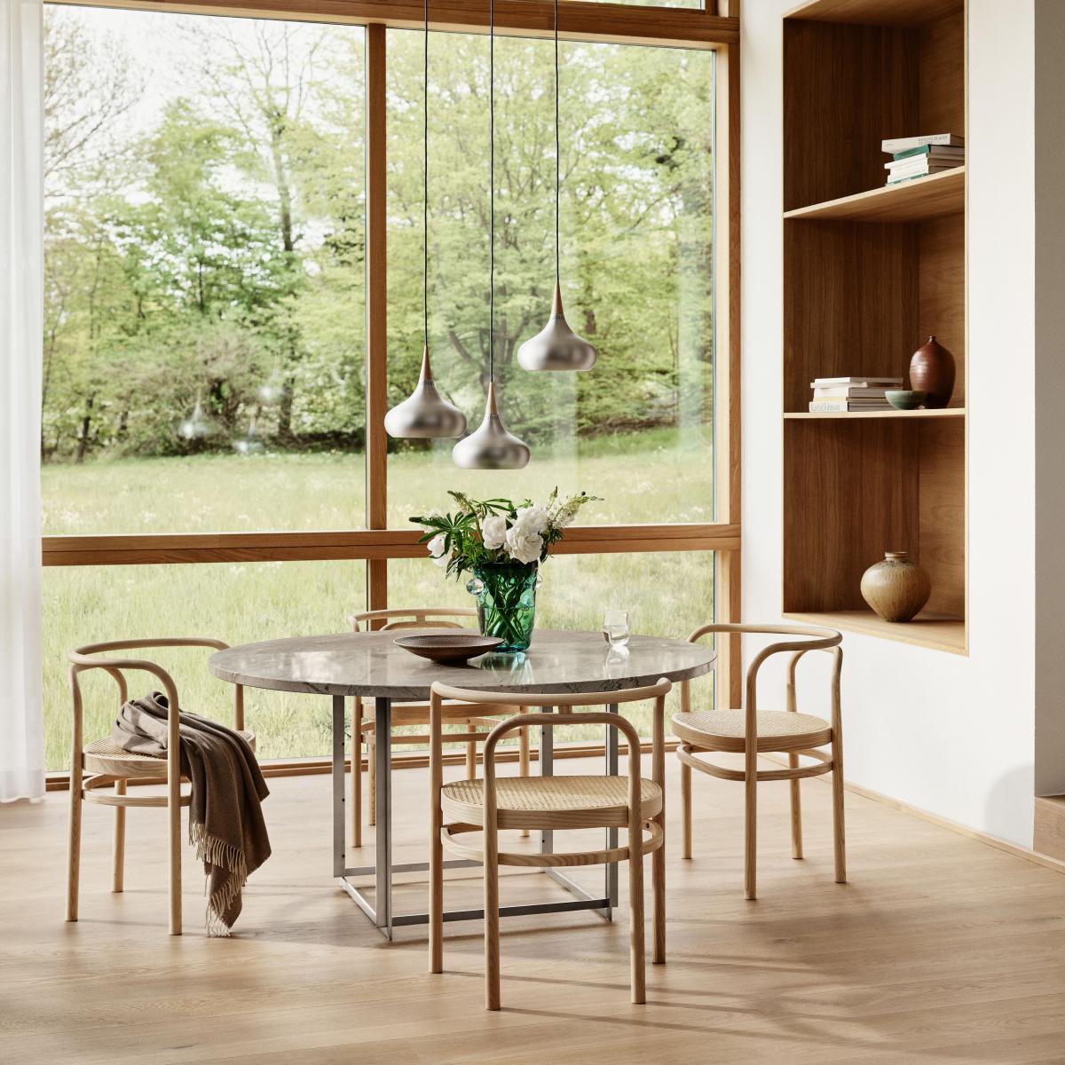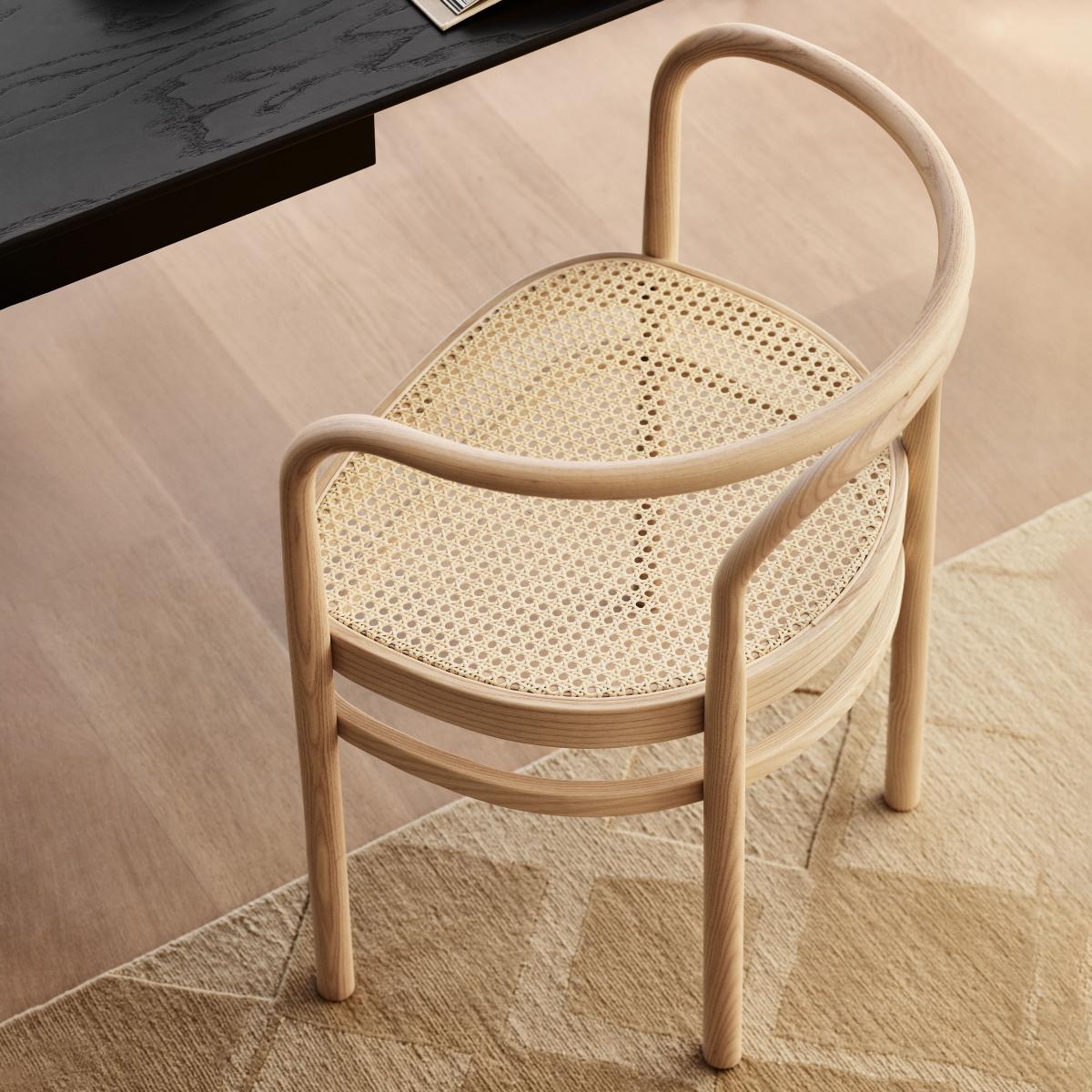 Poul Kjærholm (1929 - 1980) is one of the most important representatives of Danish design. He has made a name for himself by combining artisanal tradition and mass production. Among his many awards are the Grand Prix at the Milan Triennale (in 1957 and 1960), and the Lunning Award (1958). Kjærholm's creations are exhibited in museums around the world. Released in 1979, the PK15 armchair was Poul Kjærholm's last creation. His lifelong pursuit of perfection and attention to detail is evident in the simple appearance that masks his remarkably intricate woodwork. The PK15 armchair features clean lines, organic shapes and precise proportions, adding a touch of sophistication and elegance to any interior. The PK15 armchair is made of steam-curved solid ash and a cane seat. Poul Kjærholm had been interested in creating such a curved-wood chair in the early 1960s, but was discouraged by the difficulties involved in making it. He took up the idea again in 1979 and finally produced the PK15. PK15 was the first pre-compressed chair to enter commercial production. During its design in the 1960s, several solutions were tried, but without succeeding in achieving the level of precision necessary for commercialisation. Production was finally taken over in the late 1970s by PP Møbler, which found new pre-compression techniques to meet Kjærholm's requirements. The PK15 is constructed of just four assembled elements: the front legs which become the armrests and backrest, the rear legs which become the backrest, a seat and a circular reinforcement under the seat to strengthen the structure. The PK15 echoes the PK12 steel armchair, designed by Poul Kjærholm in 1964. The resemblance is striking despite the contrast in materials.